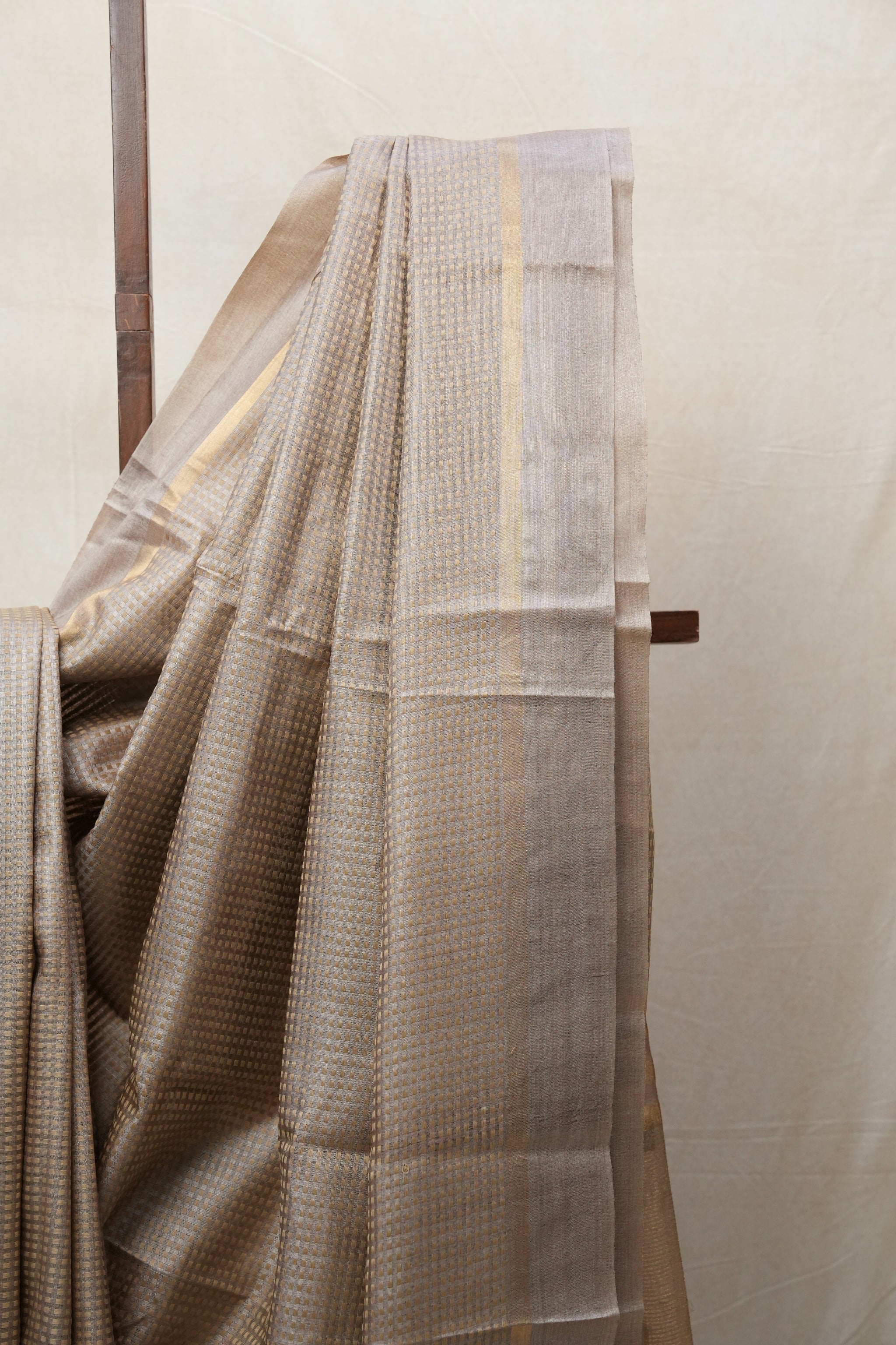 Brownish Grey Tussar Silk Saree - SRBGTSS1508