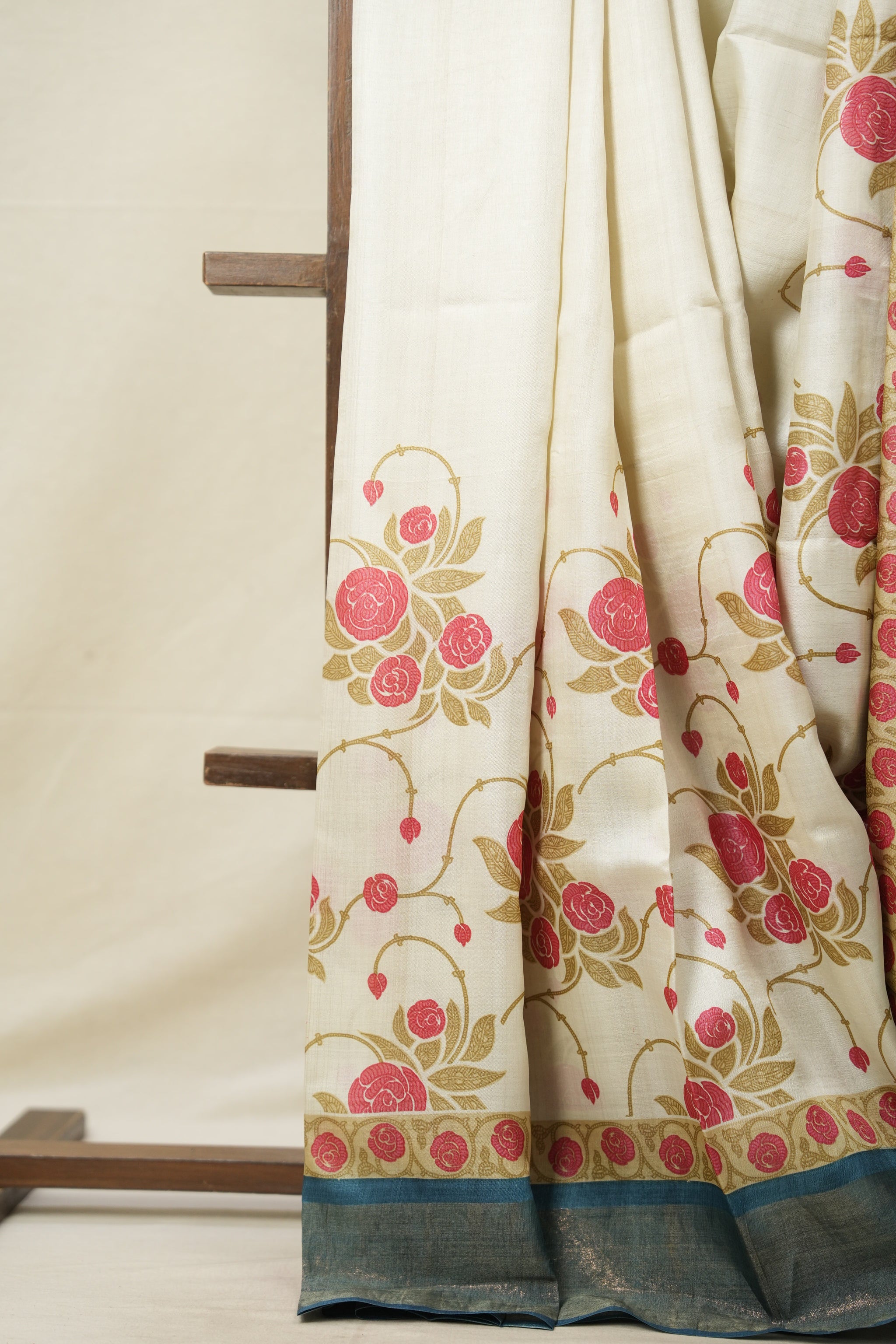 Snow White Printed Tussar Silk Saree - SRSWPTSS005