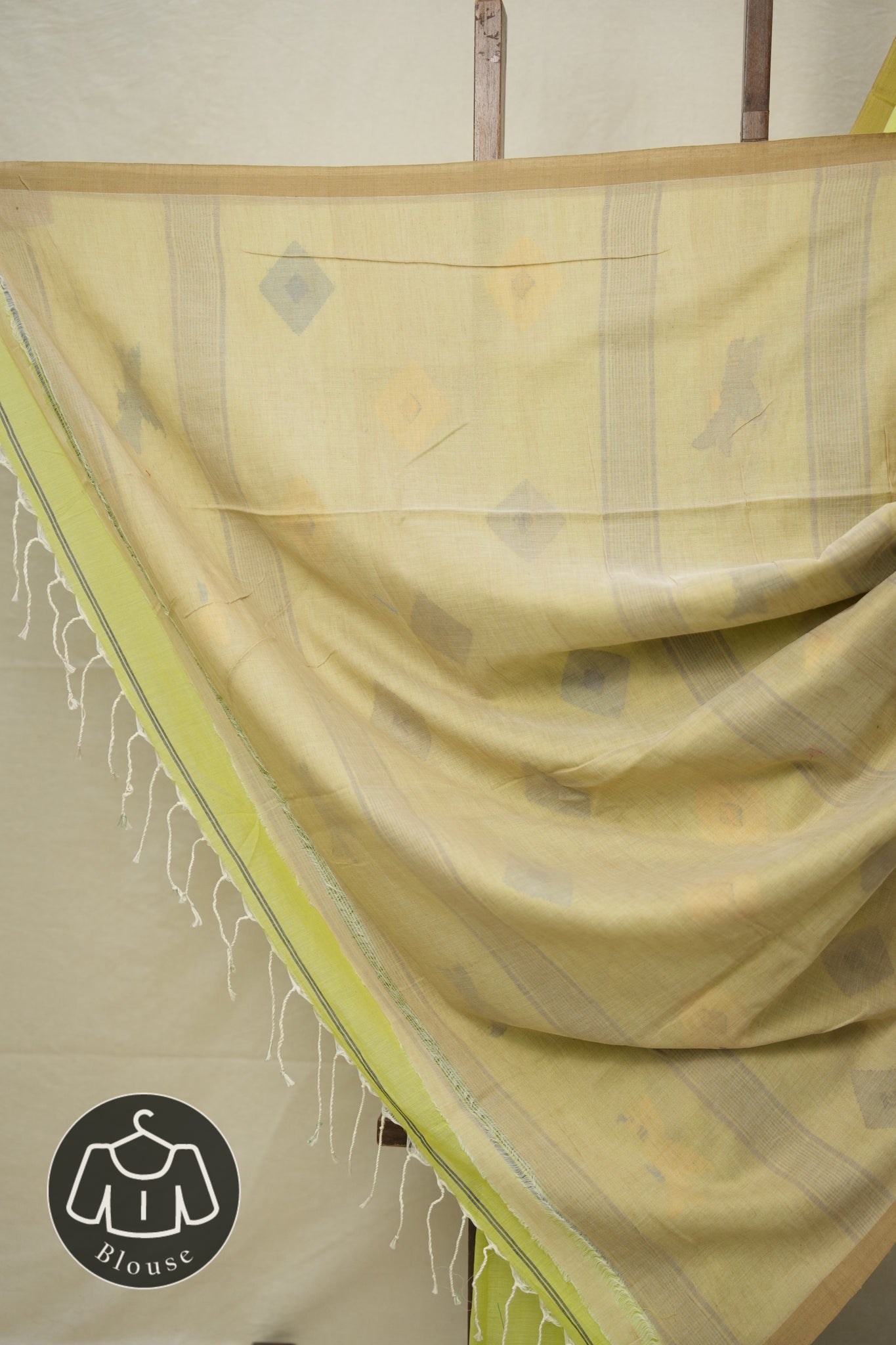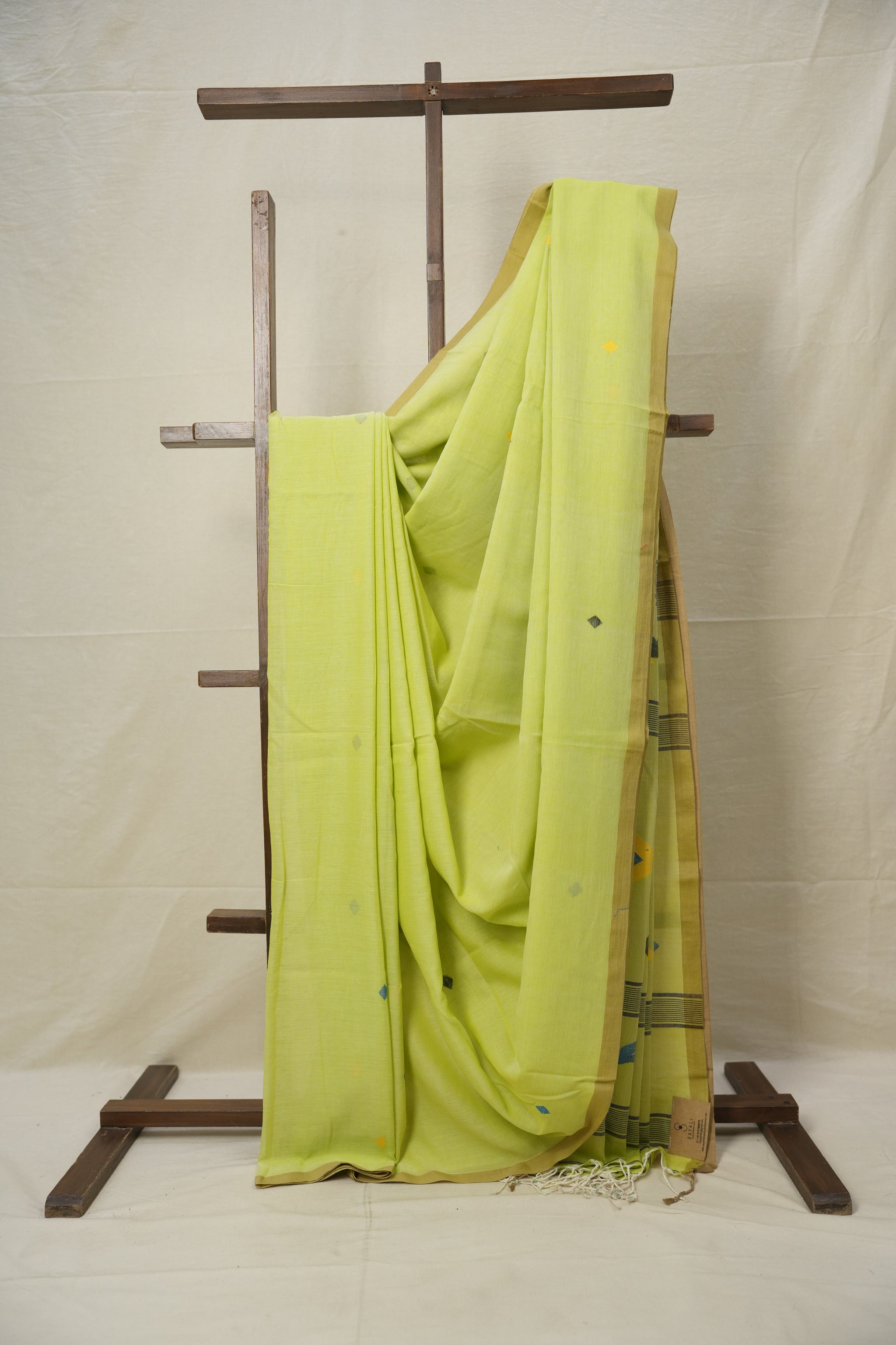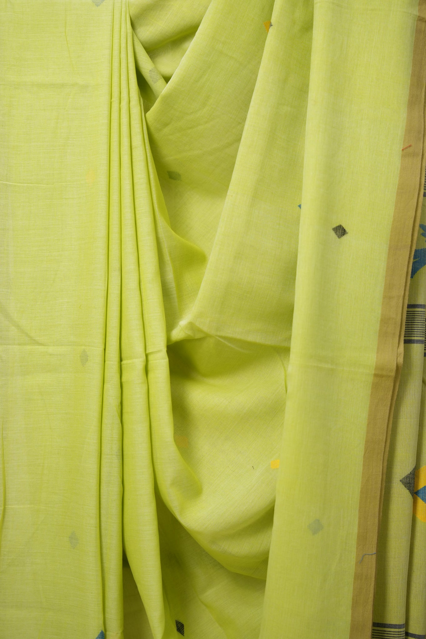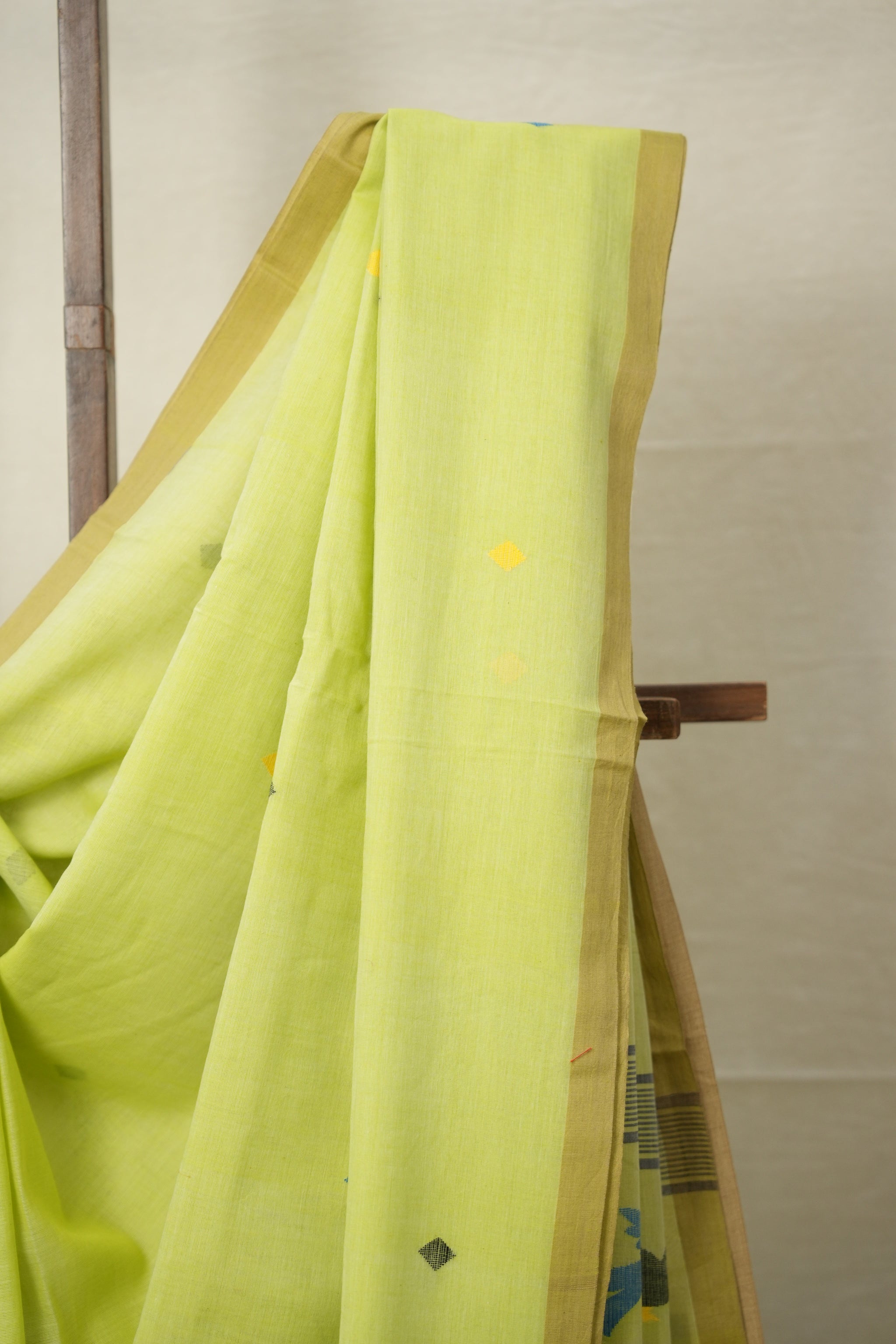 Parrot Green Mul Cotton Jamdani Saree-SRPGMCJS177