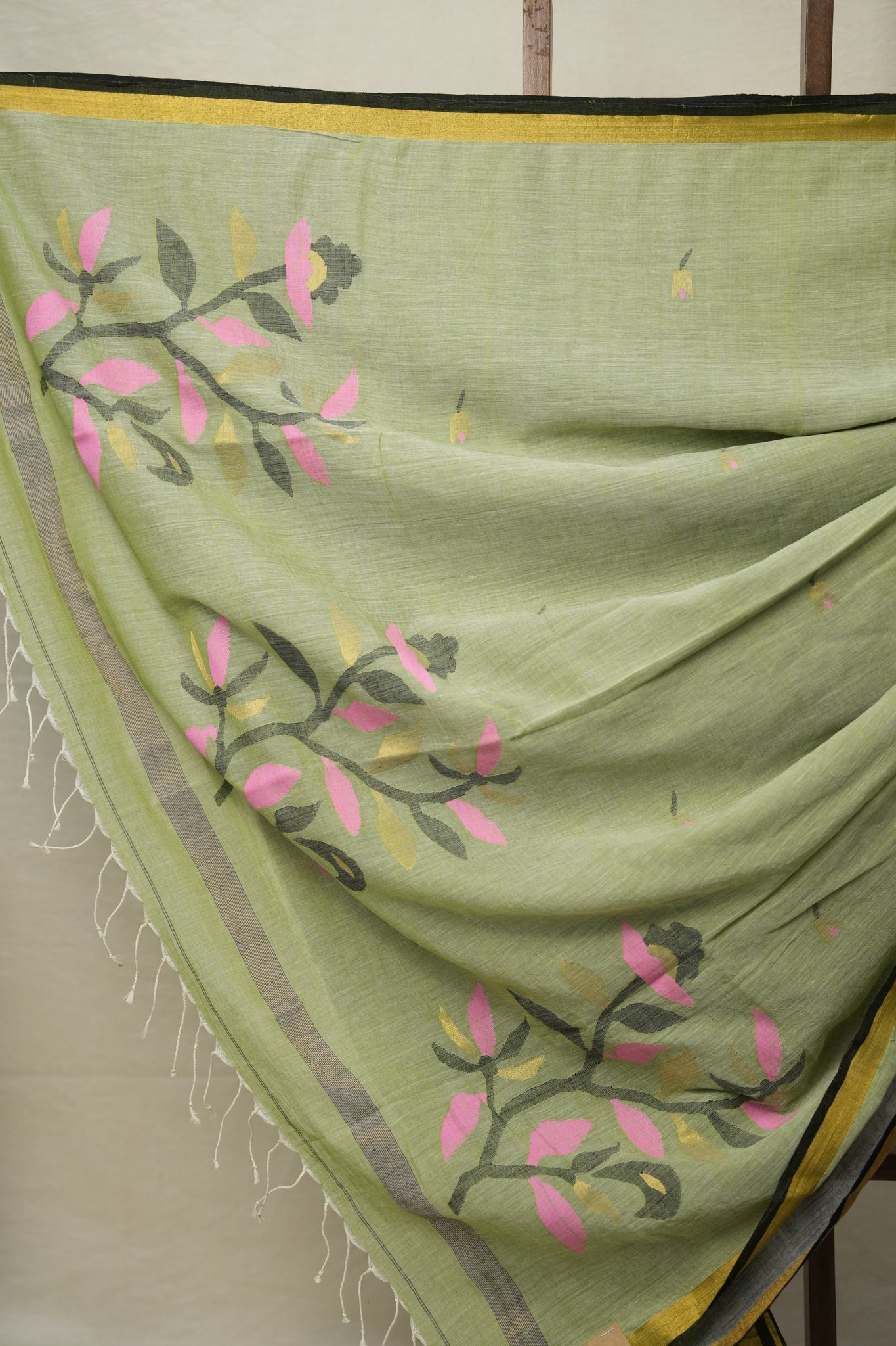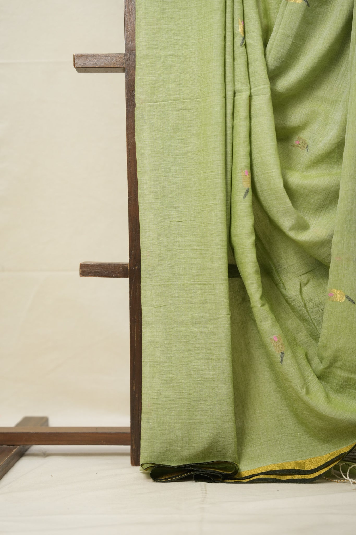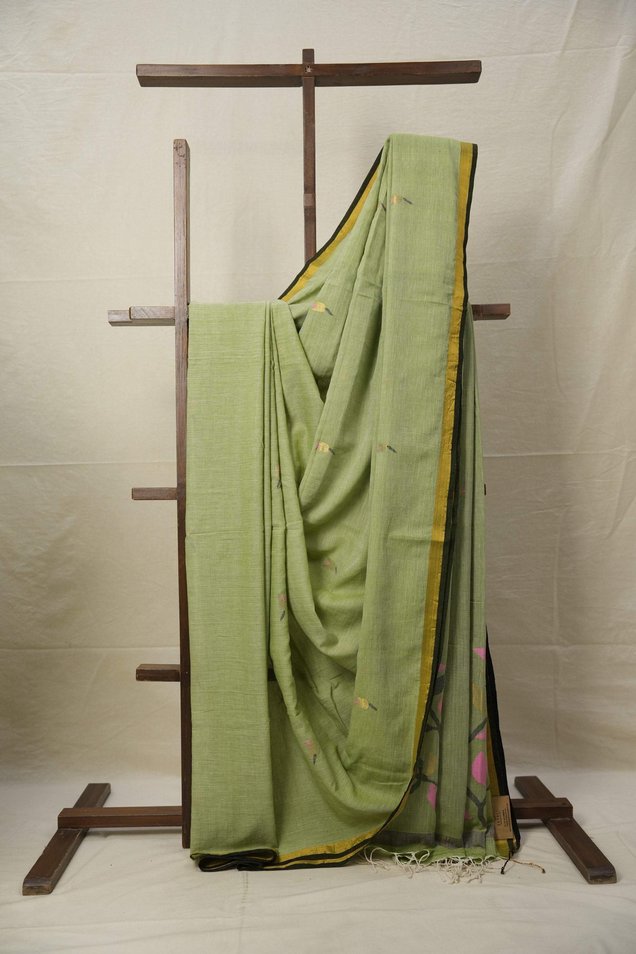 Pista Green Mul Cotton Jamdani Saree-SRPGMCJS171