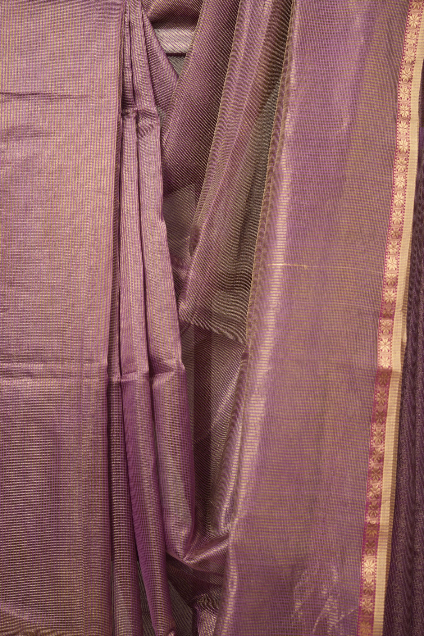 Work - Maheshwari tissue saree with a violet gold stripes and highlighted by a golden sheen and an elegant zari border.