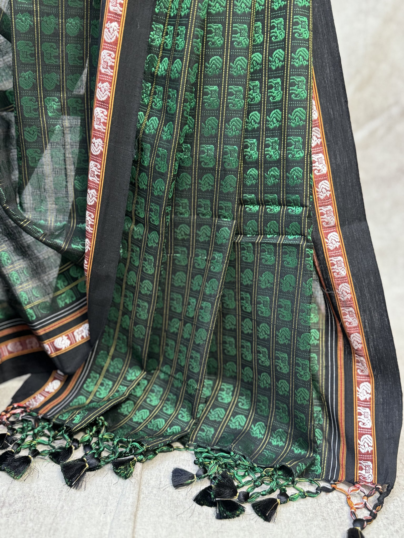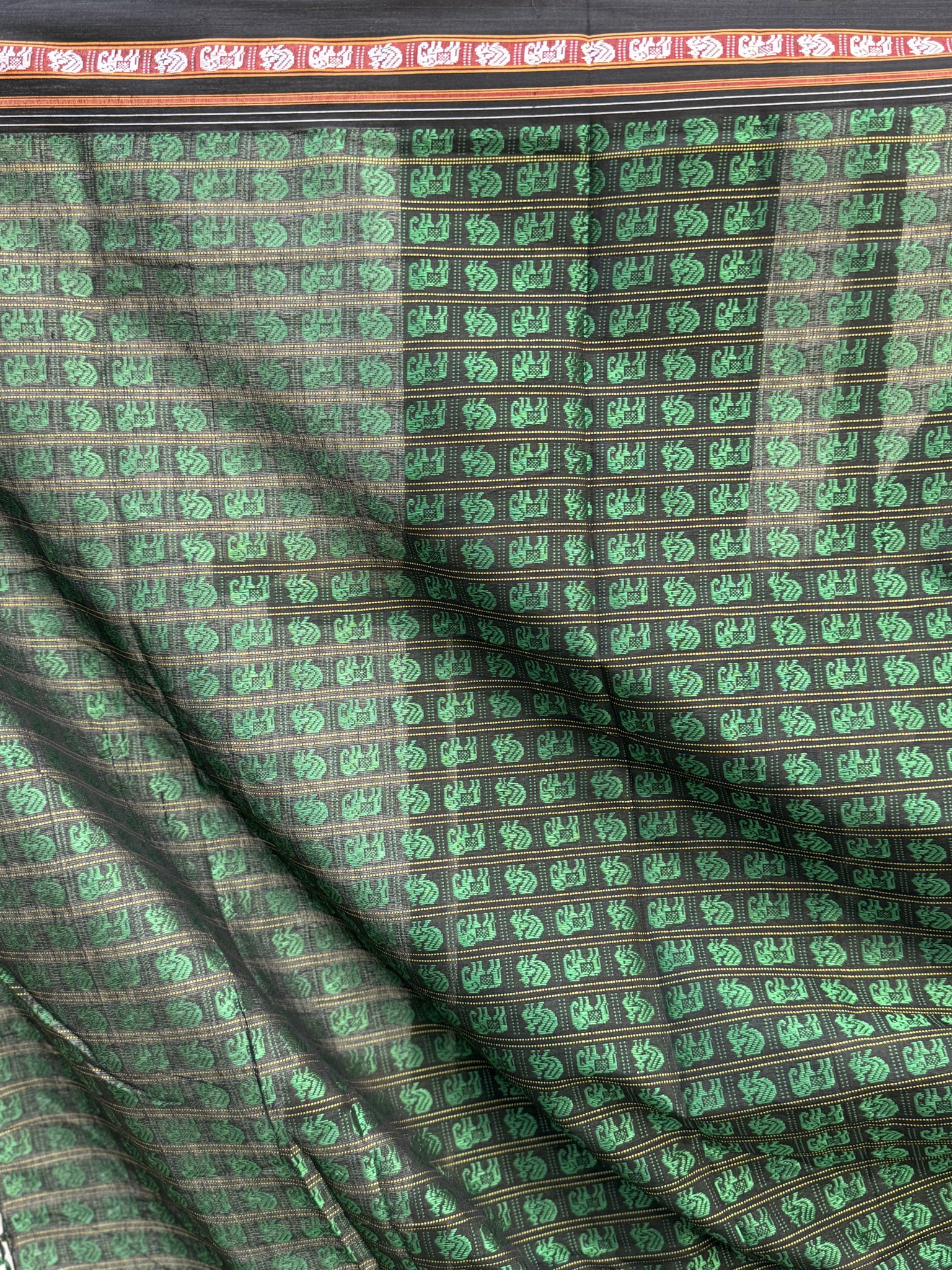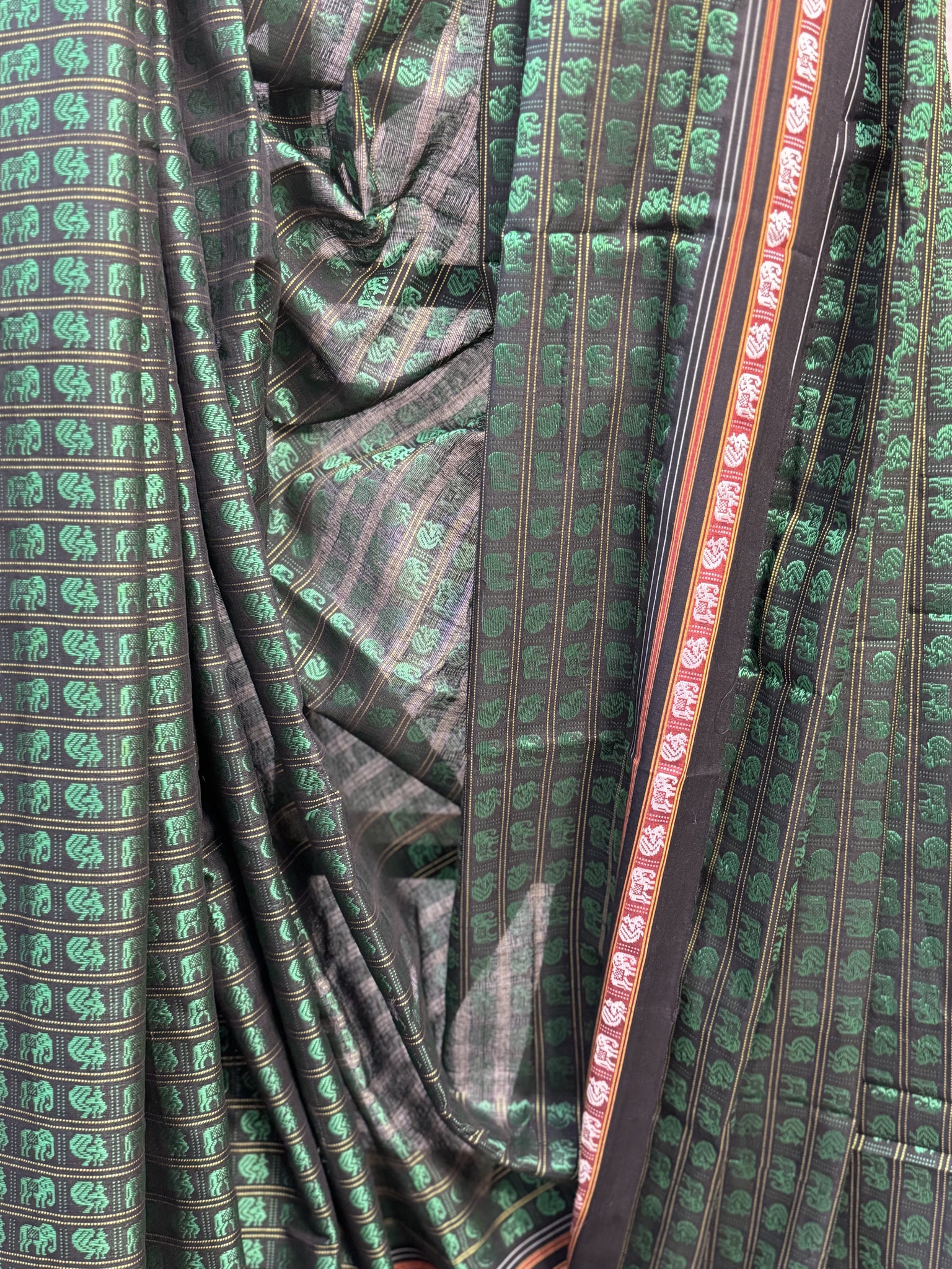 Black-Green Hathi Mor Khun Saree - SRBGHMKS35