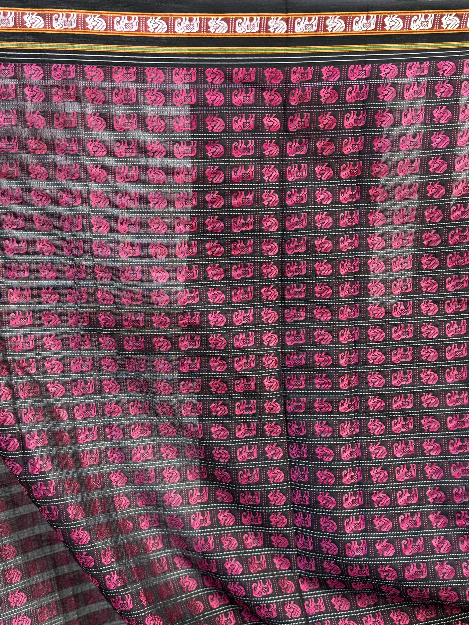 Black-Pink Hathi Mor Khun Saree-SRBPHMKS37