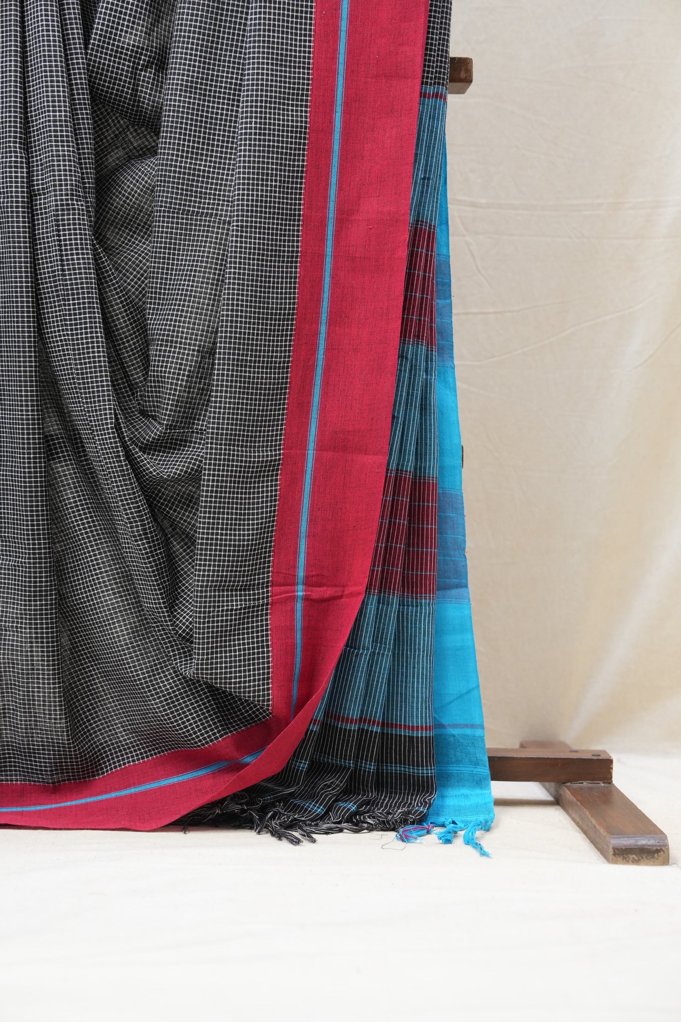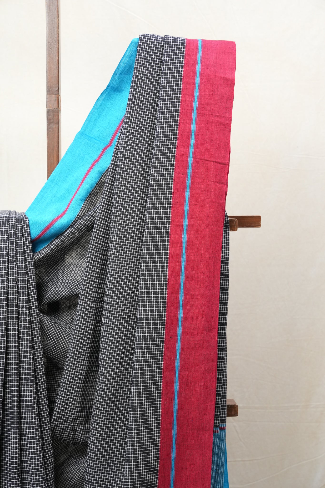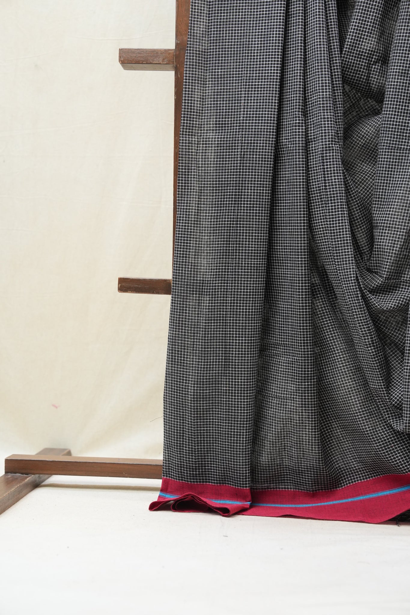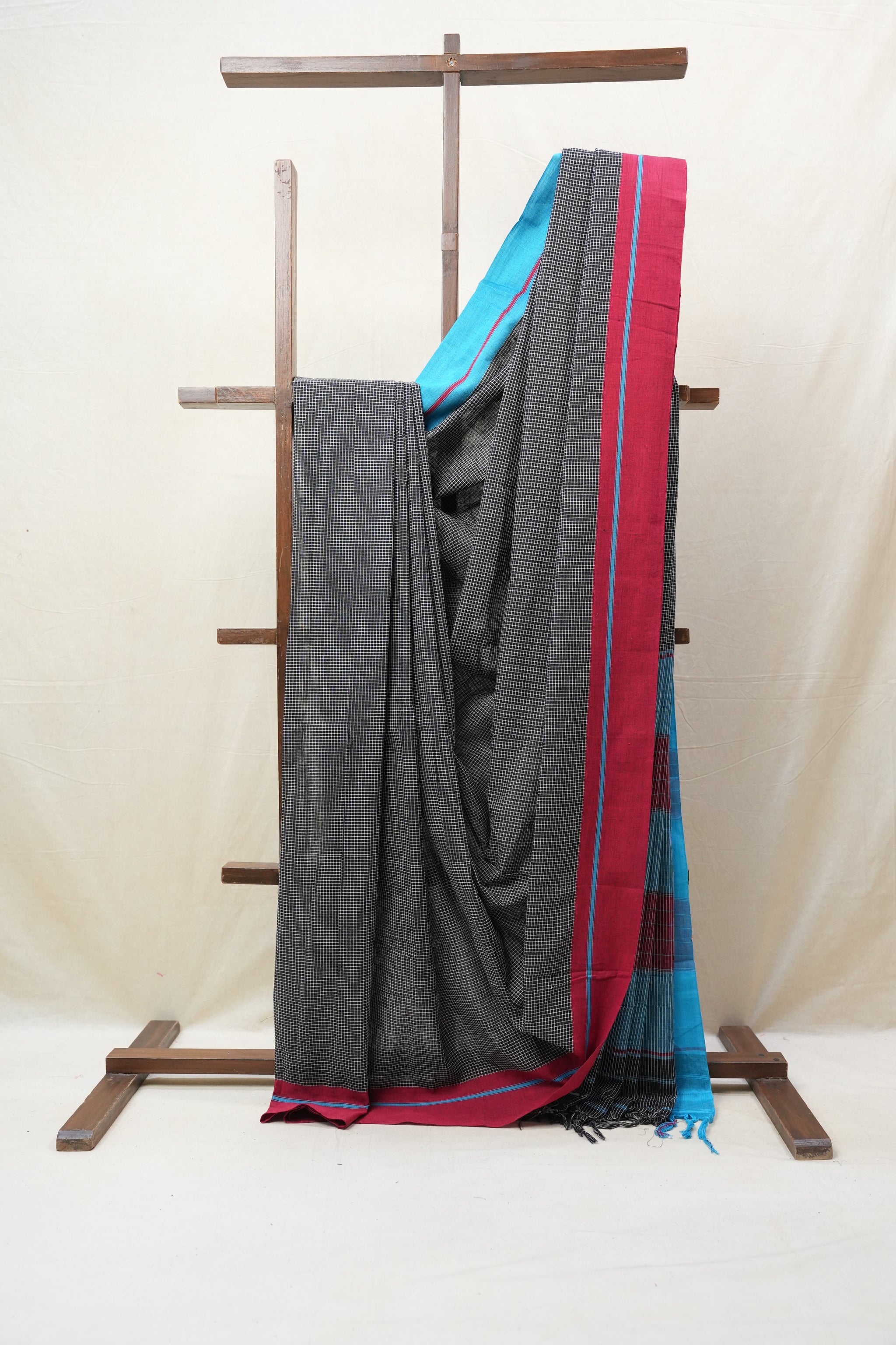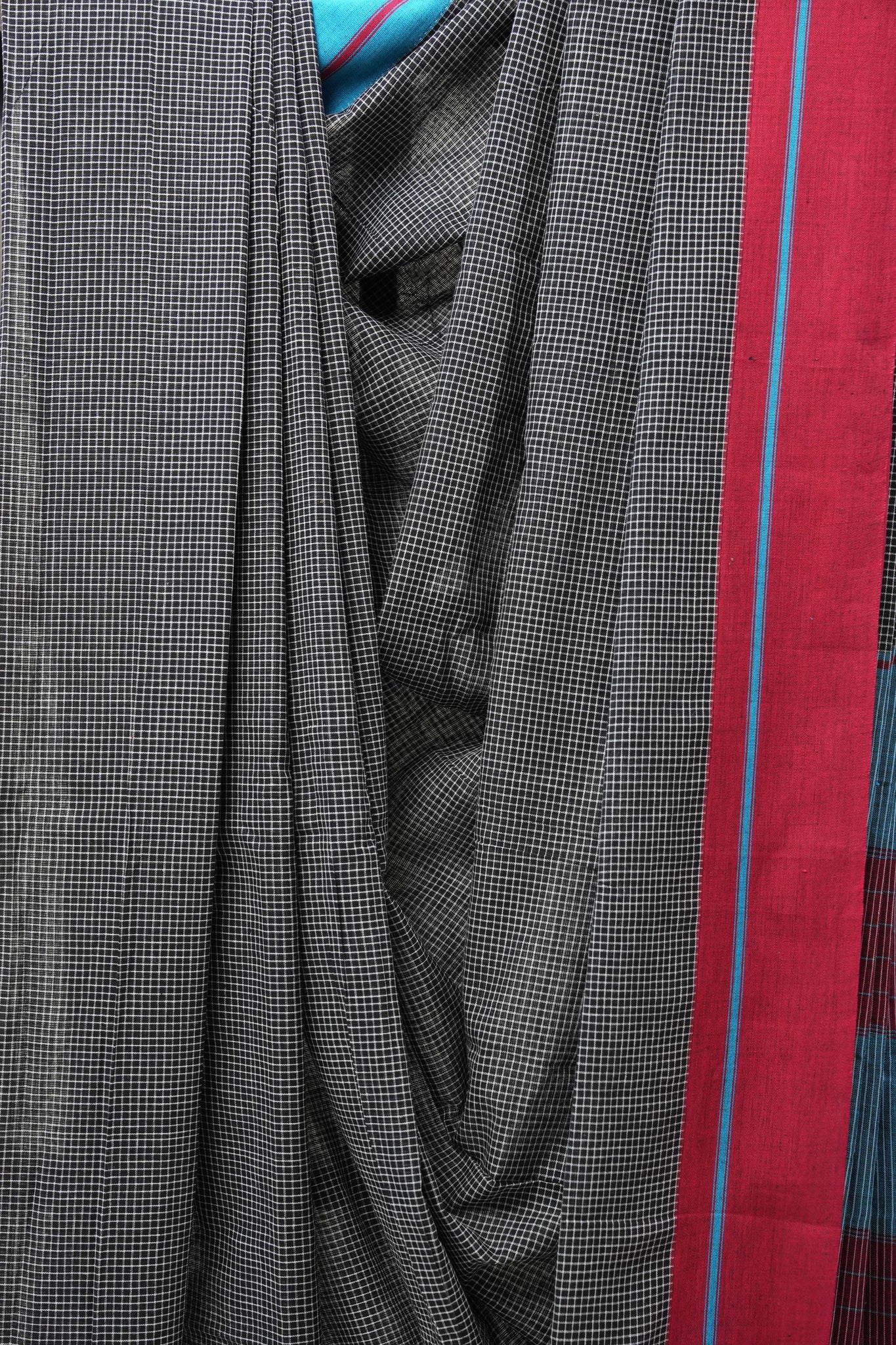 Black Small Checks Cotton Patteda Anchu Saree - SRBPAS258