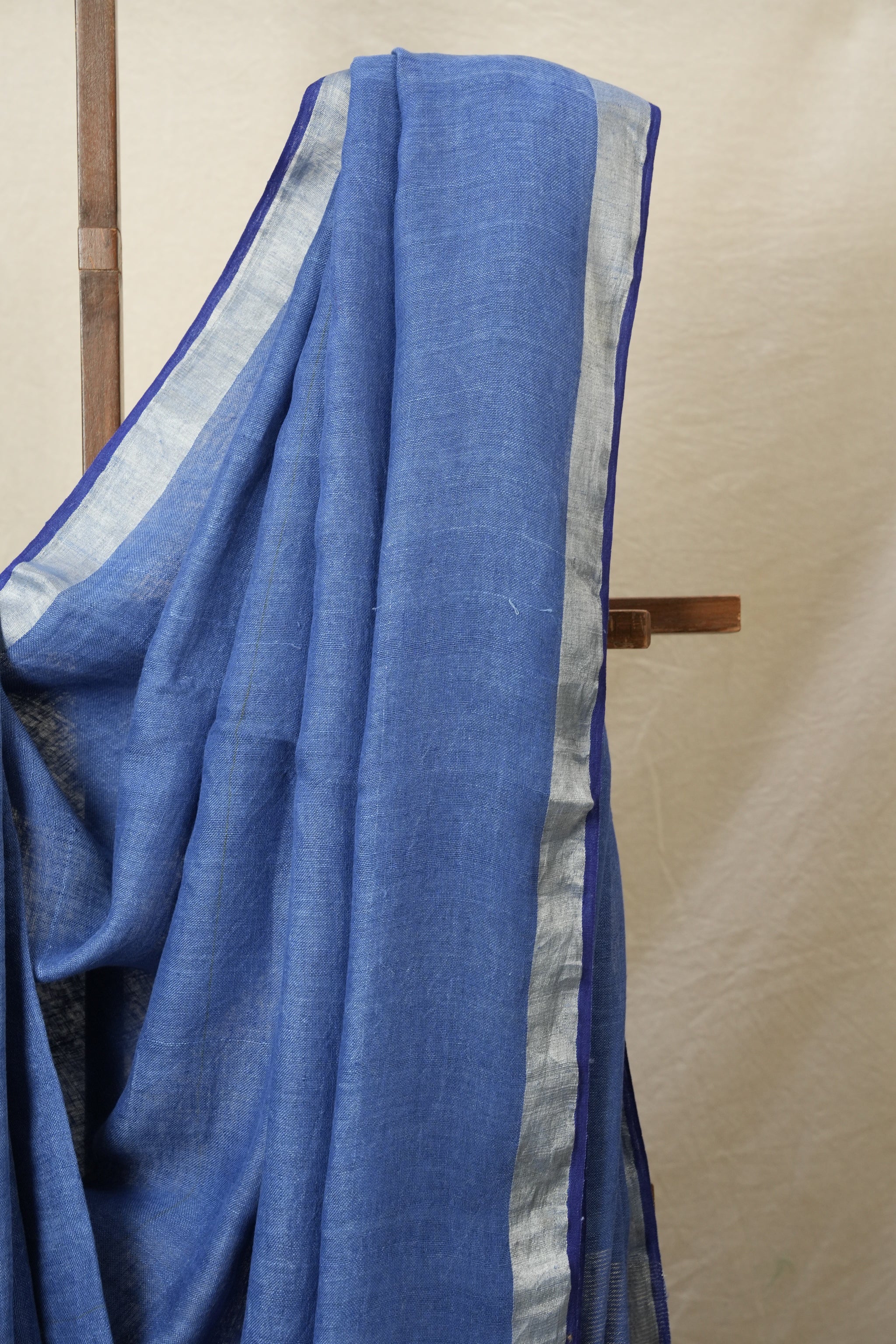 Work - Plain linen saree with Silver Zari border