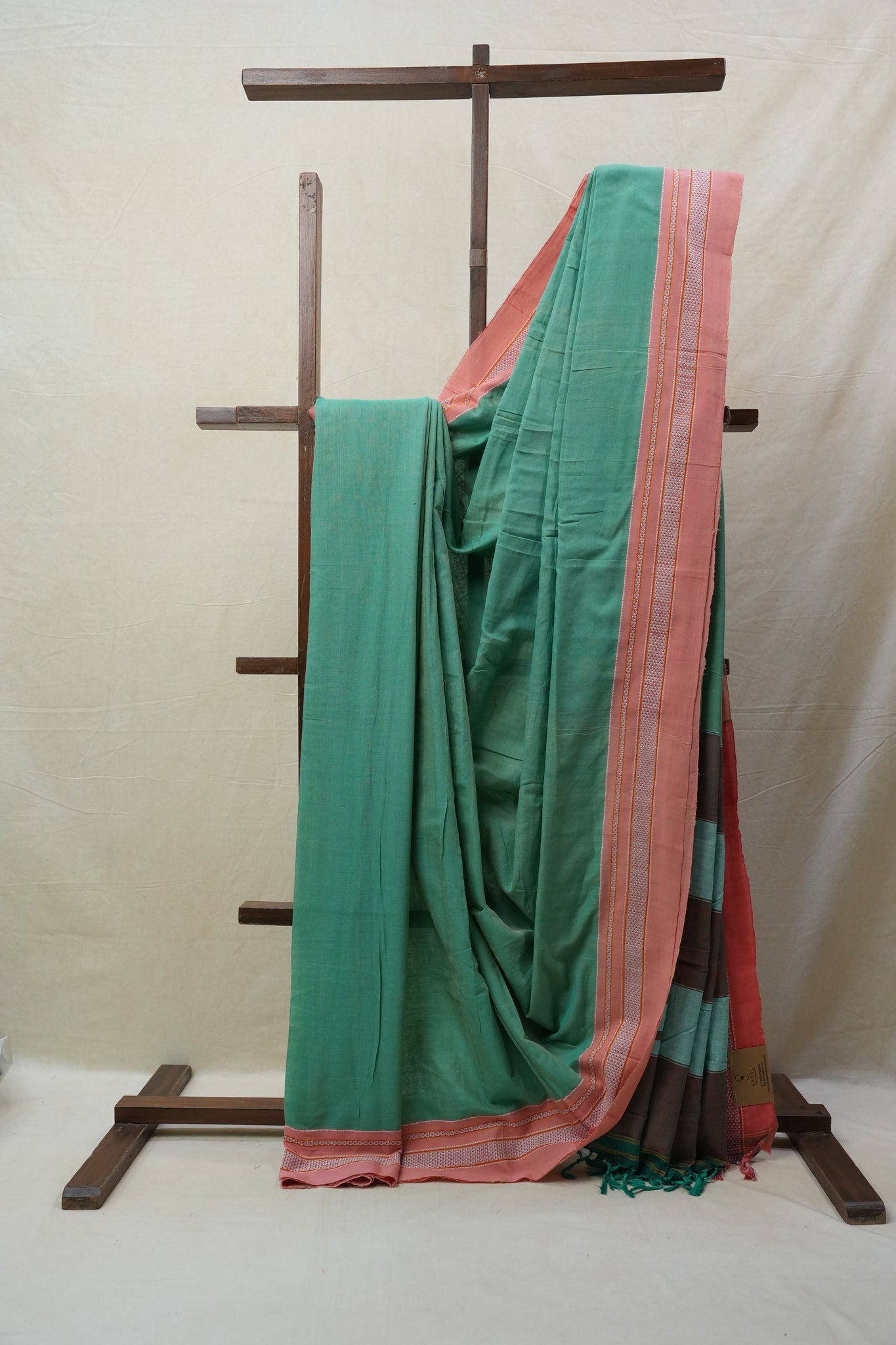 Green Cotton Ilkal Saree with Gayatri Border - SRGCIS597