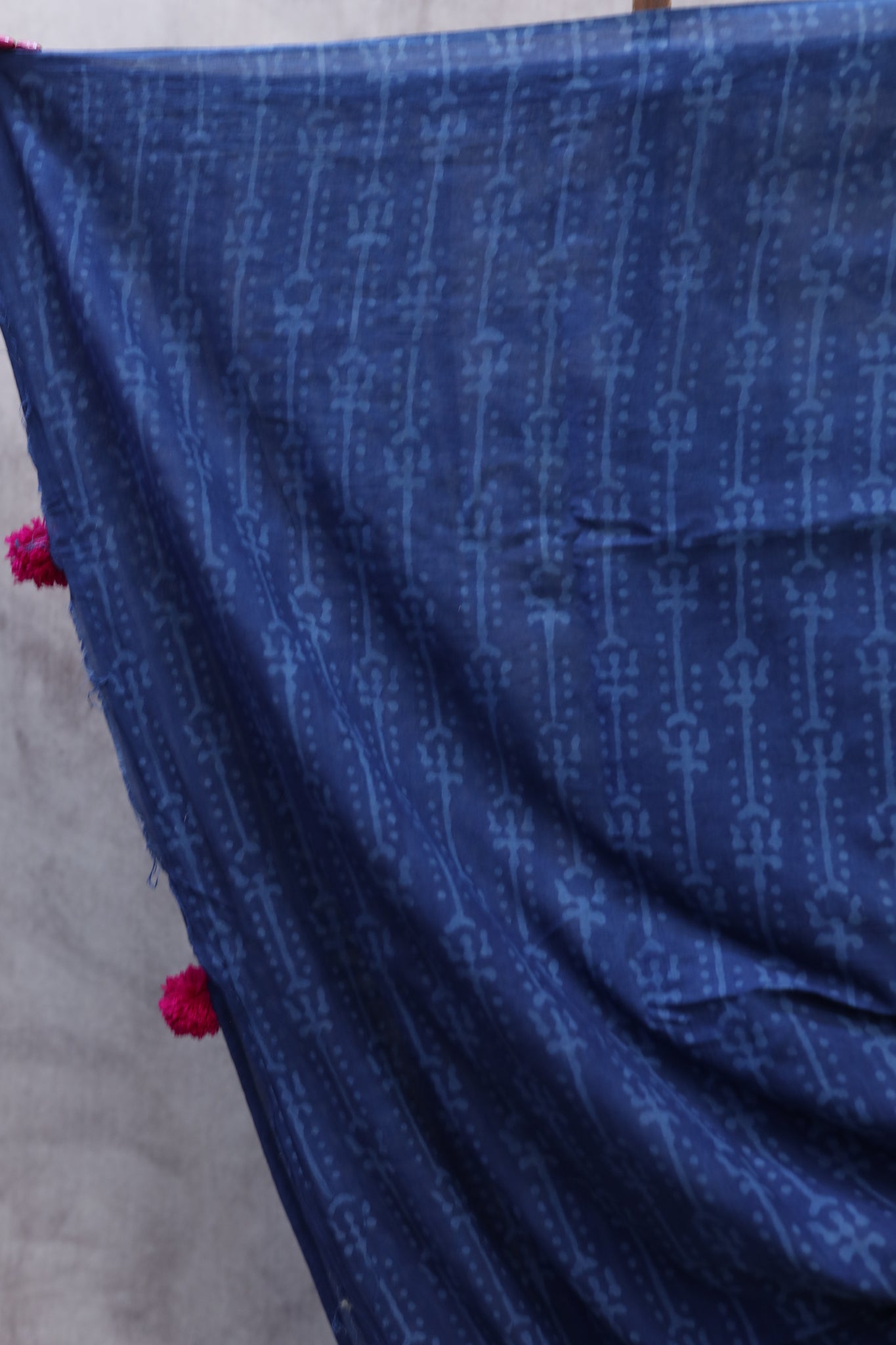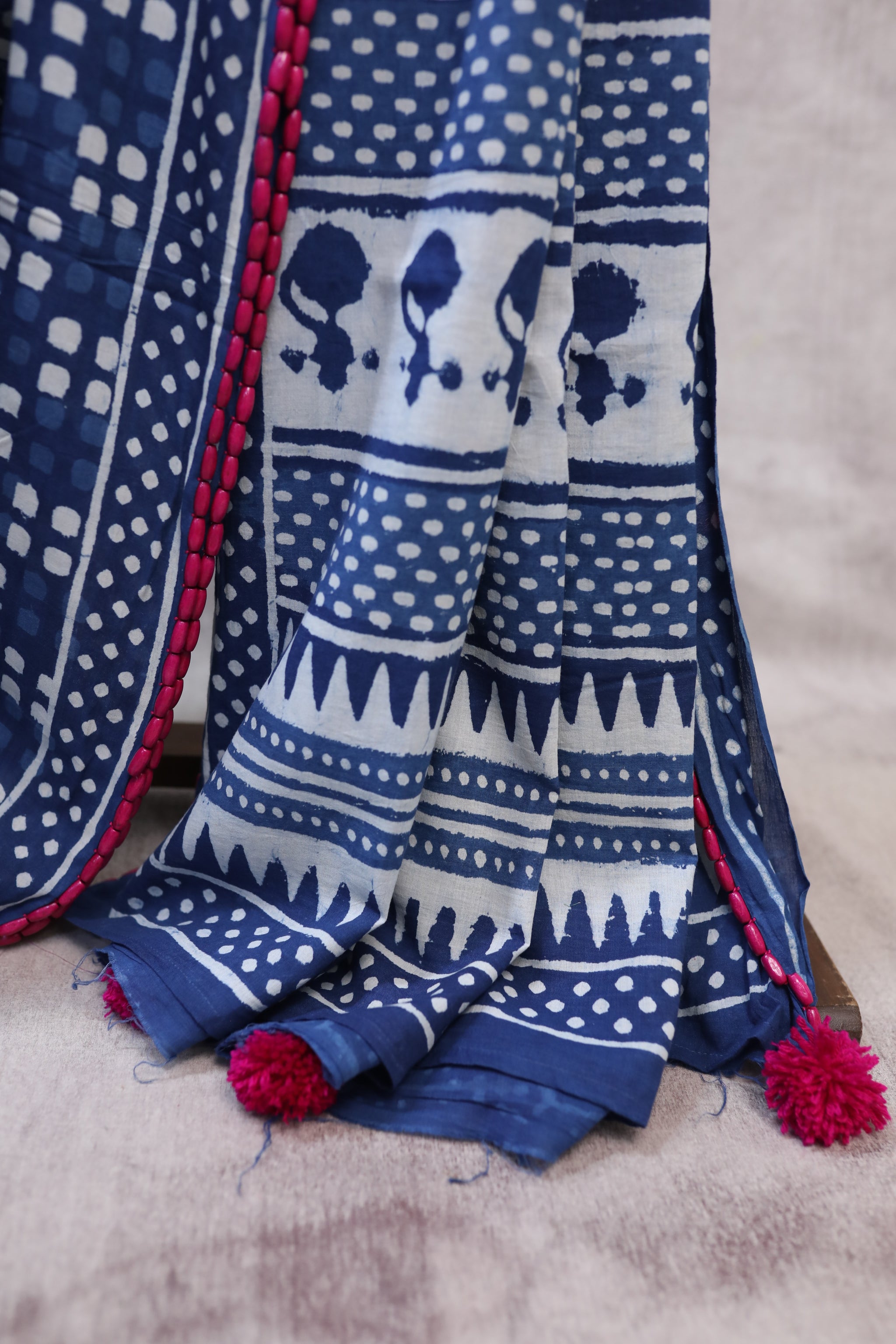 Indigo HBP Cotton Saree With Beads-SRICS168