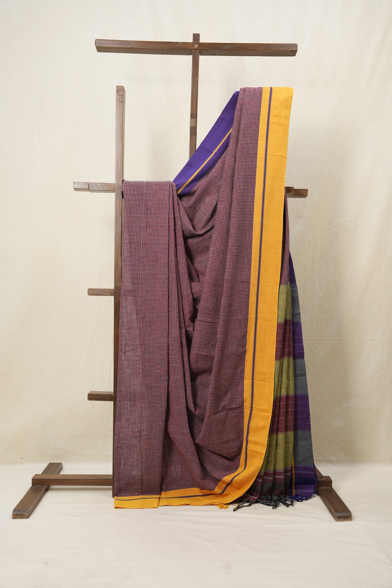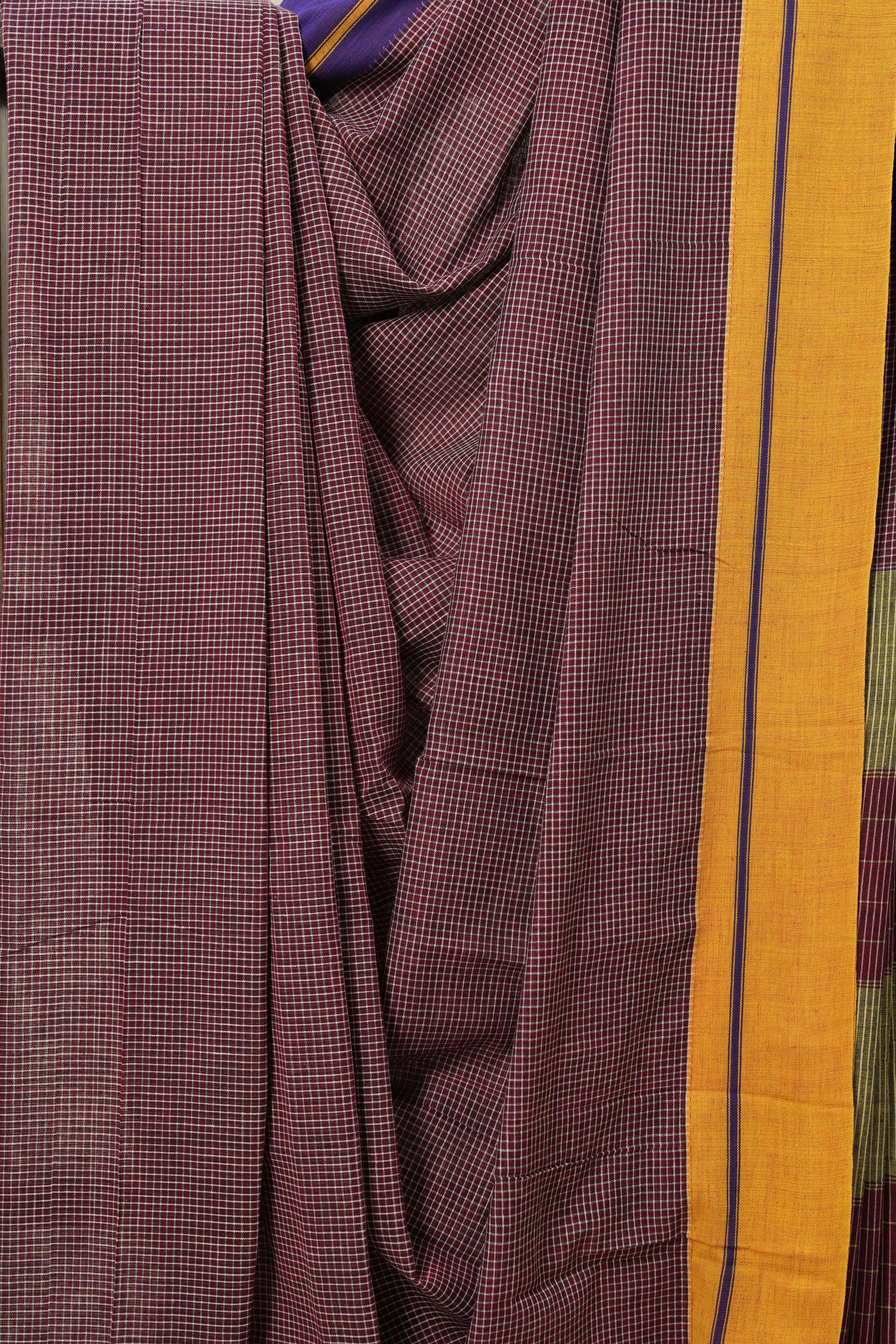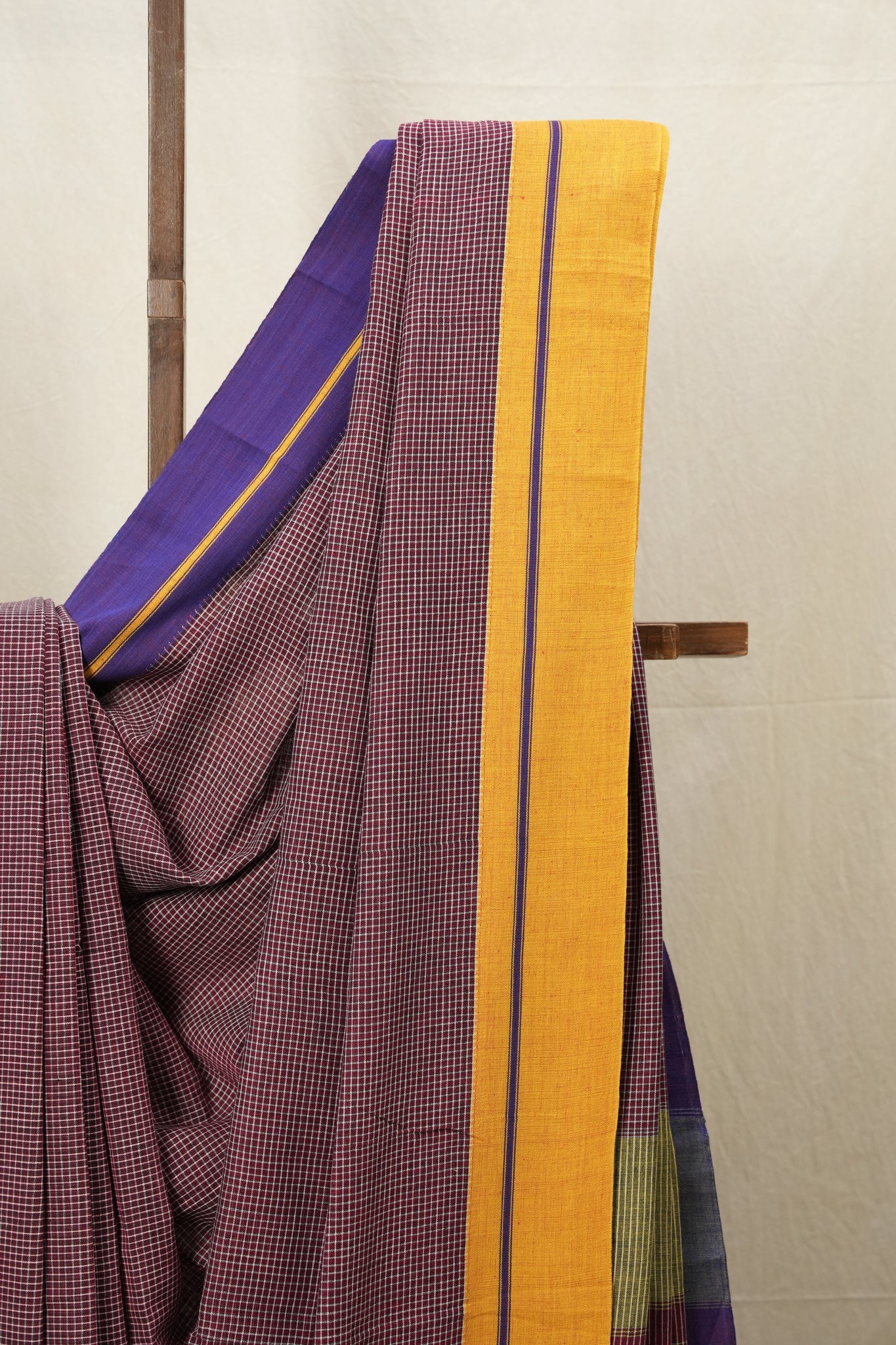 Maroon Small Checks Cotton Patteda Anchu Saree - SRMPAS256