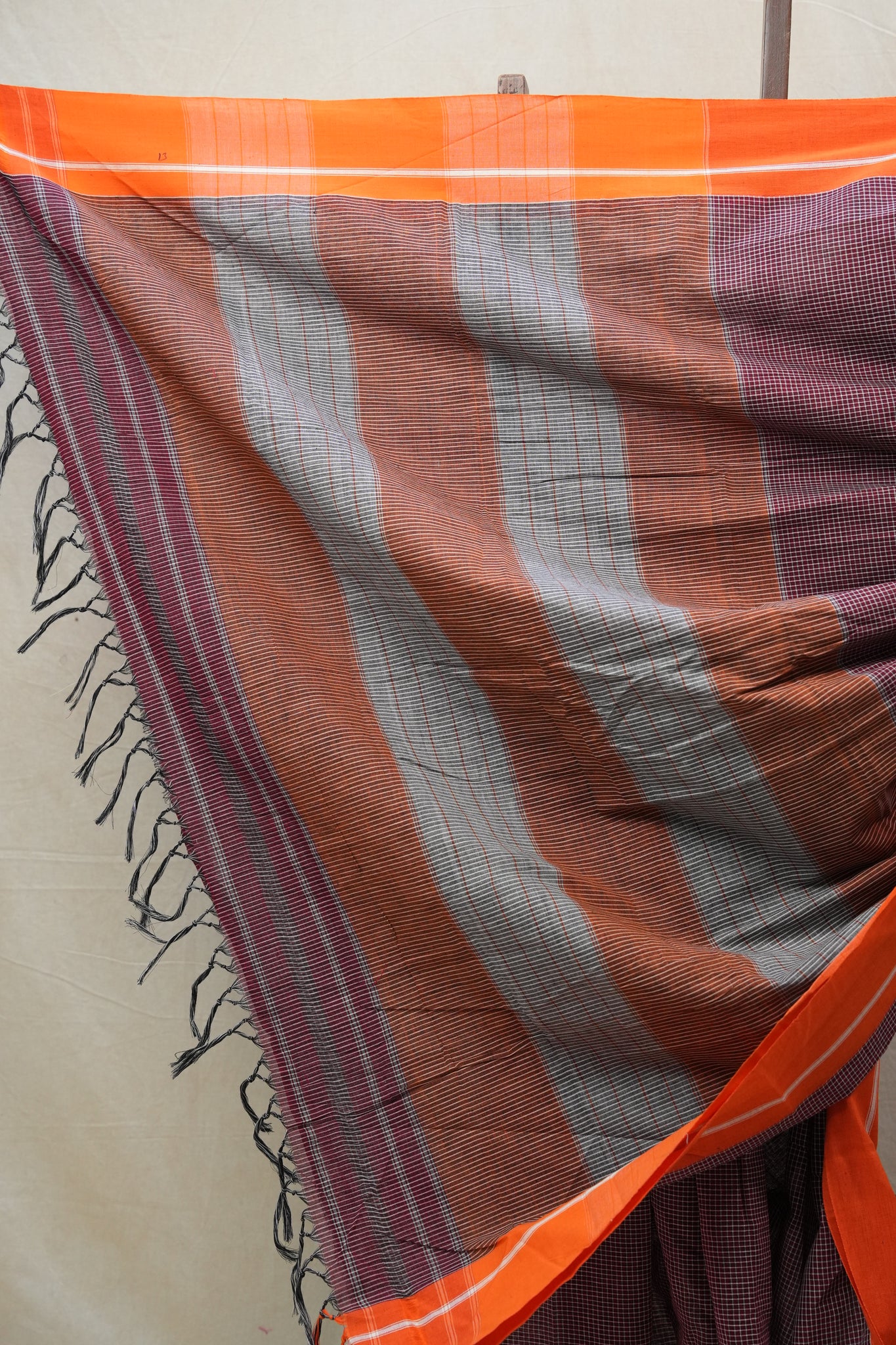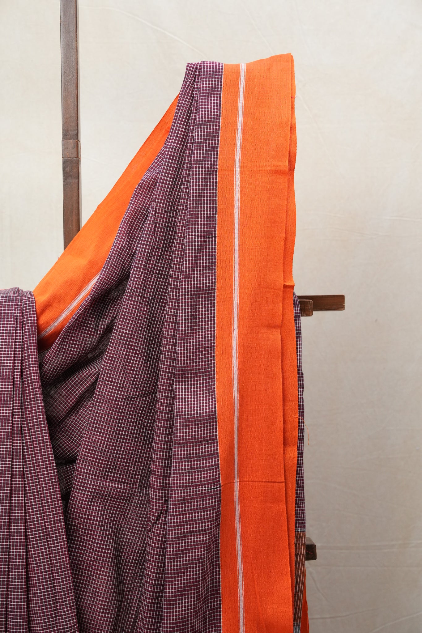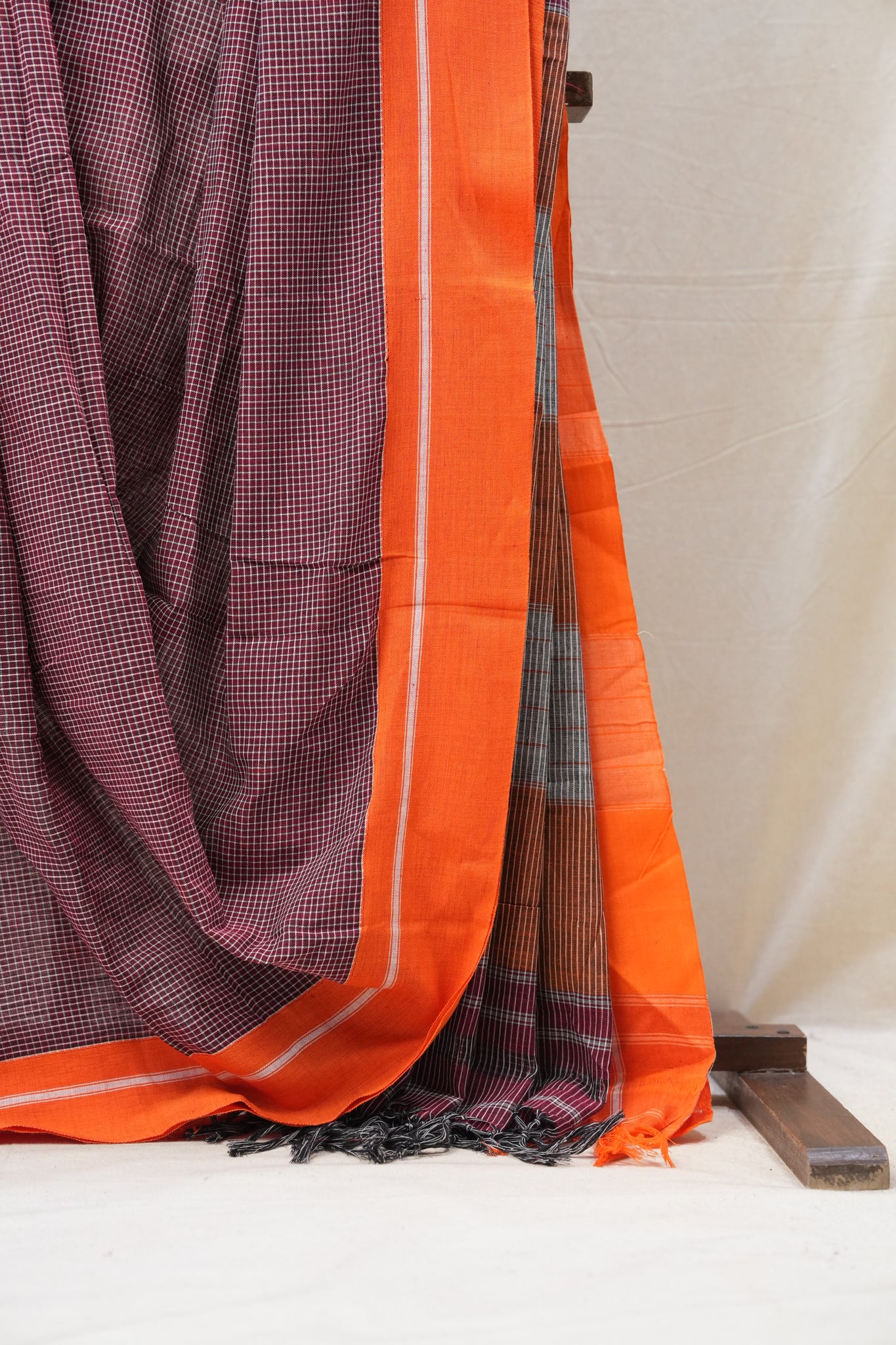 Maroon Small Checks Cotton Patteda Anchu Saree - SRMPAS259
