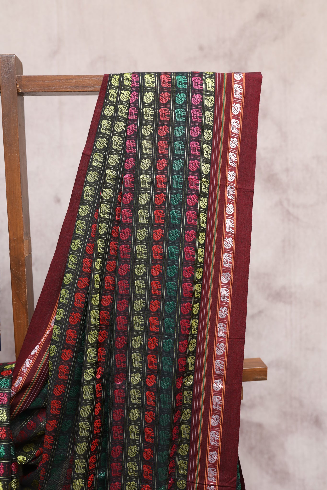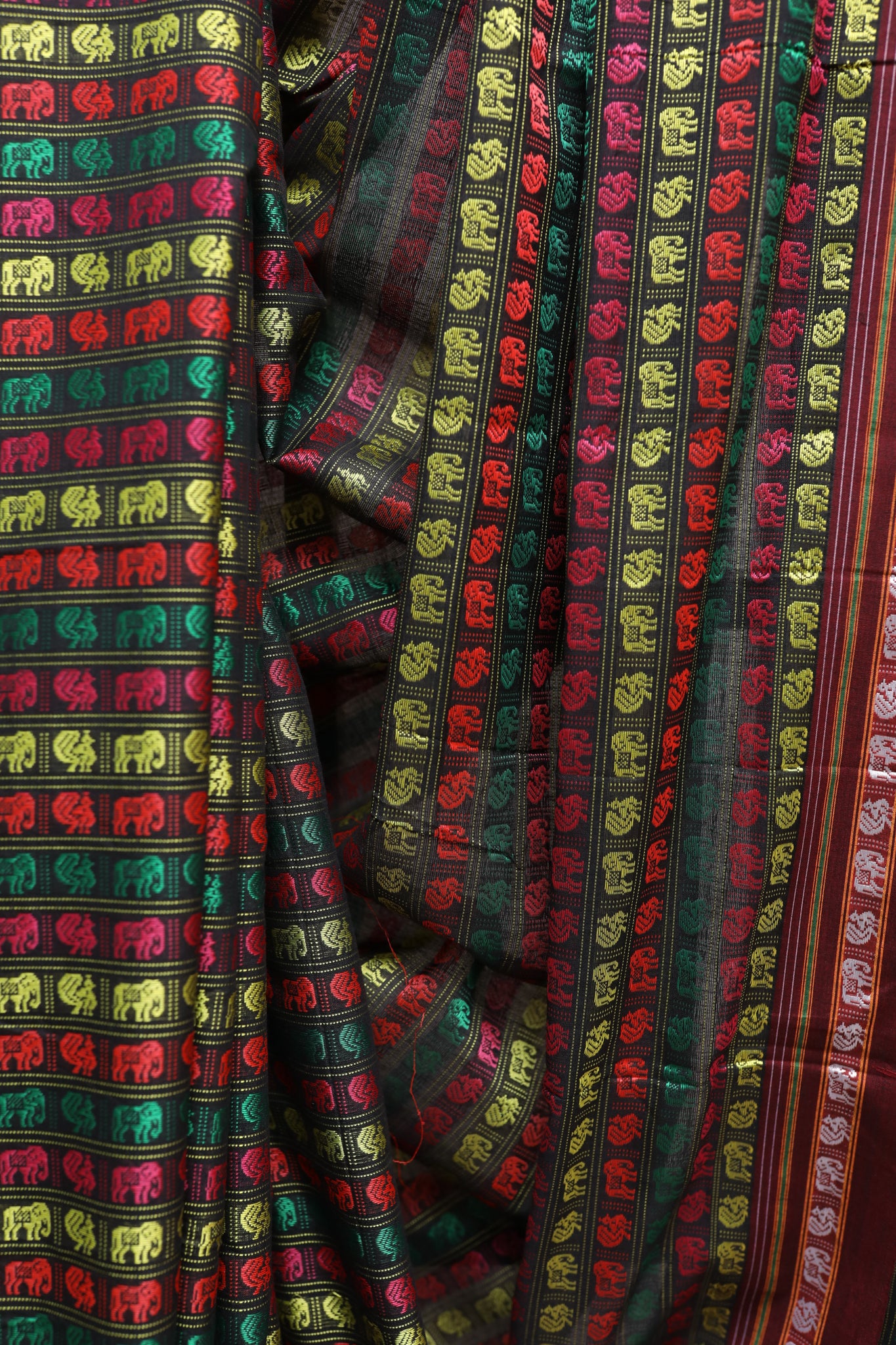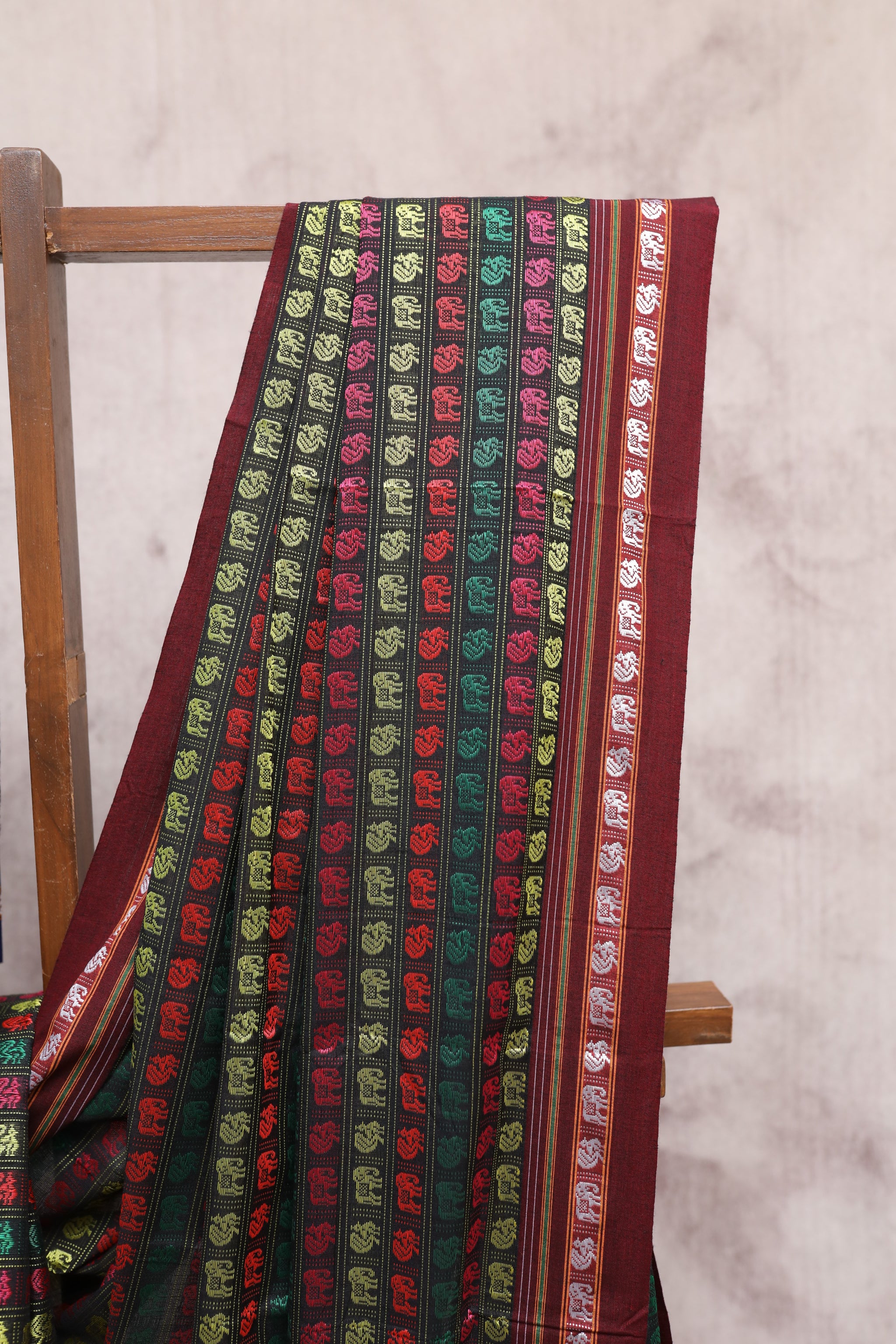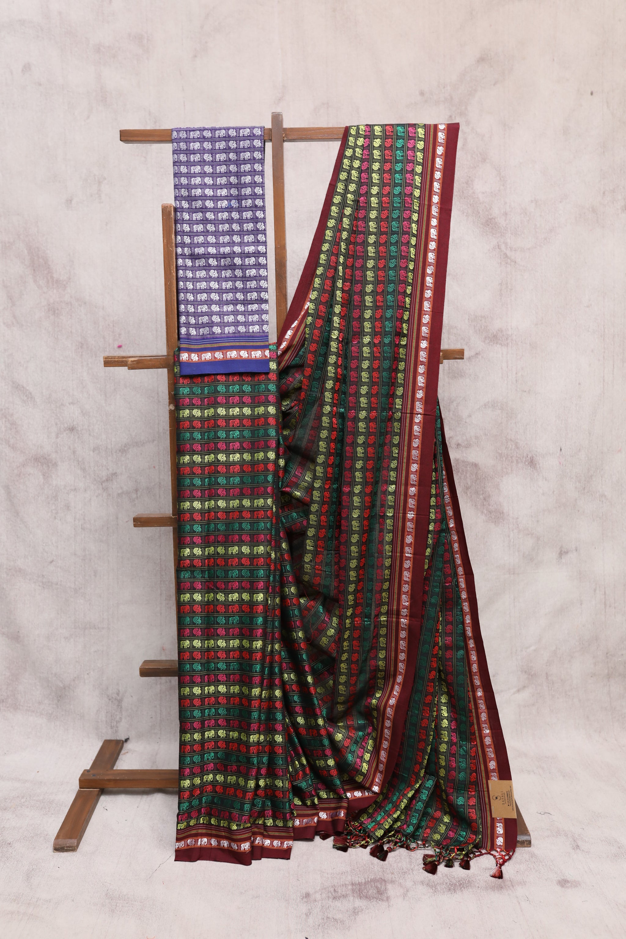 Multicolor Hathi Mor Khun Saree - SRMHMKS42