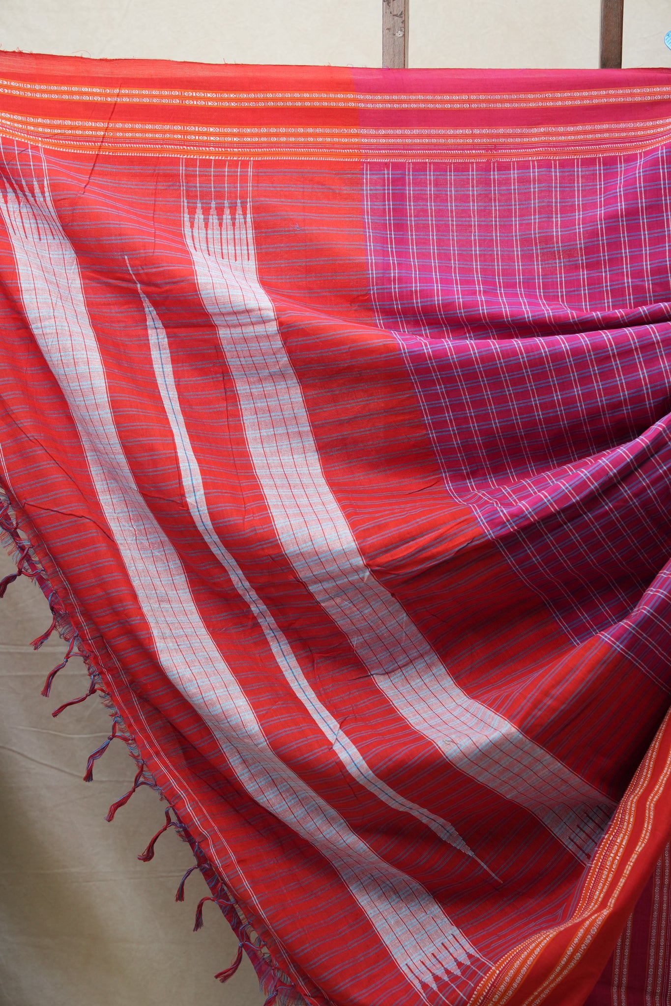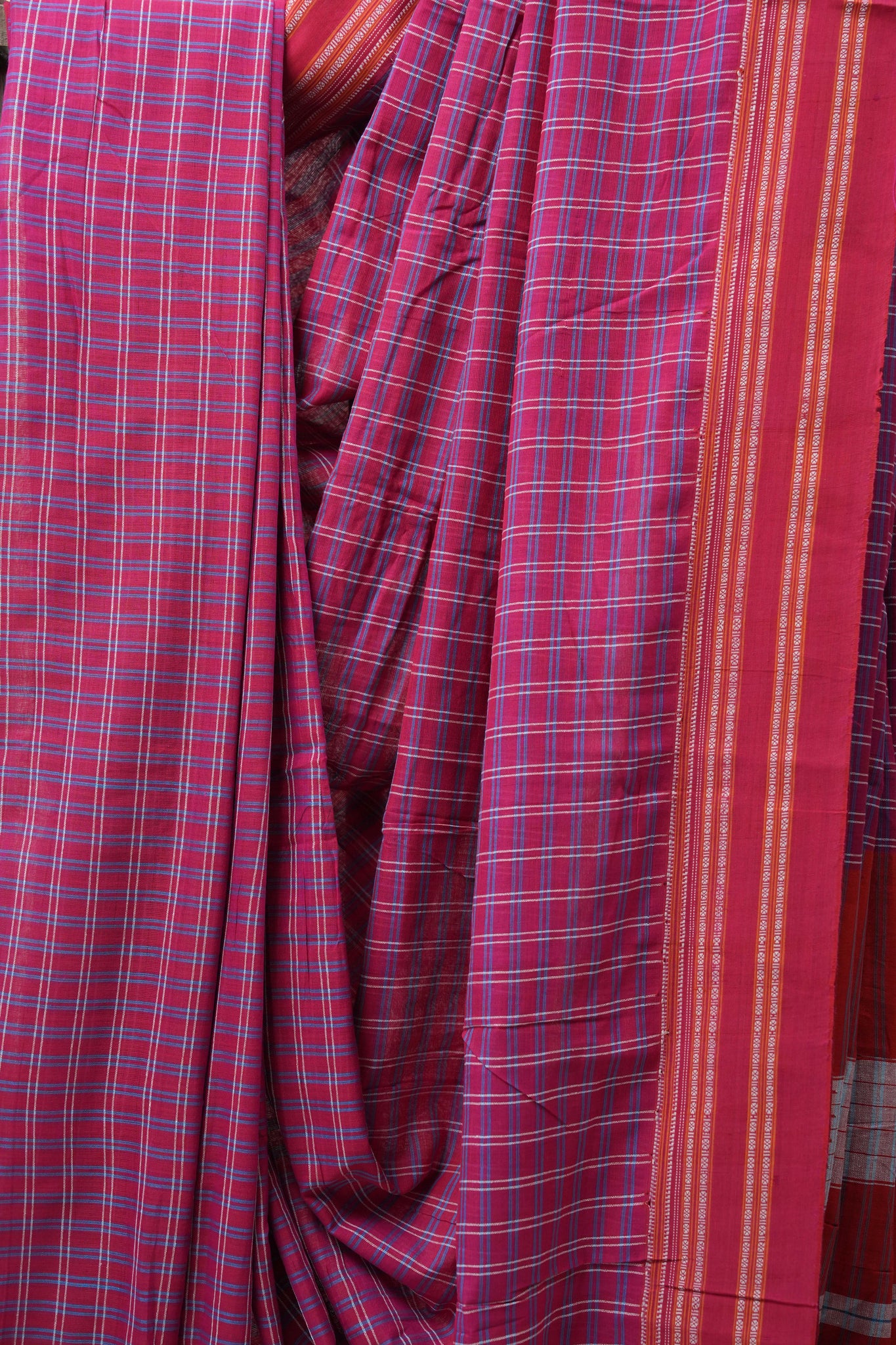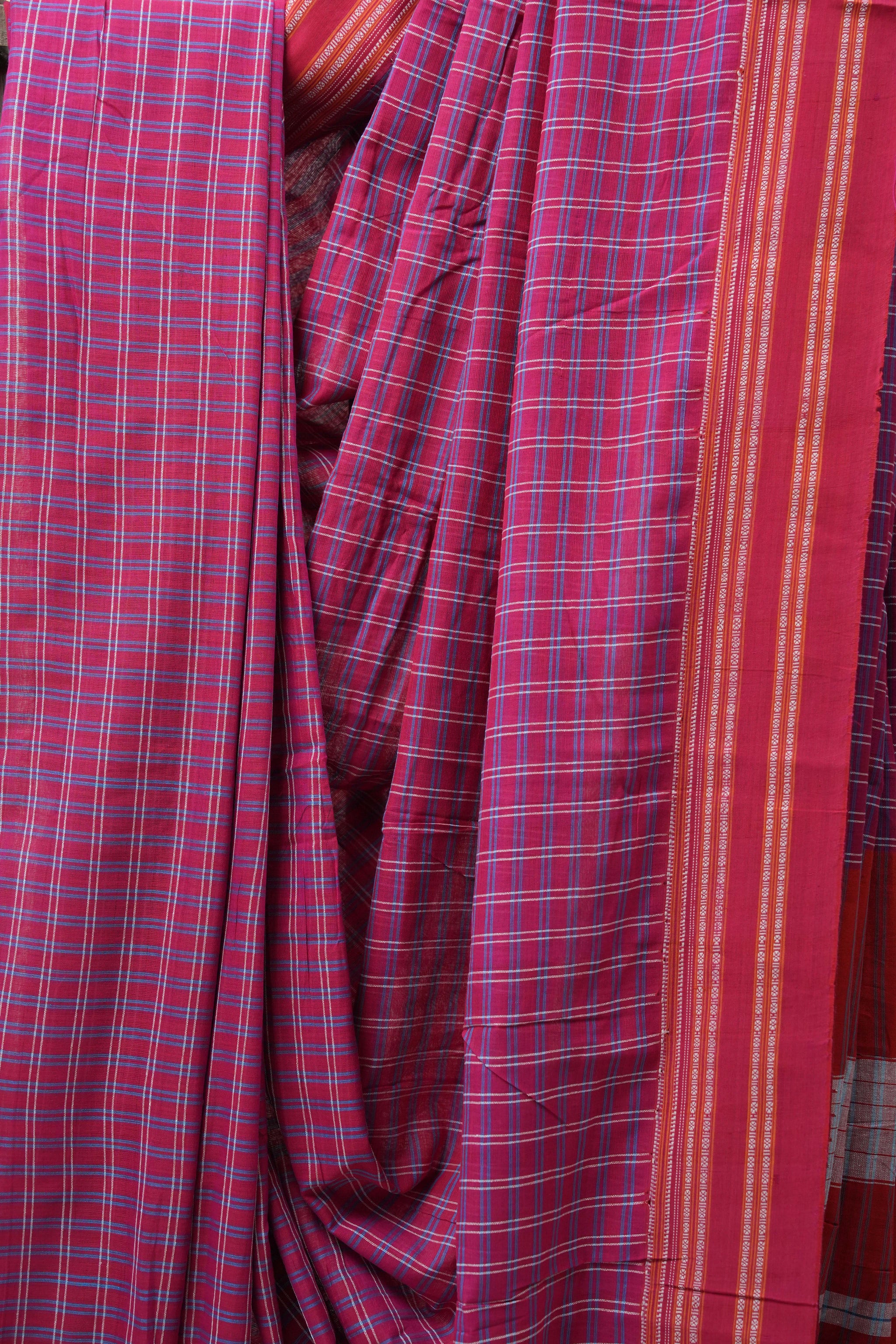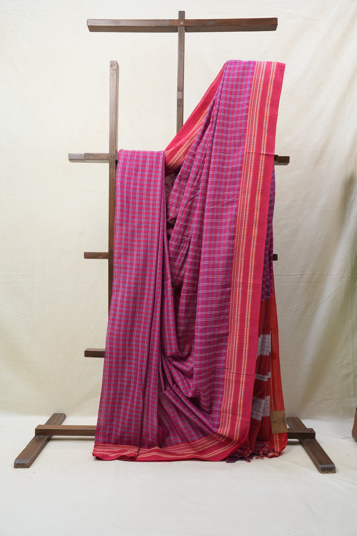 Pink Check Cotton Ilkal Saree with Gayatri Border - SRPCCIS598