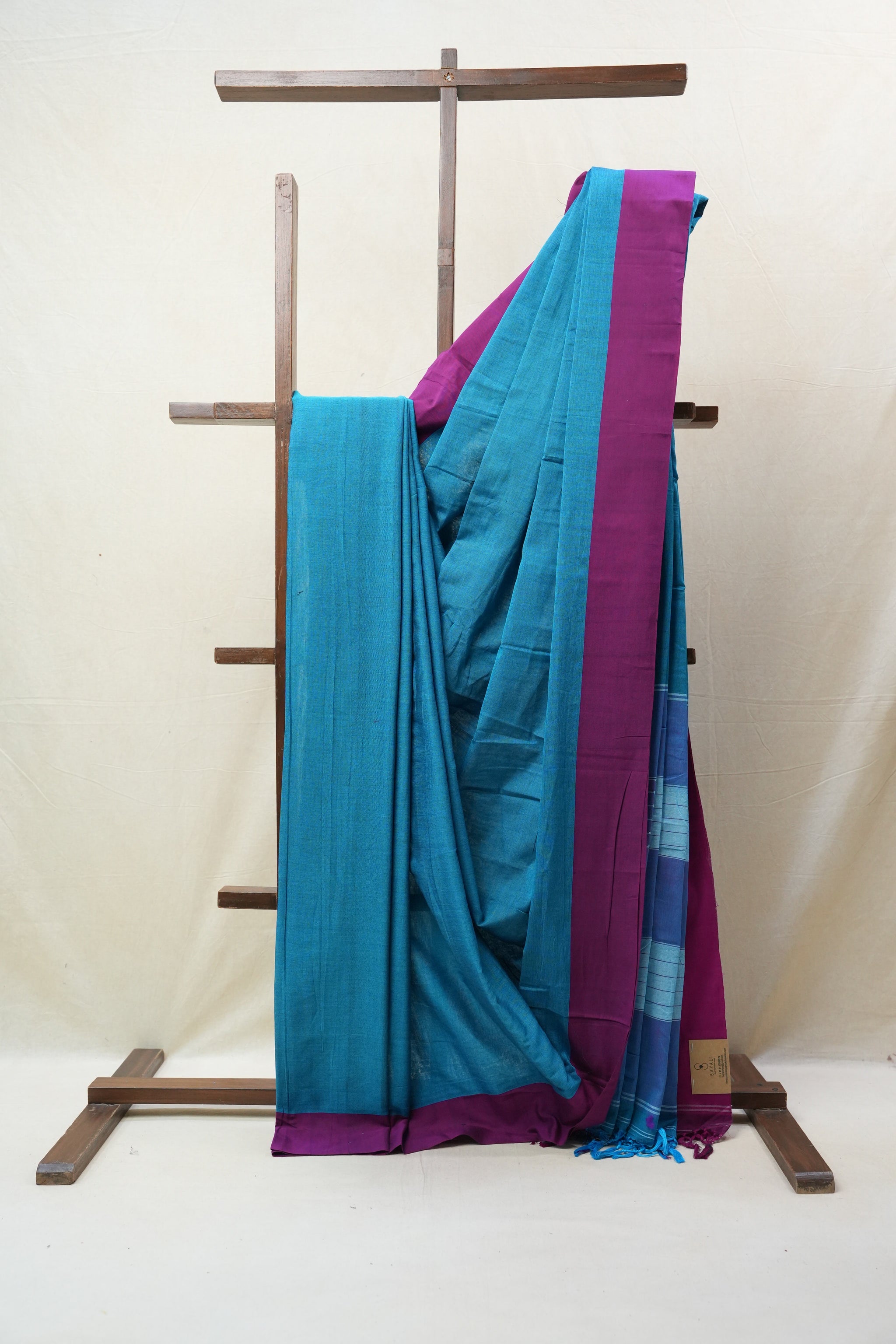 Sky Blue Cotton Ilkal Saree with Plain Border - SRSBCIS622
