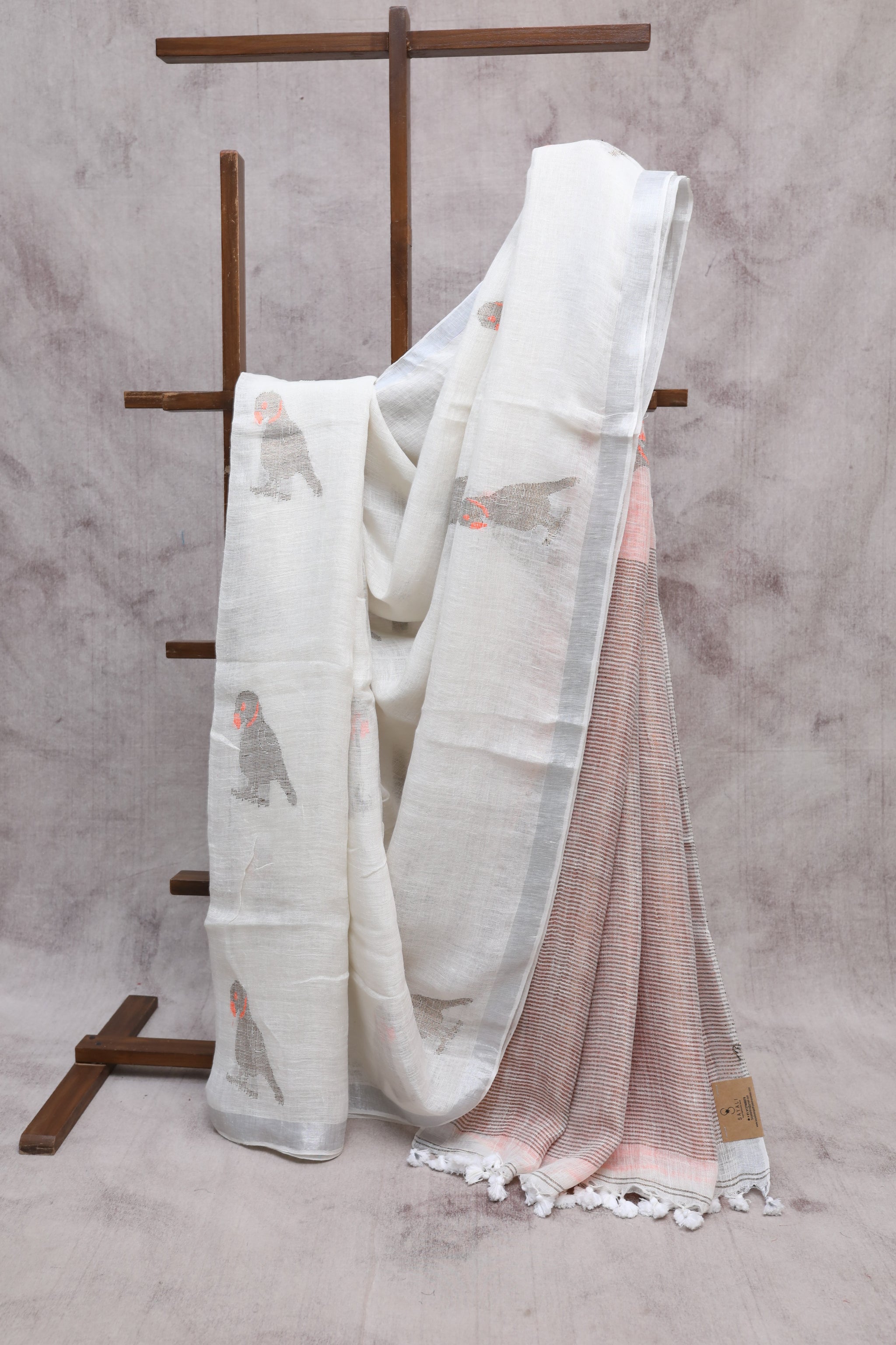 White Parrot Design Linen Jamdani Saree - SRWLJS212