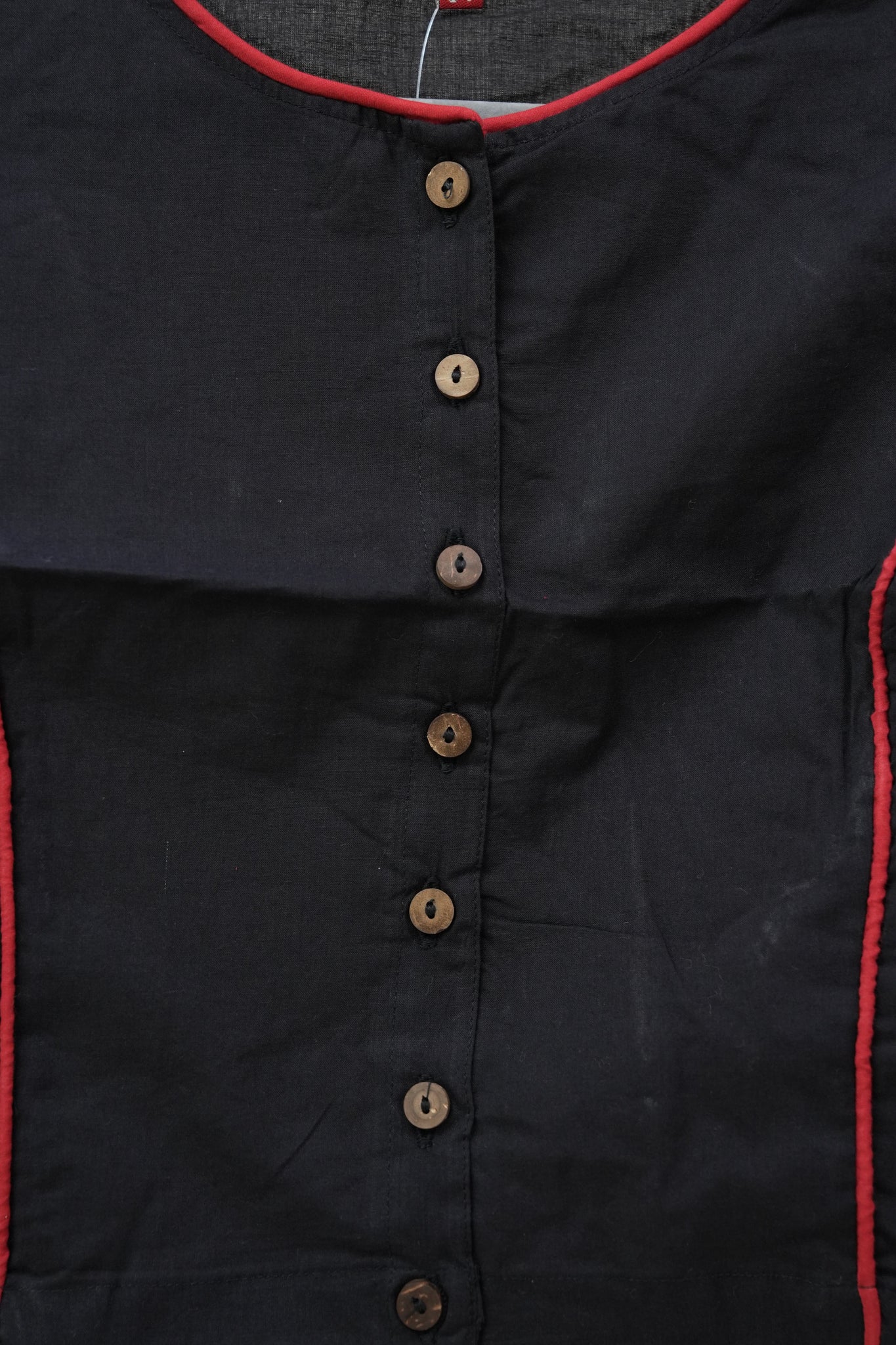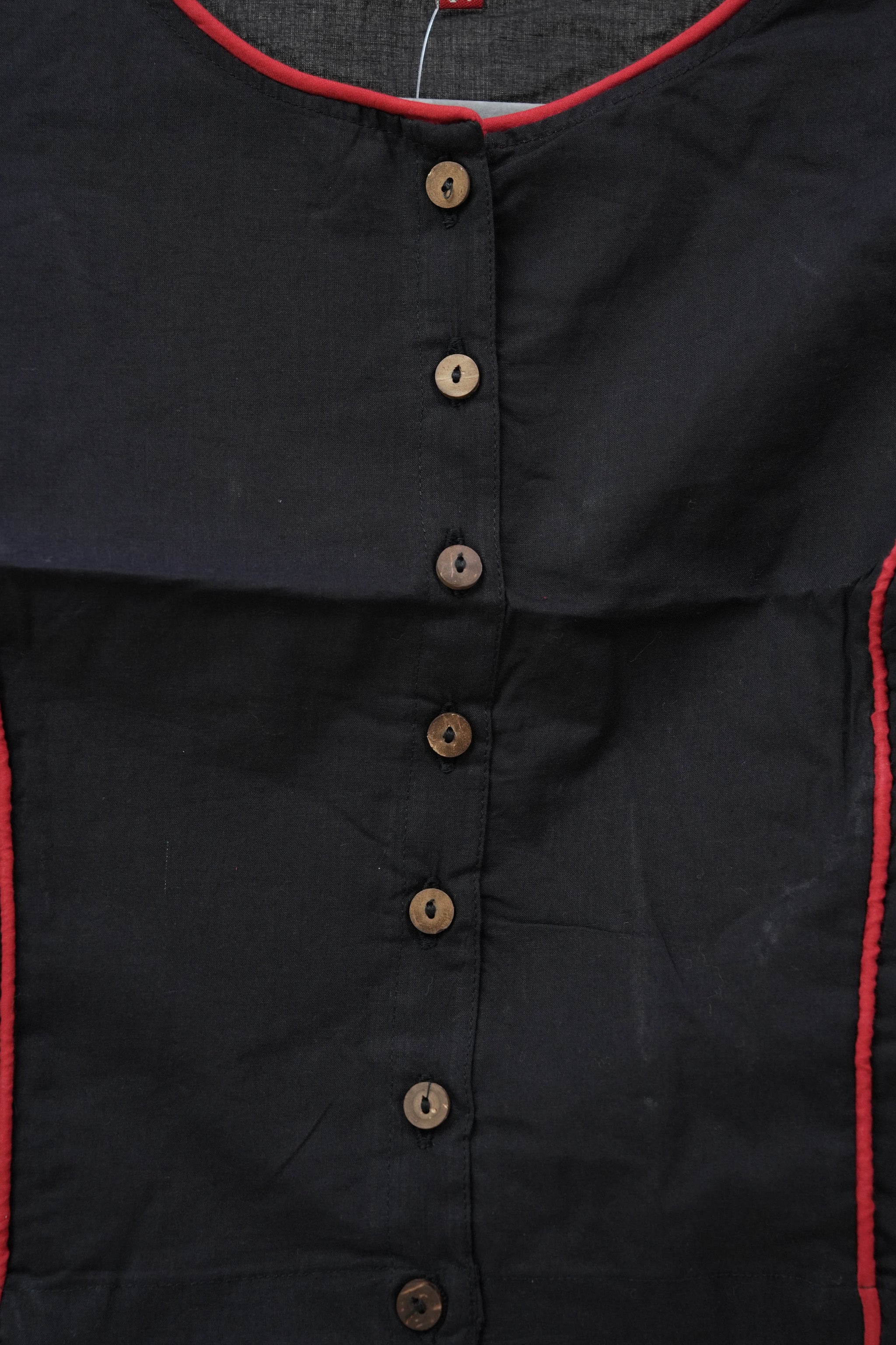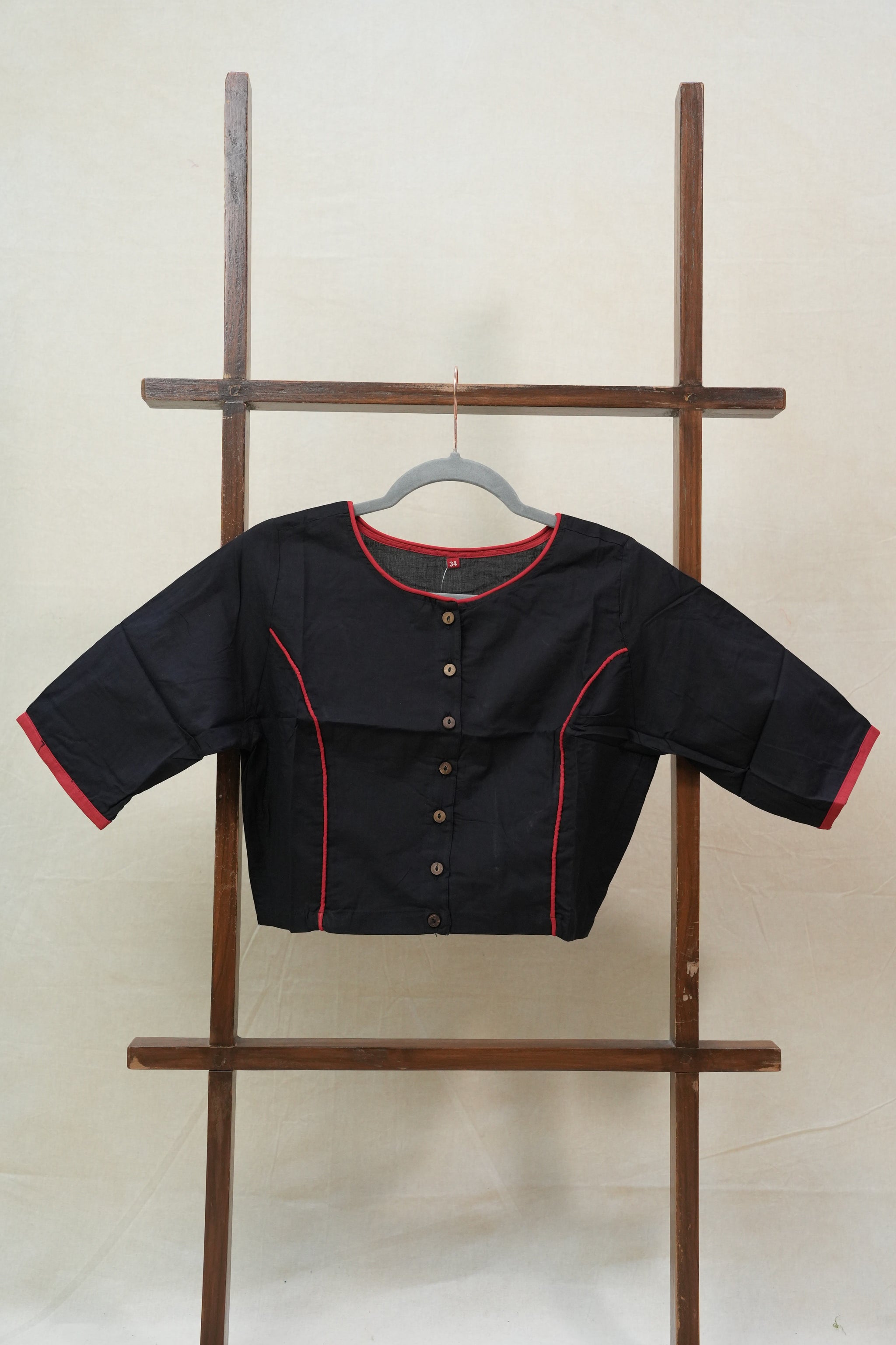 Black Boat Neck Plain Cotton Blouse With Red Piping - SRBBNCB35