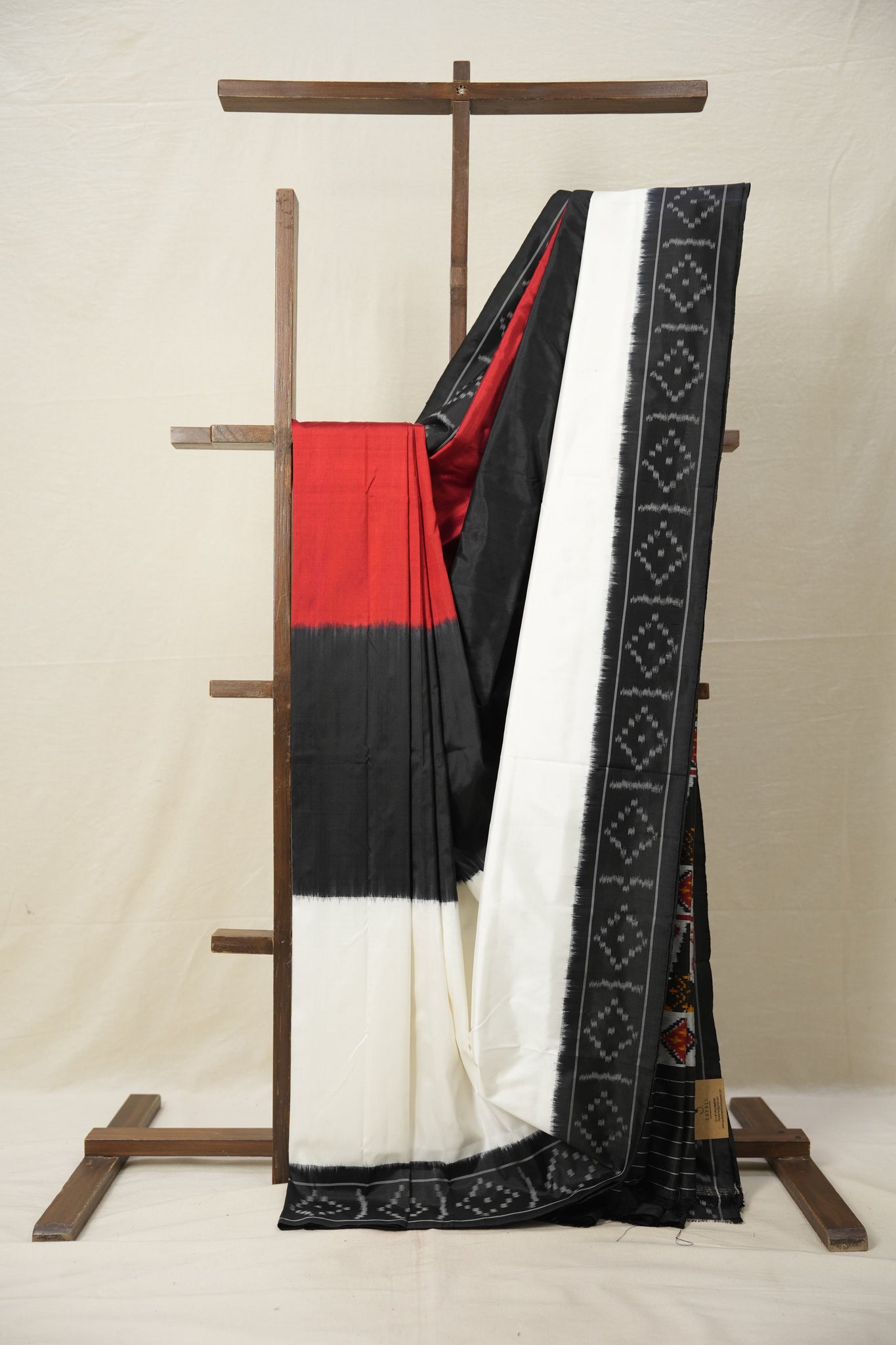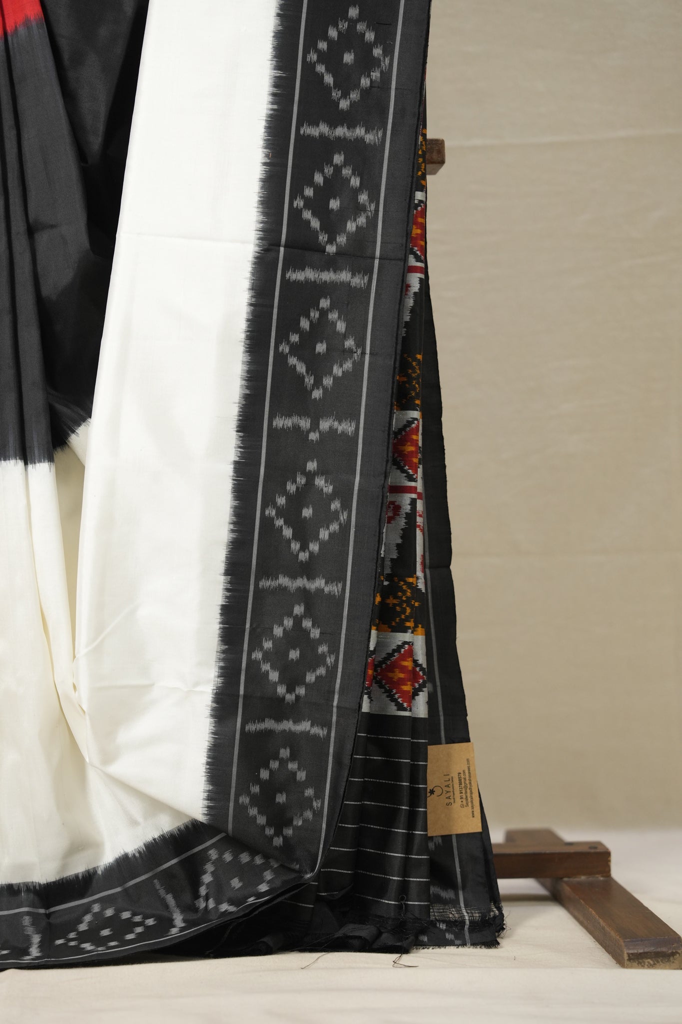 Black-White Pochampalli Silk Ikat Saree - SRBWPSIS252