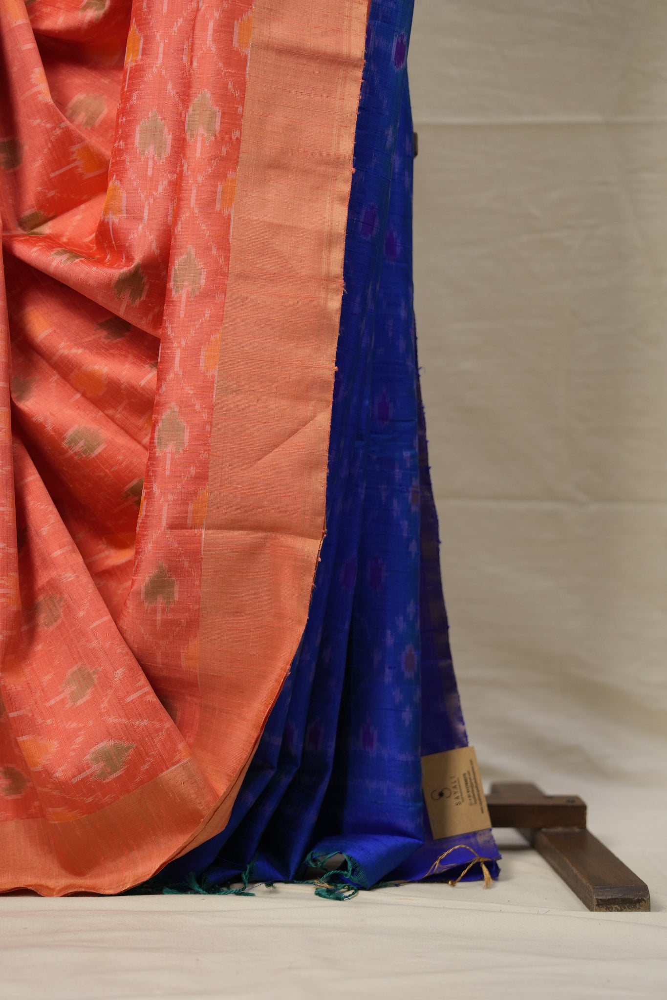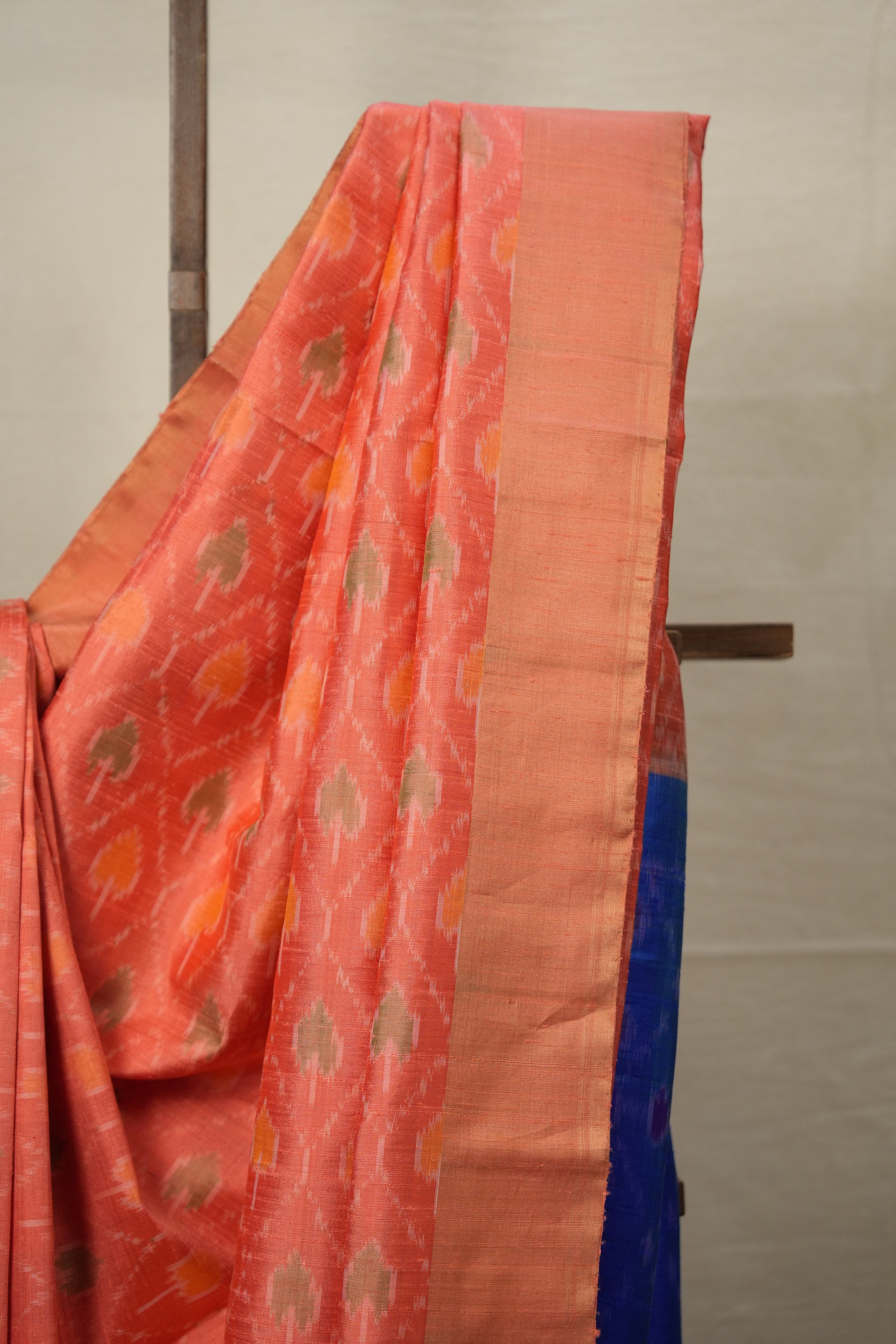 Blue Peach Raw Silk Ikat Saree - SRBPRSIS864