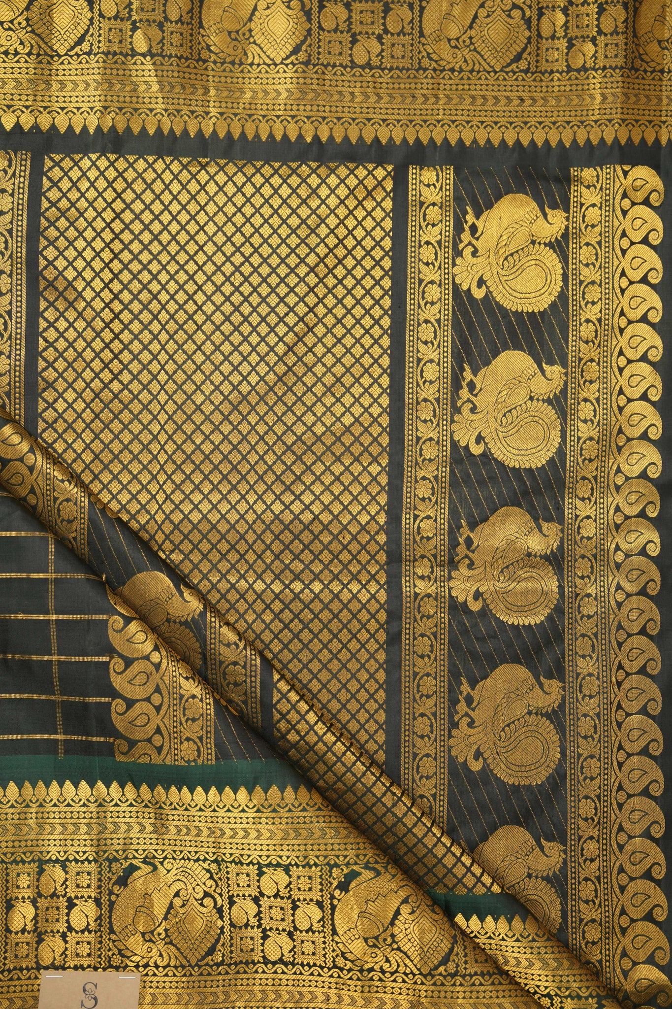 Grey-Green Gadwal Silk Saree - Saavari - SSGGGSS11
