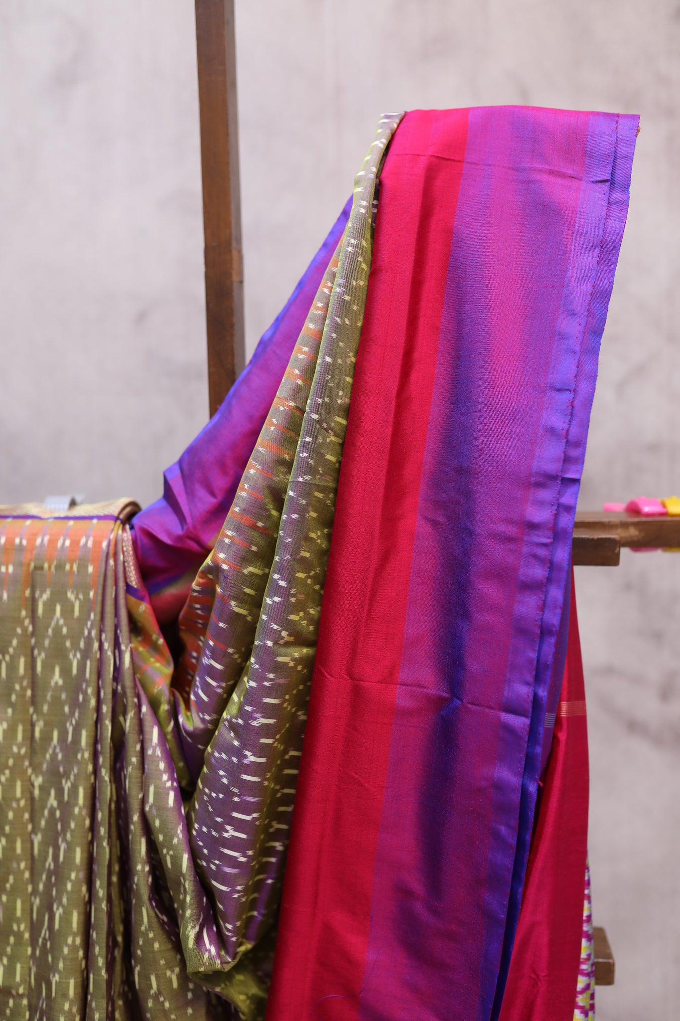 Two Tone Green Pochampalli Silk Ikat Saree-SRTTGPSIS92
