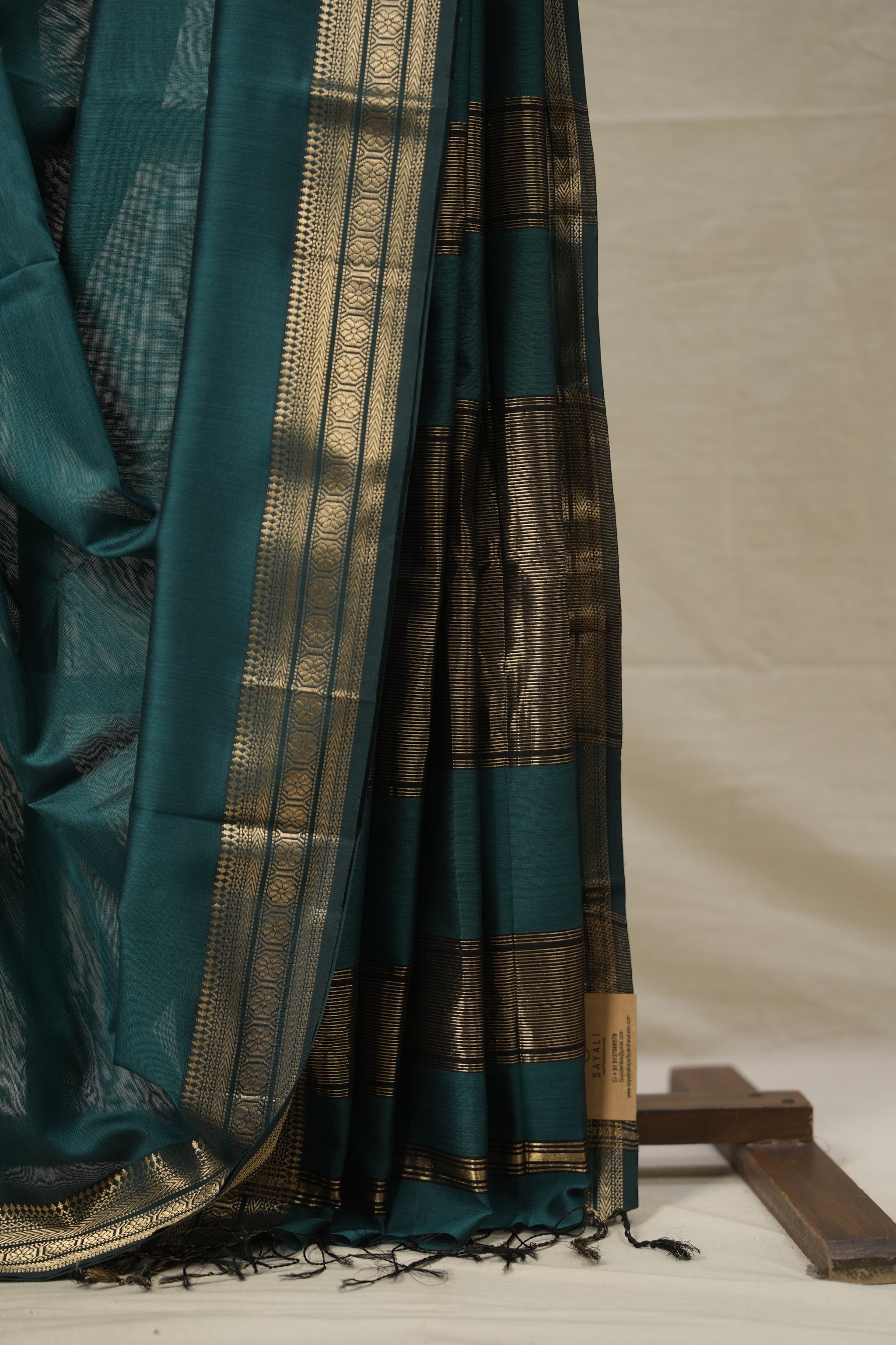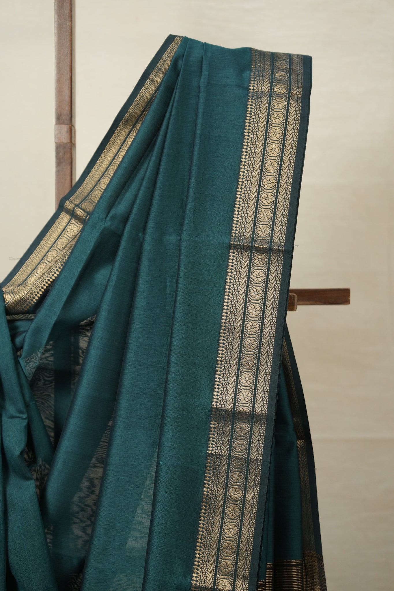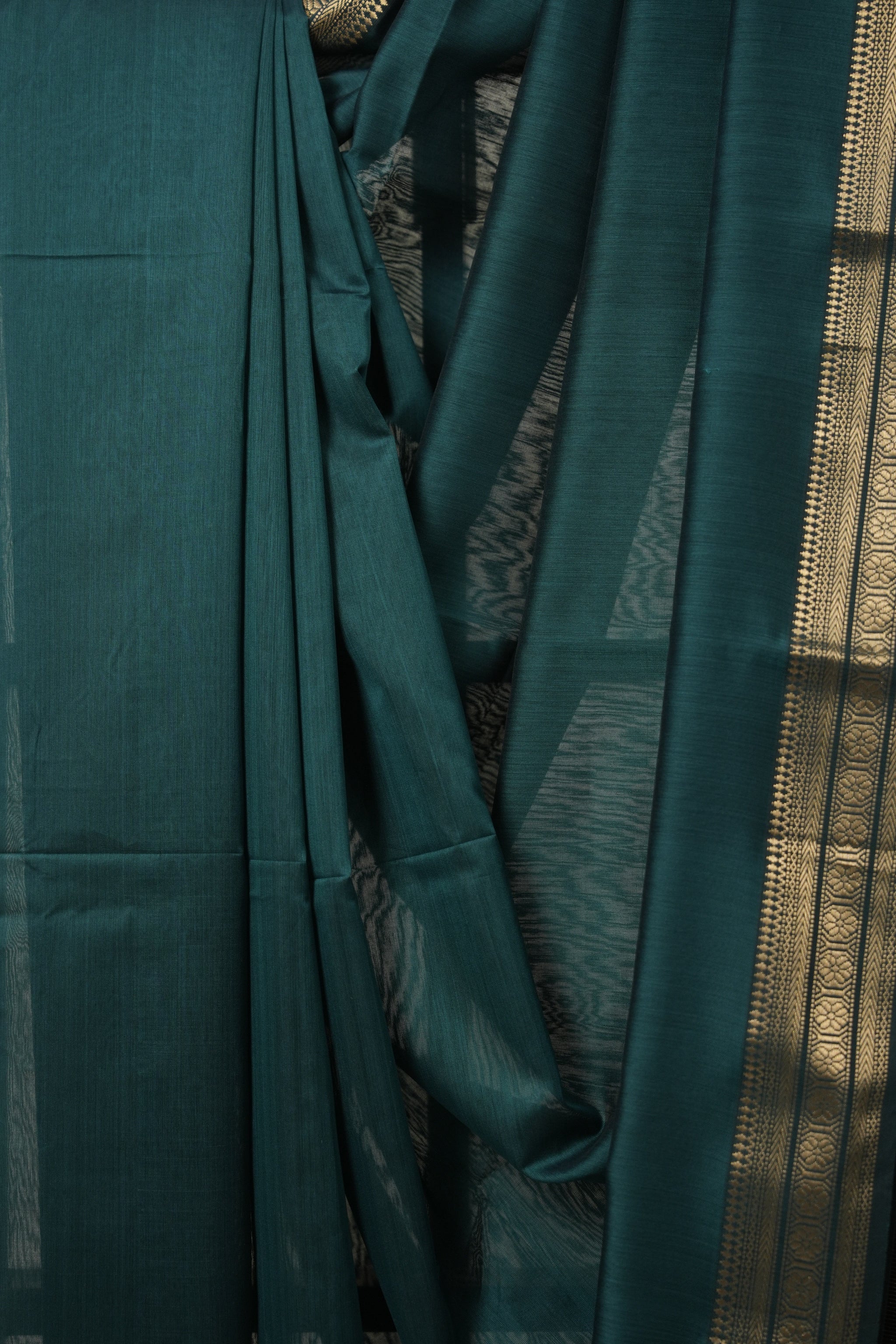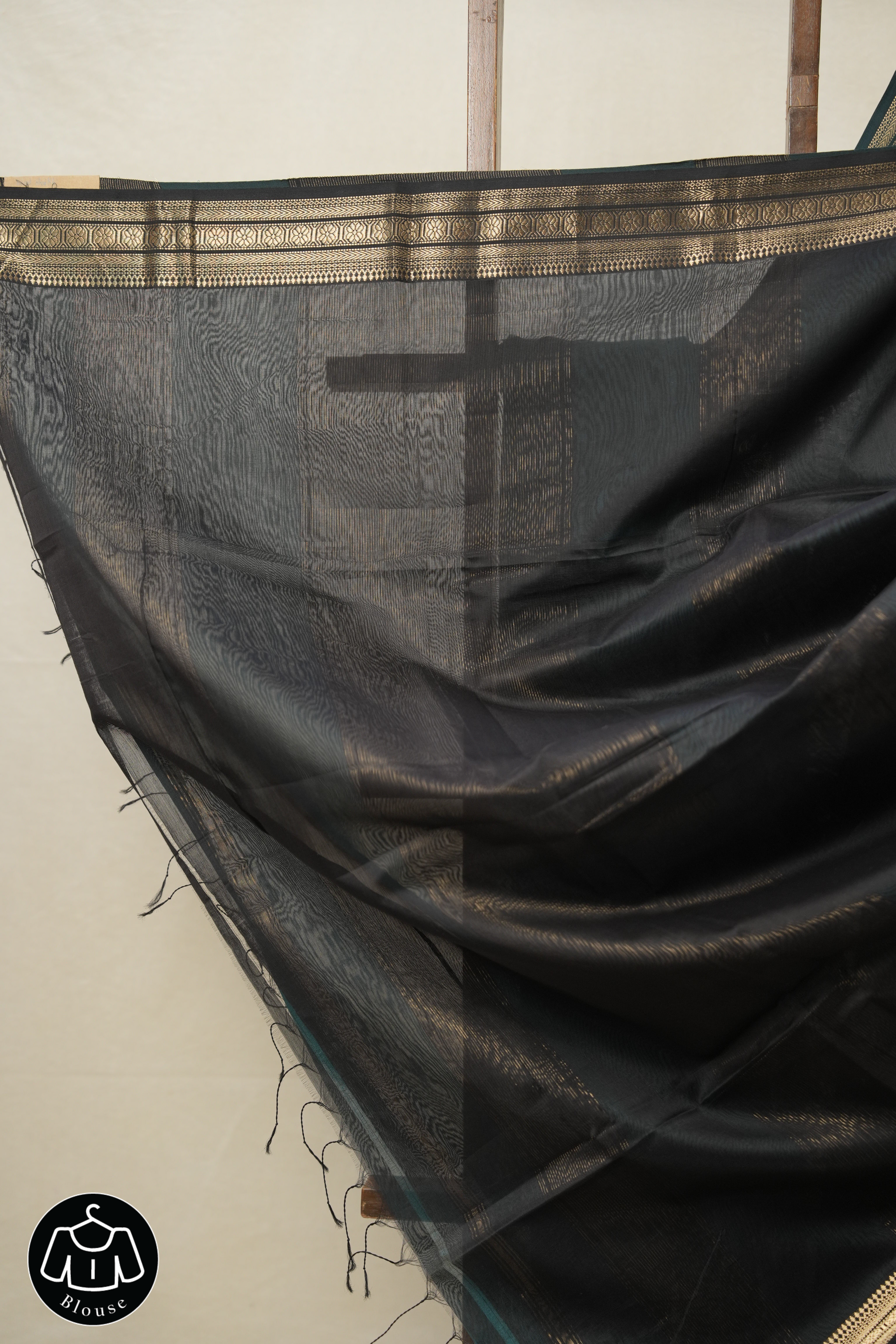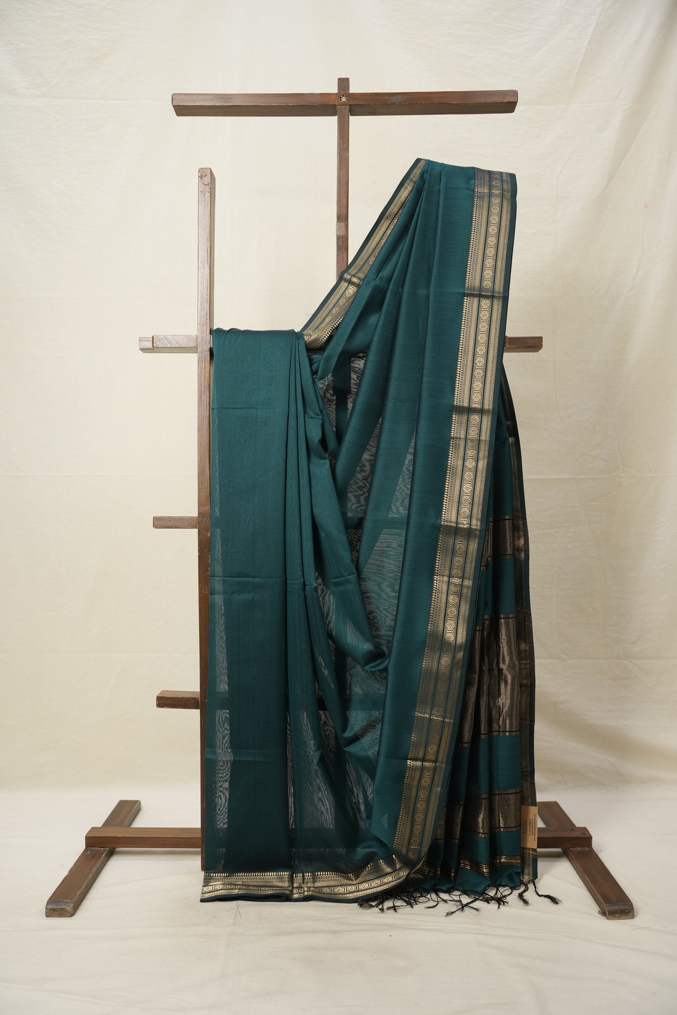 Work - This Maheshwari cotton silk saree features a plain body and zari border and pallu.