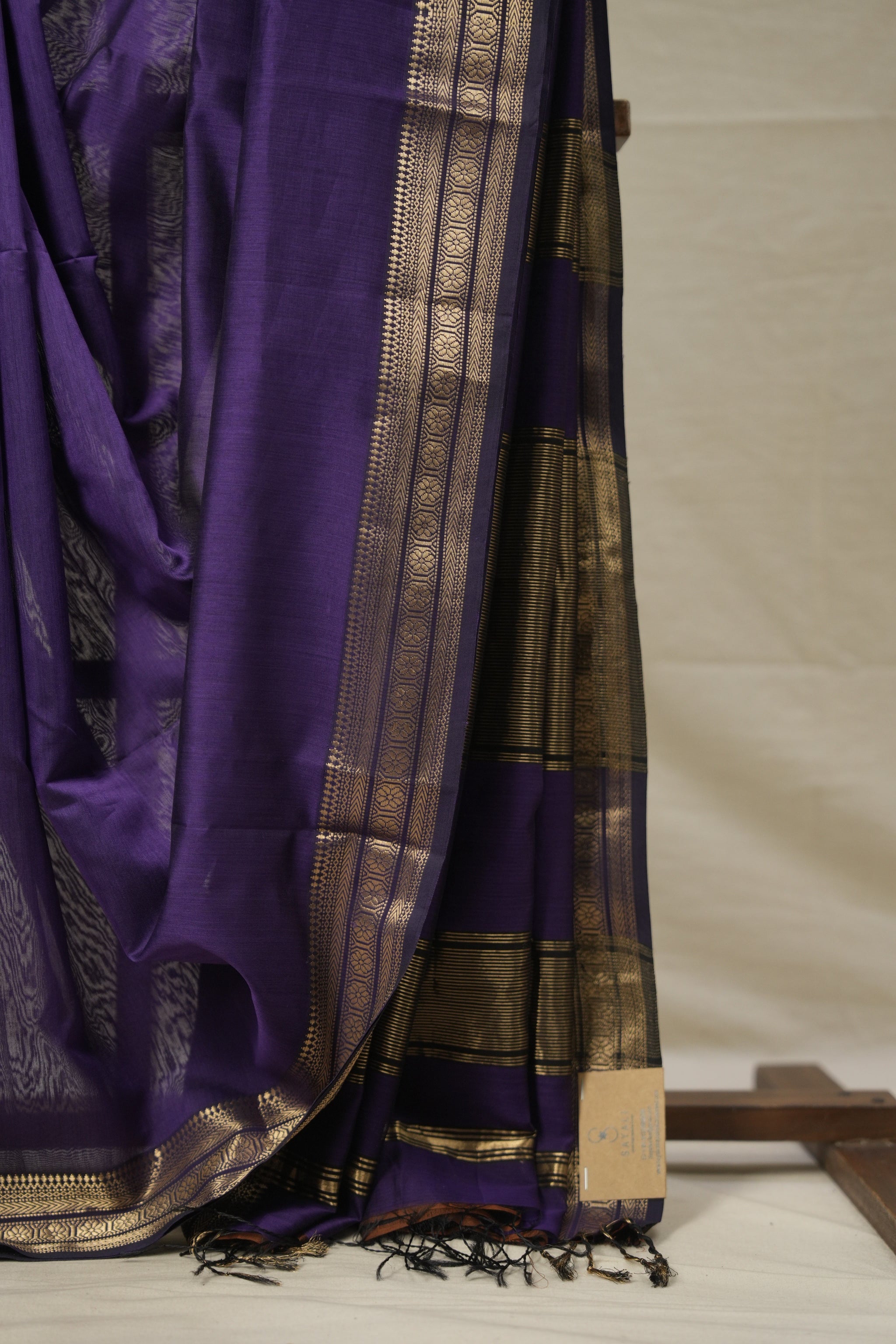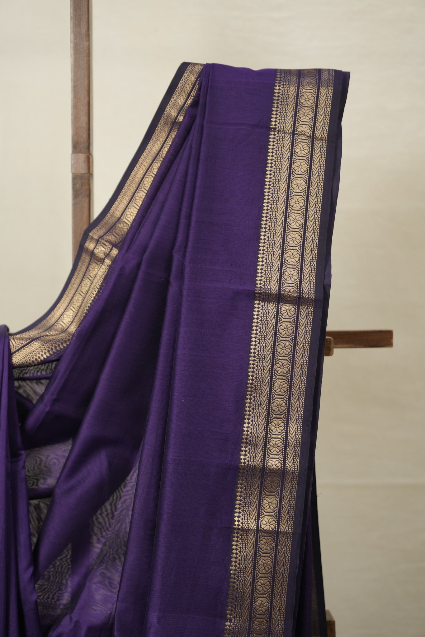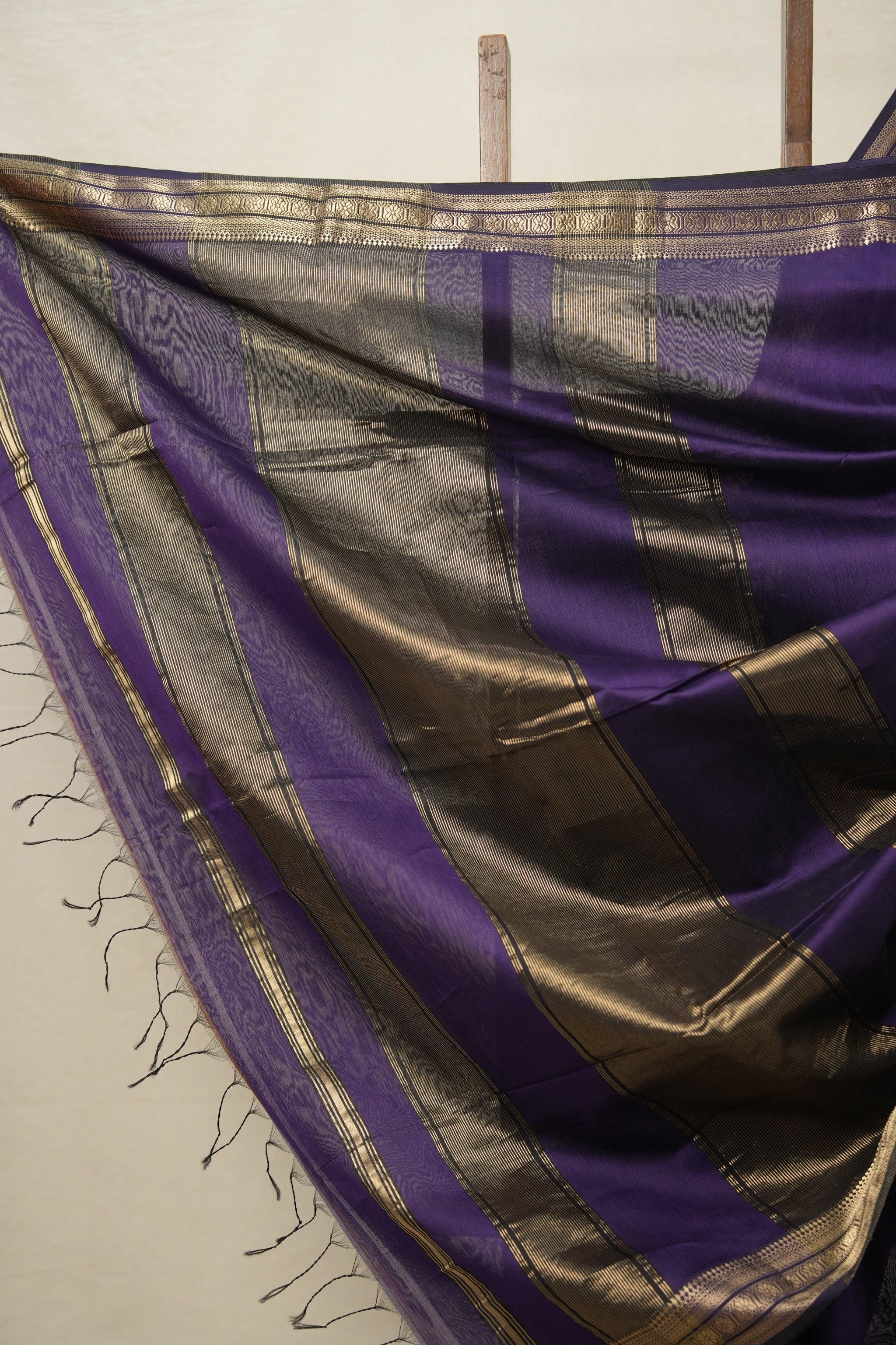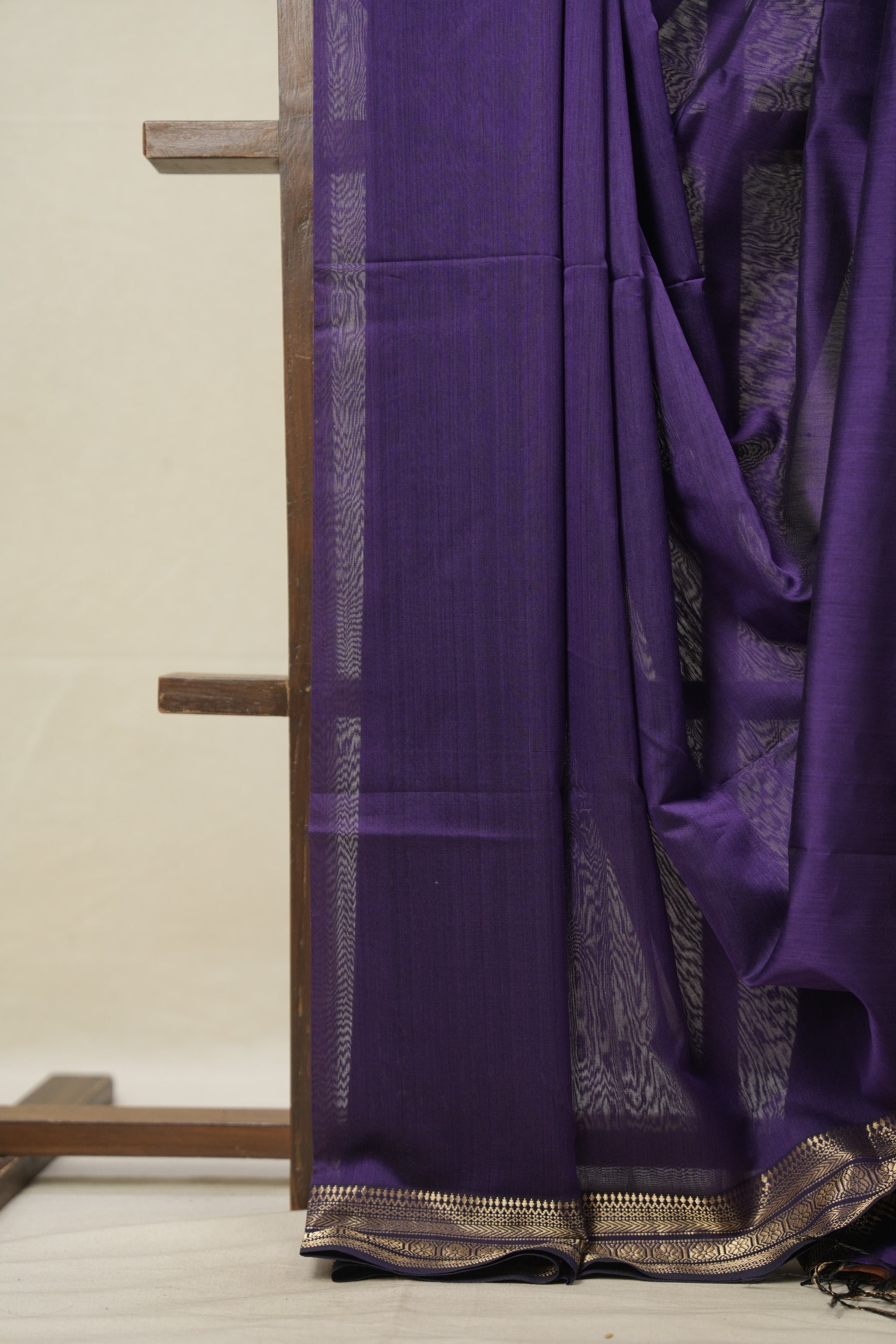 Work - This Maheshwari cotton silk saree features a plain body and gold zari border and pallu.