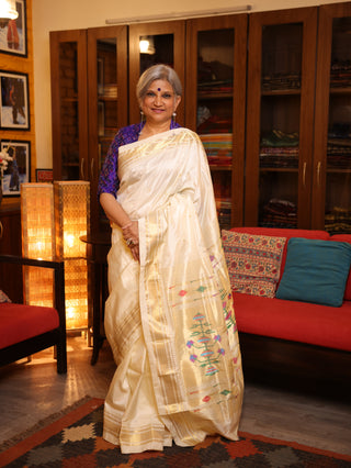 White can take many lovely forms, from delicate Muslin Jamdanis and classic Banarasis to rich Kanjeevarams with gold zari Every weave tells a different tale some are grand and joyous, while others are gentle and peaceful White sarees go well with any mood or occasion, whether they are paired with striking borders or kept simple.