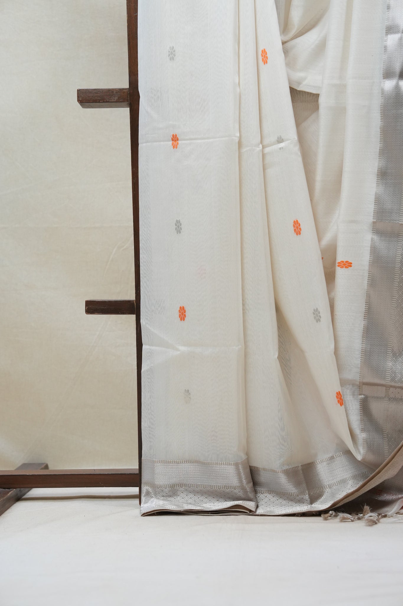 Work - Maheshwari cotton silk saree with butti all over body and rich woven zari border.