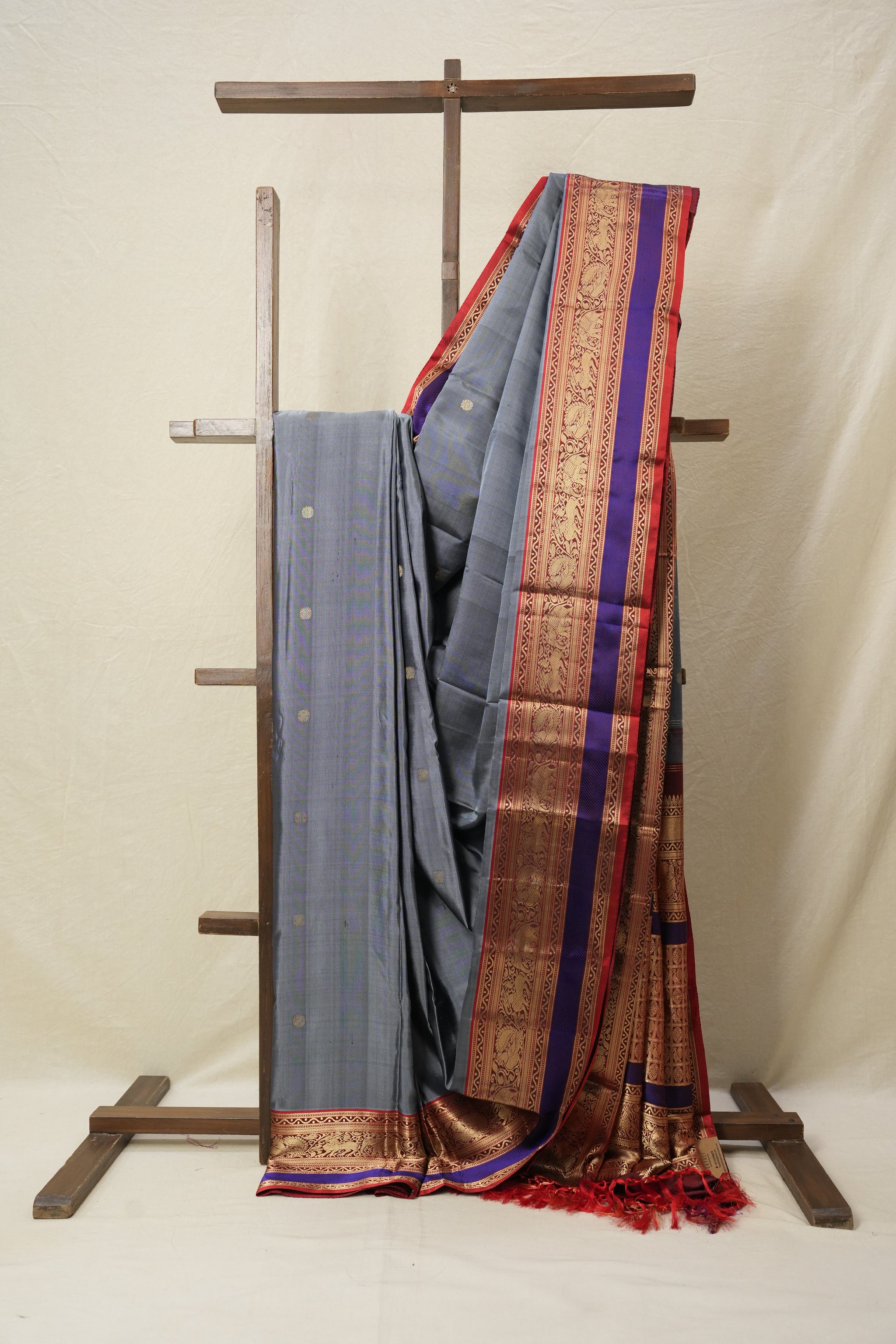 Dark Grey Kanjeevaram Silk Saree-SRDGKSS300