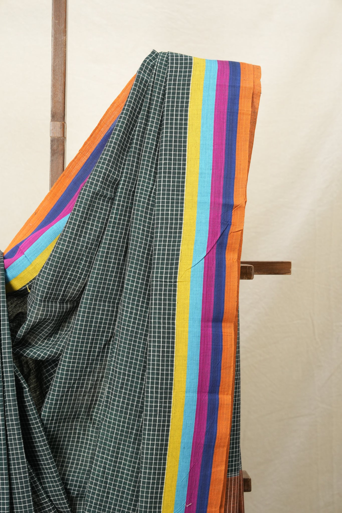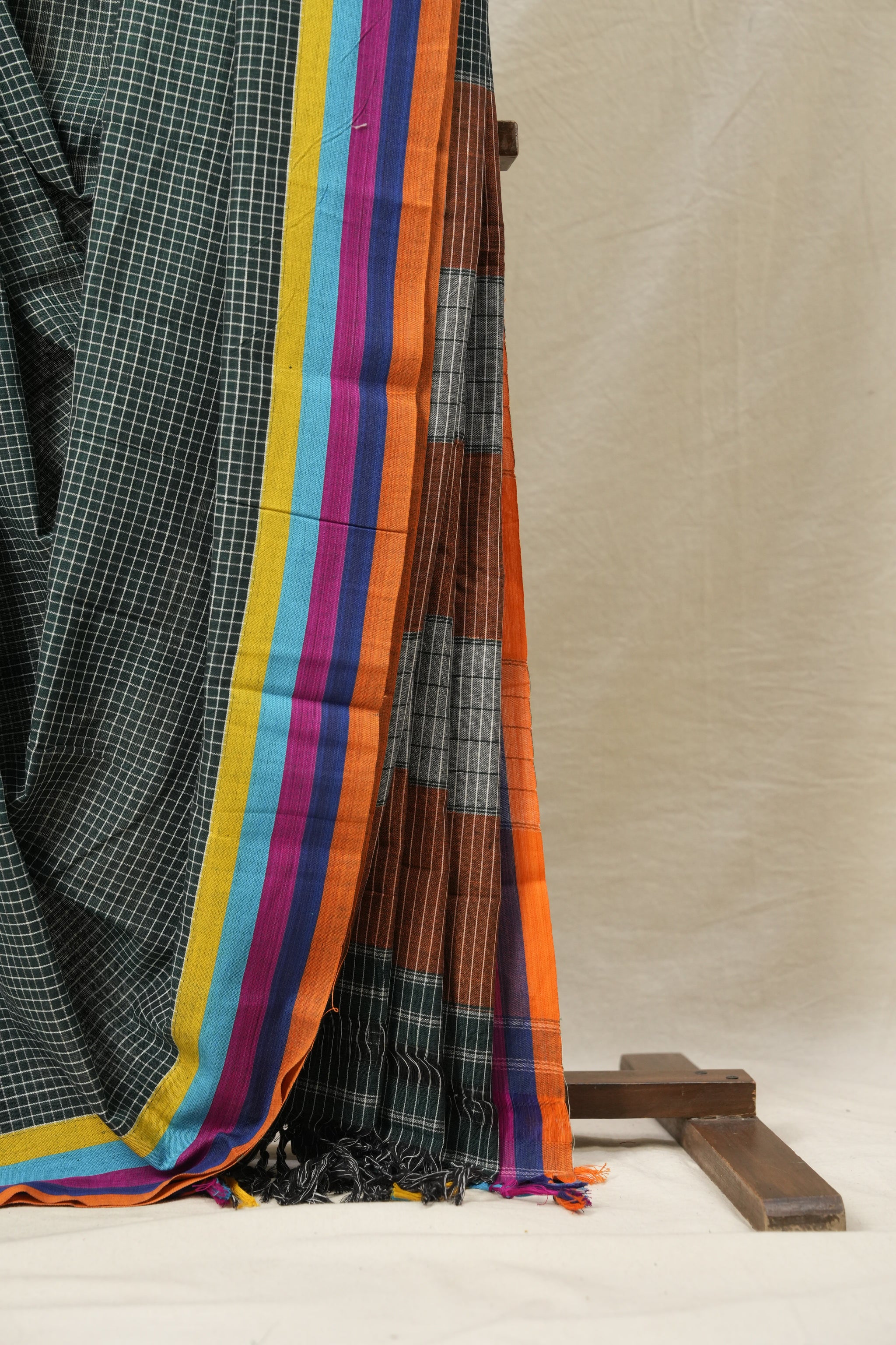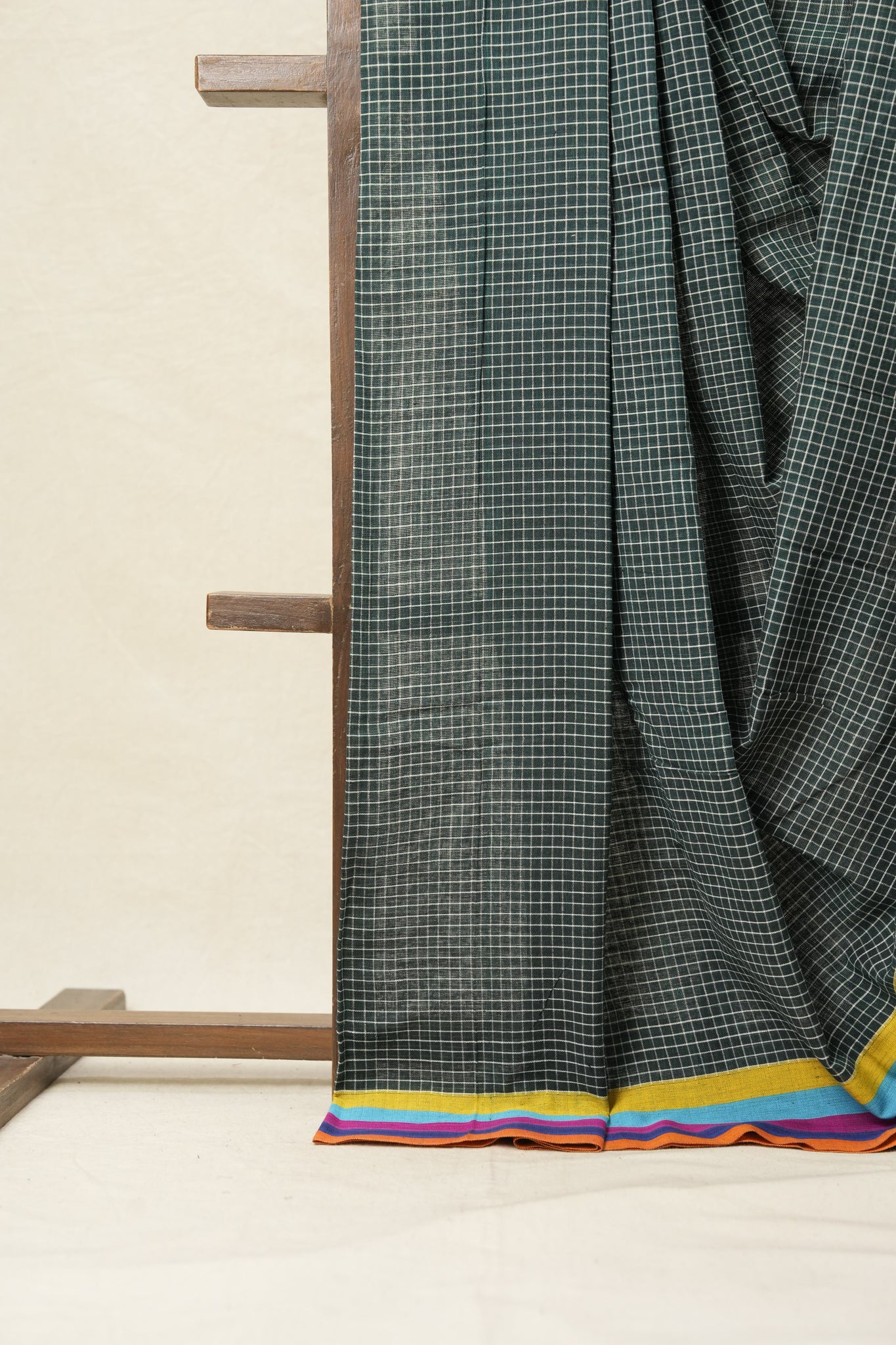 Green Big Checks Cotton Patteda Anchu Saree-SRGCPAS148