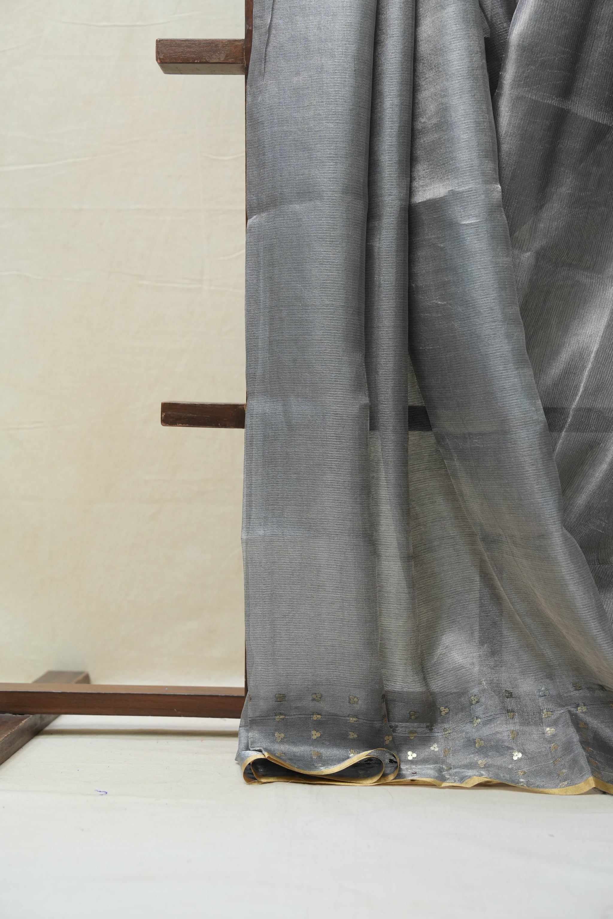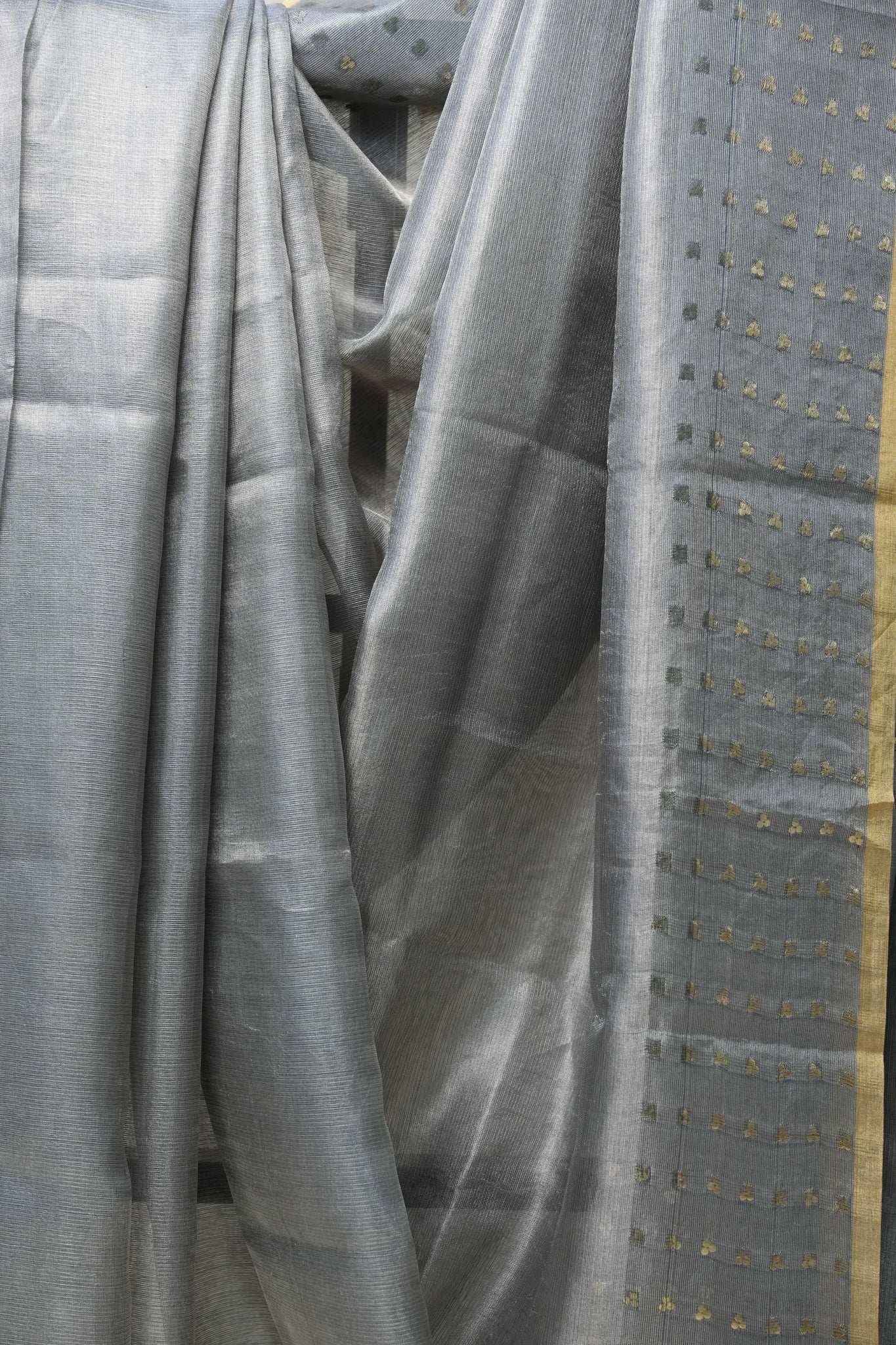 Grey Tissue Tussar Silk Saree - SRGTTSS398