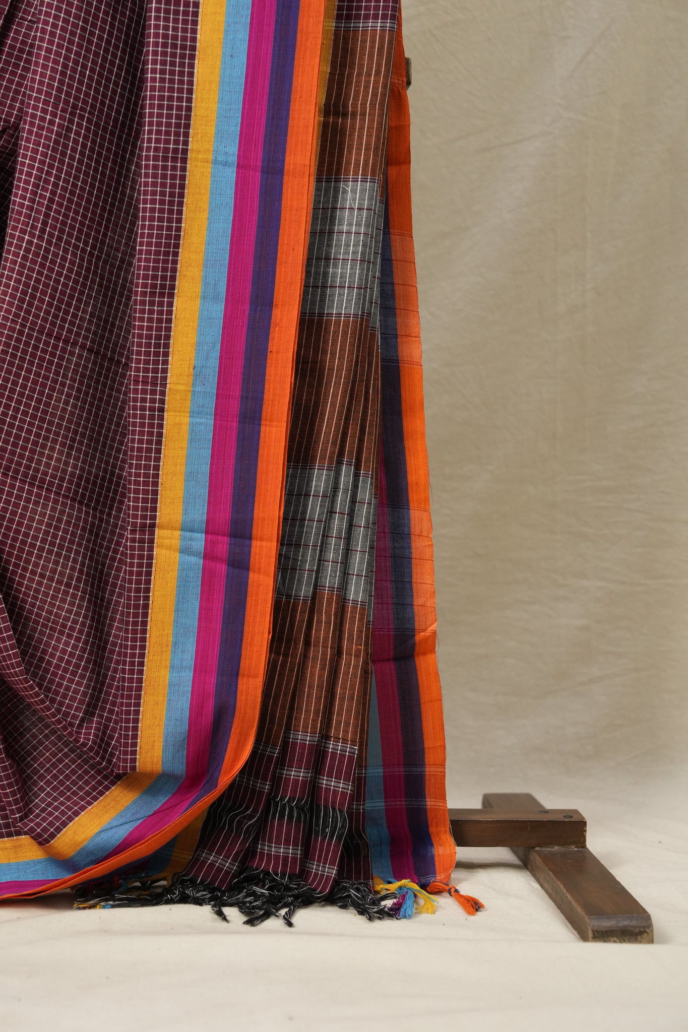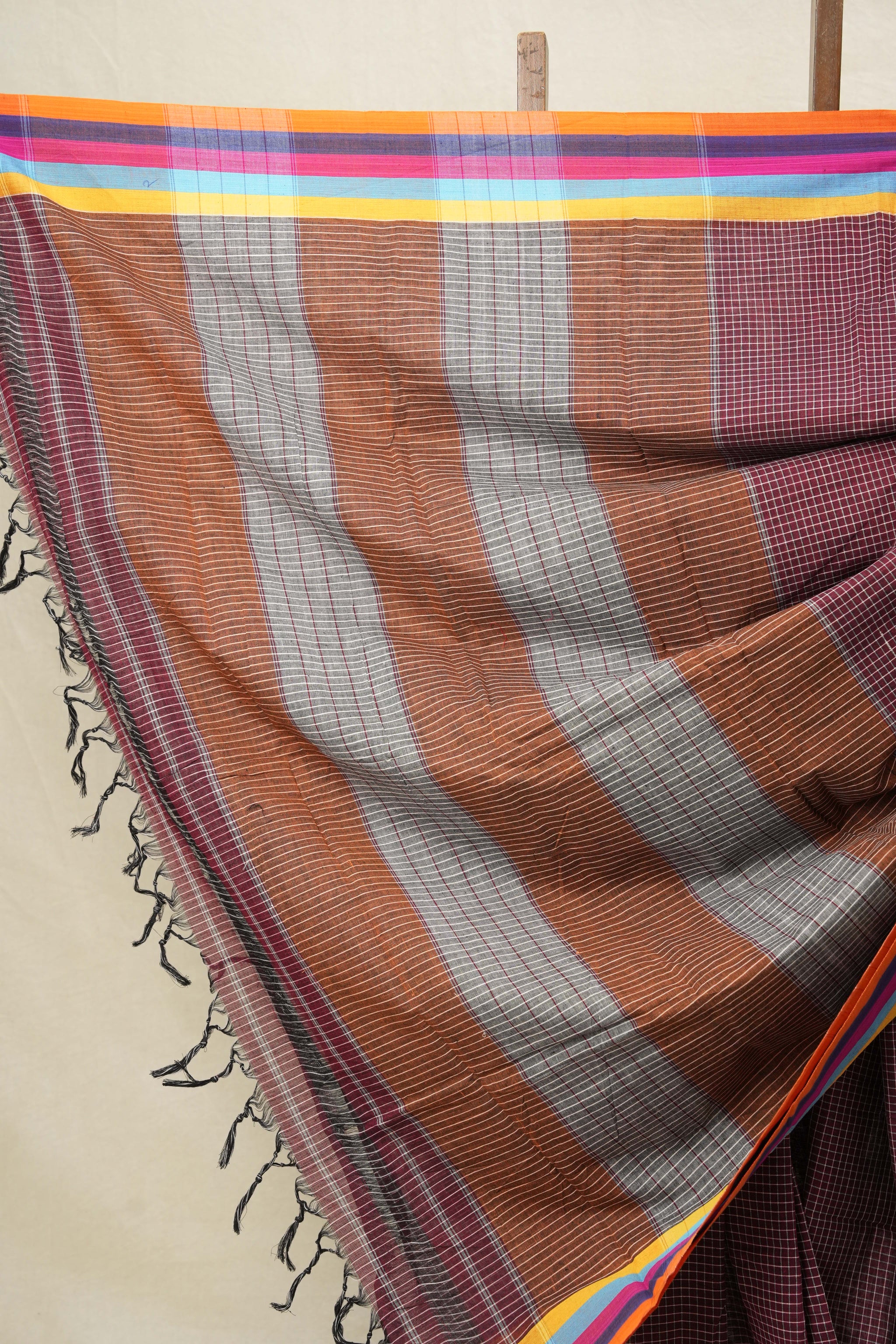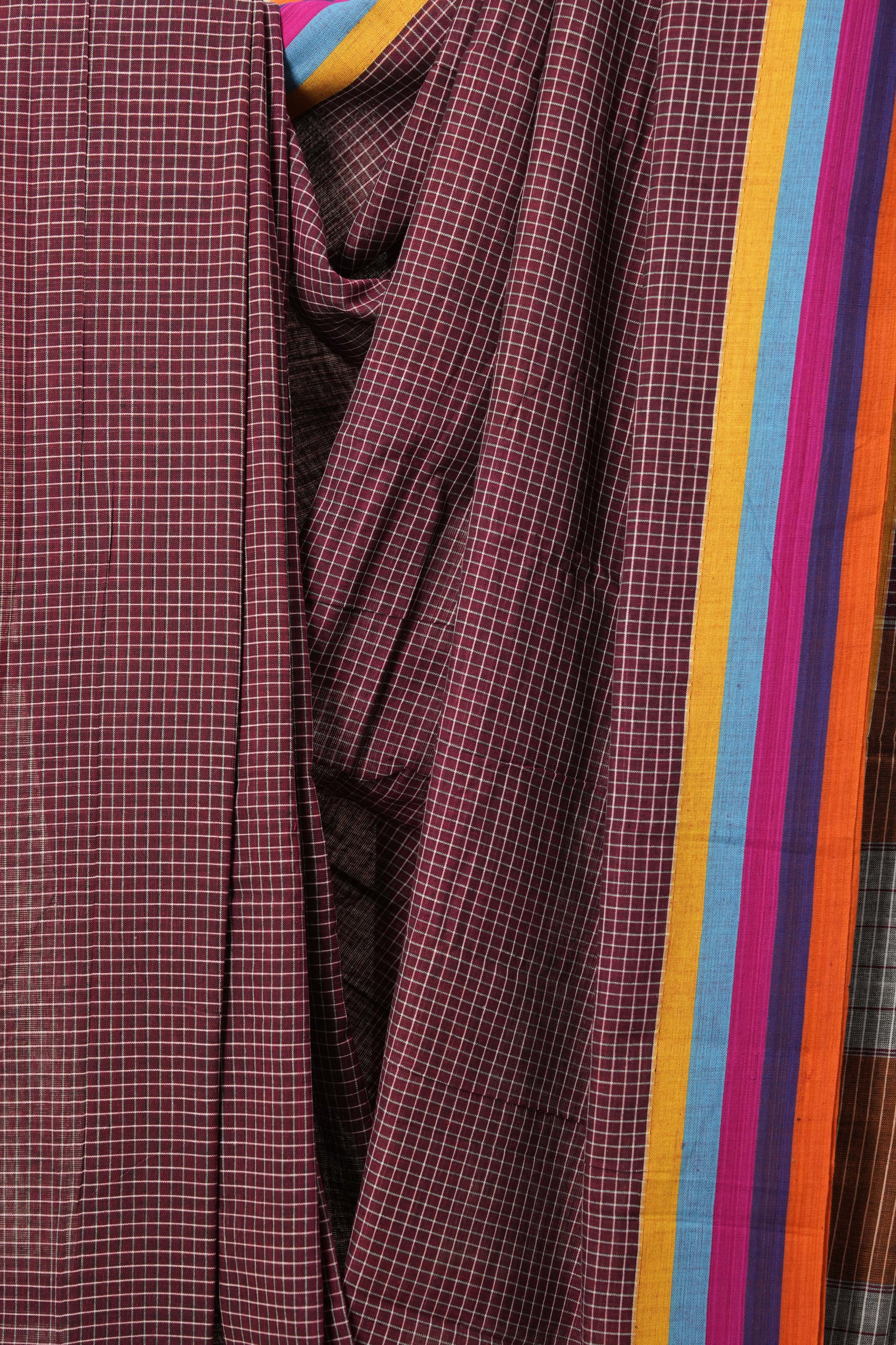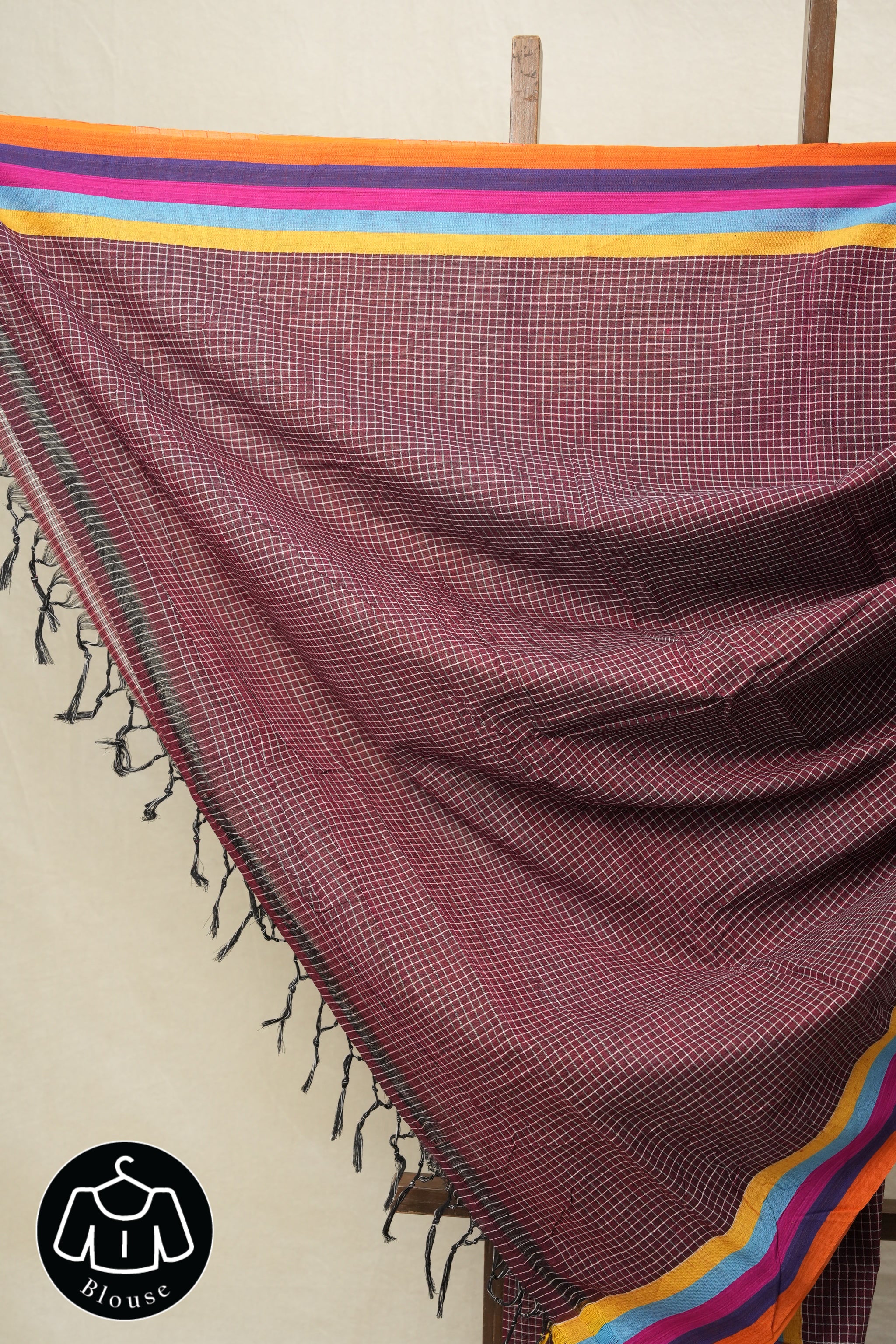Maroon Big Checks Cotton Patteda Anchu Saree-SRMPAS53