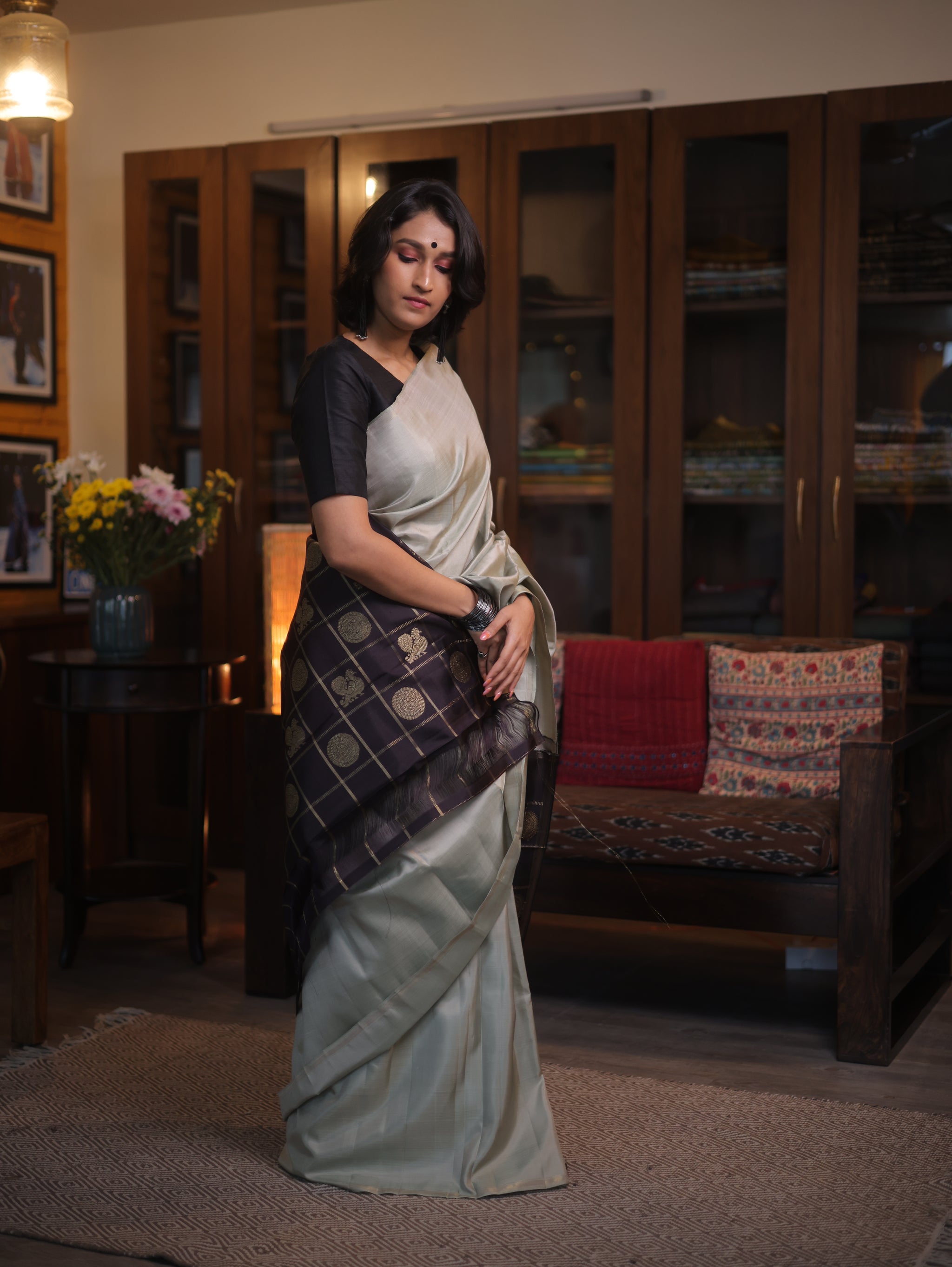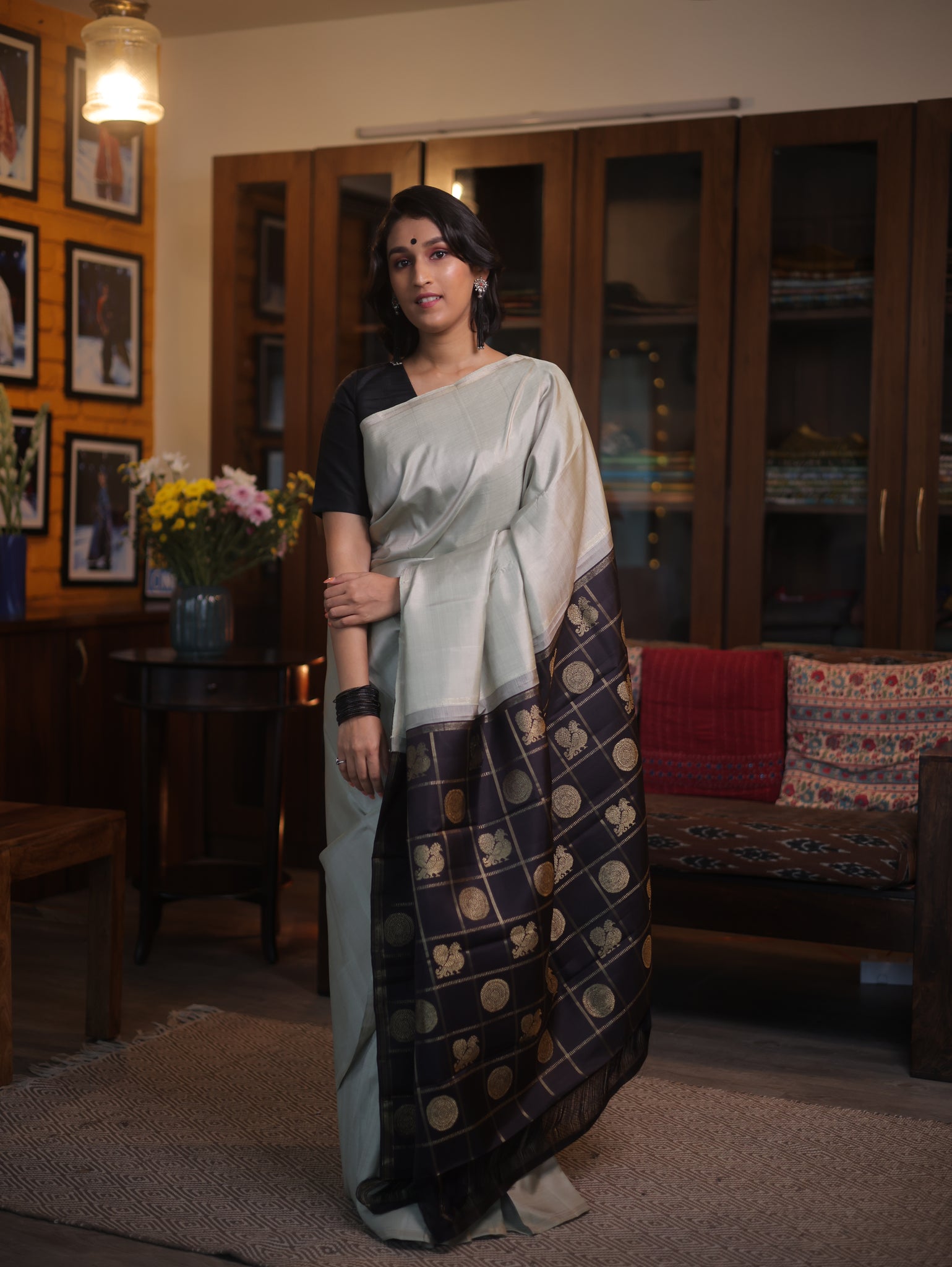 Saree Color - Soft Mint Body with Black Contrast Pallu