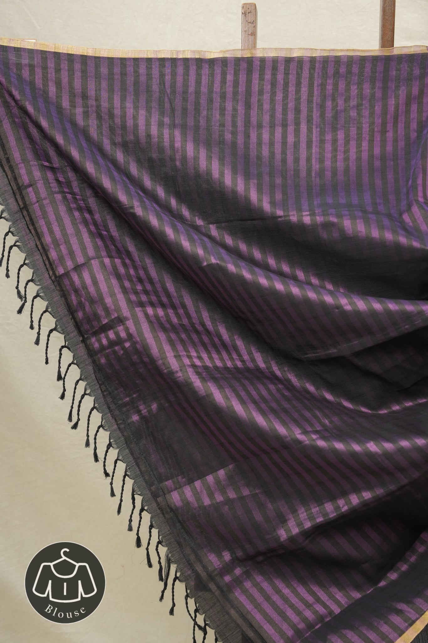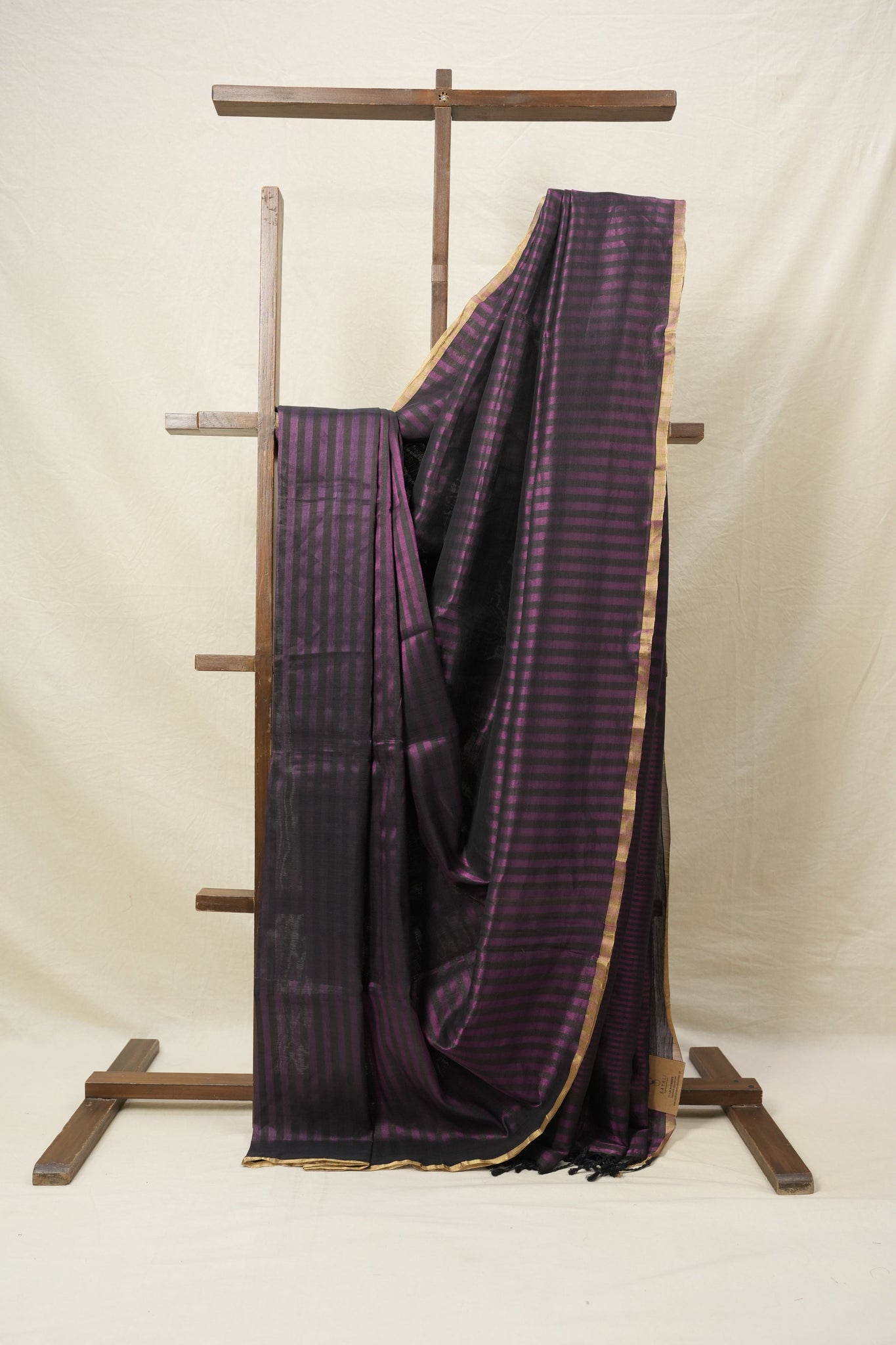 Work - Maheshwari tissue saree in a purple color, featuring a subtle sheen across the body and finished with an elegant gold border.