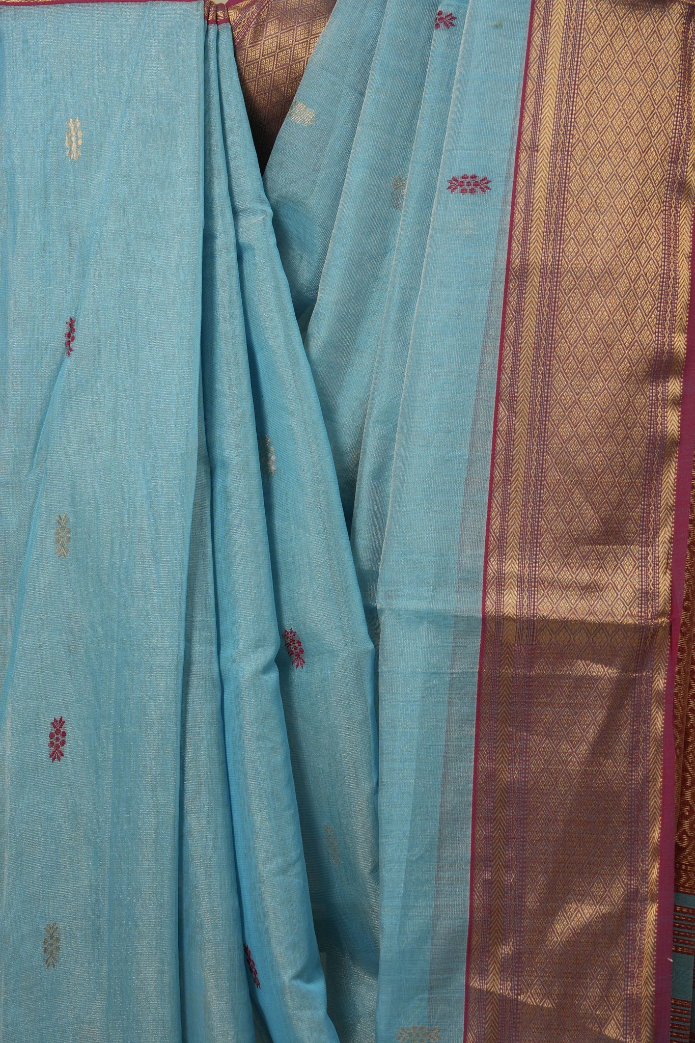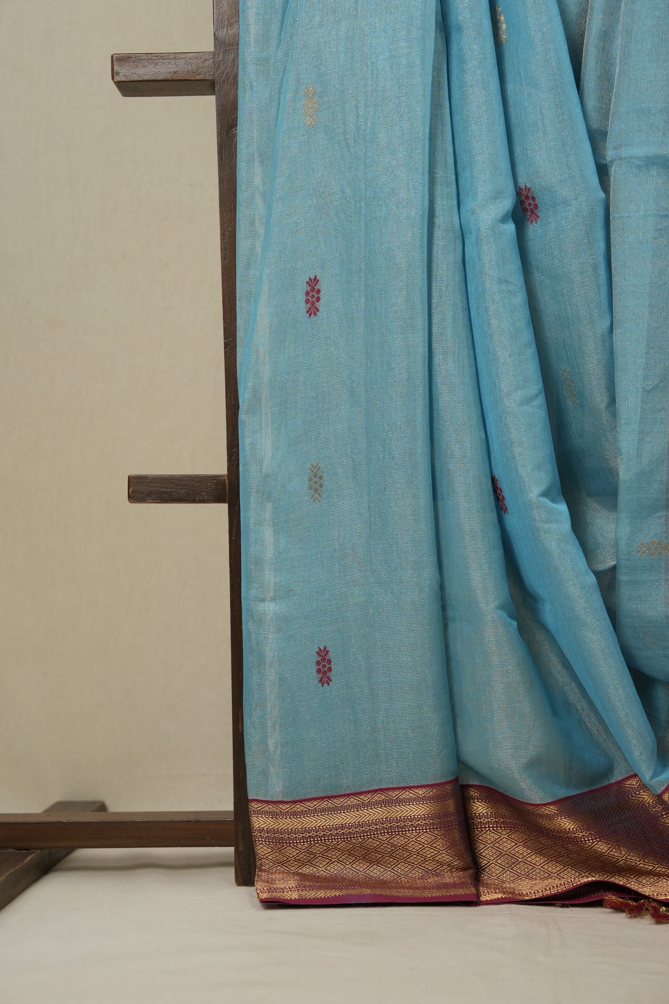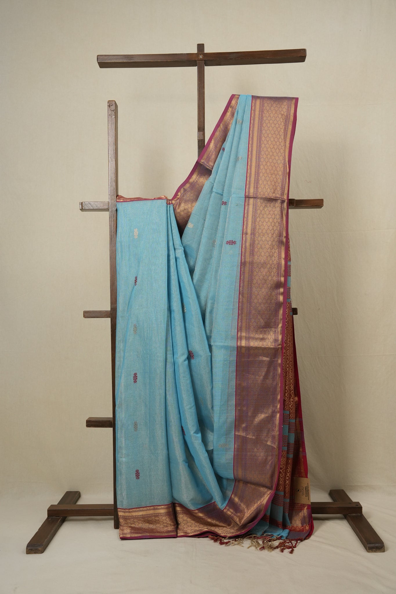 Sky Blue Maheshwari Tissue Saree - SRSBMTS201
