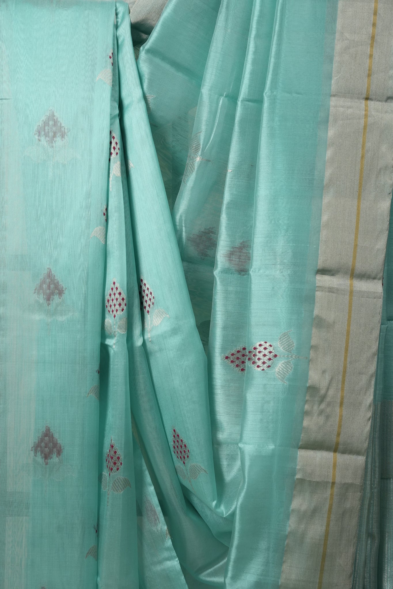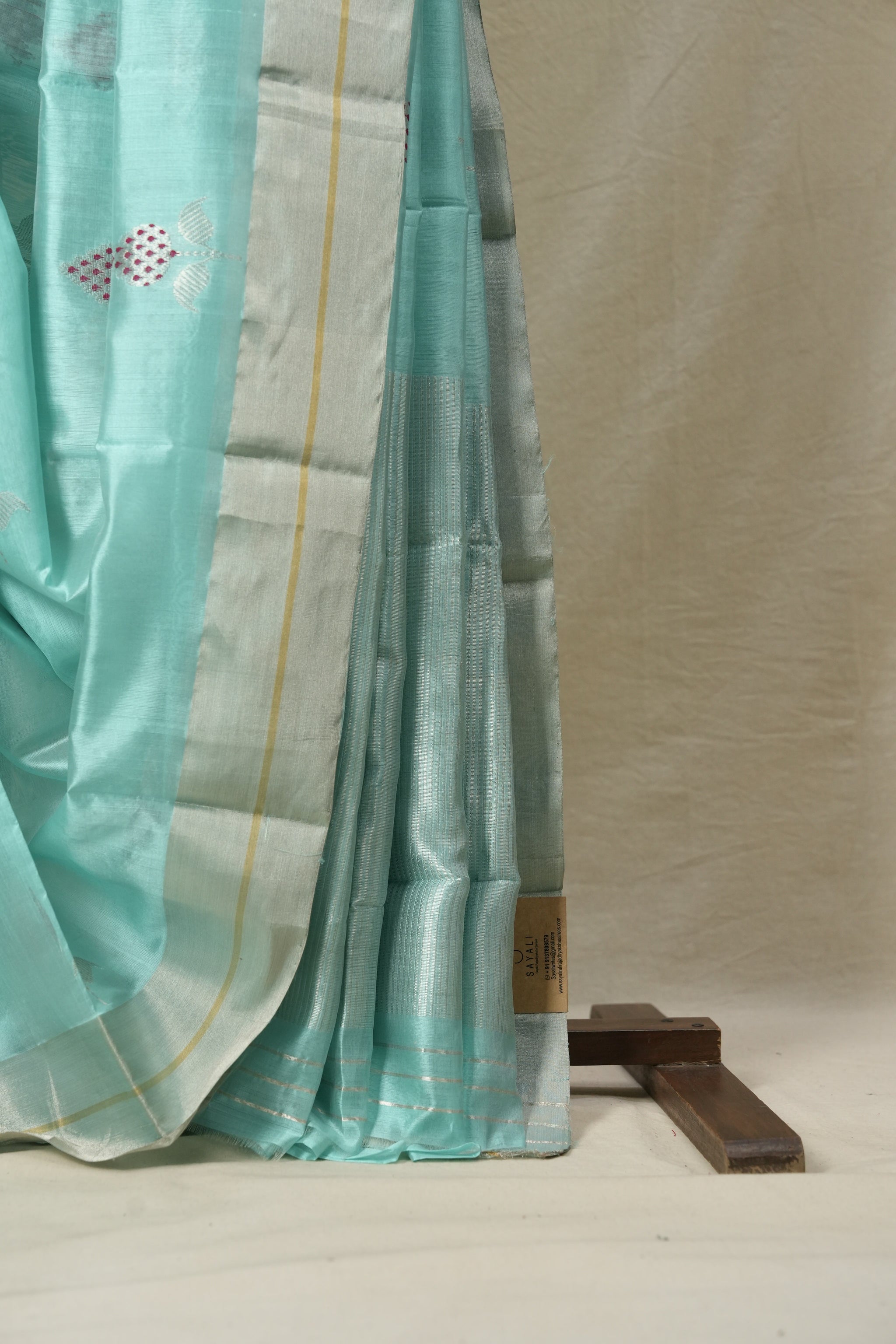 Turquoise Chanderi Silk Saree - SRTBCSS136