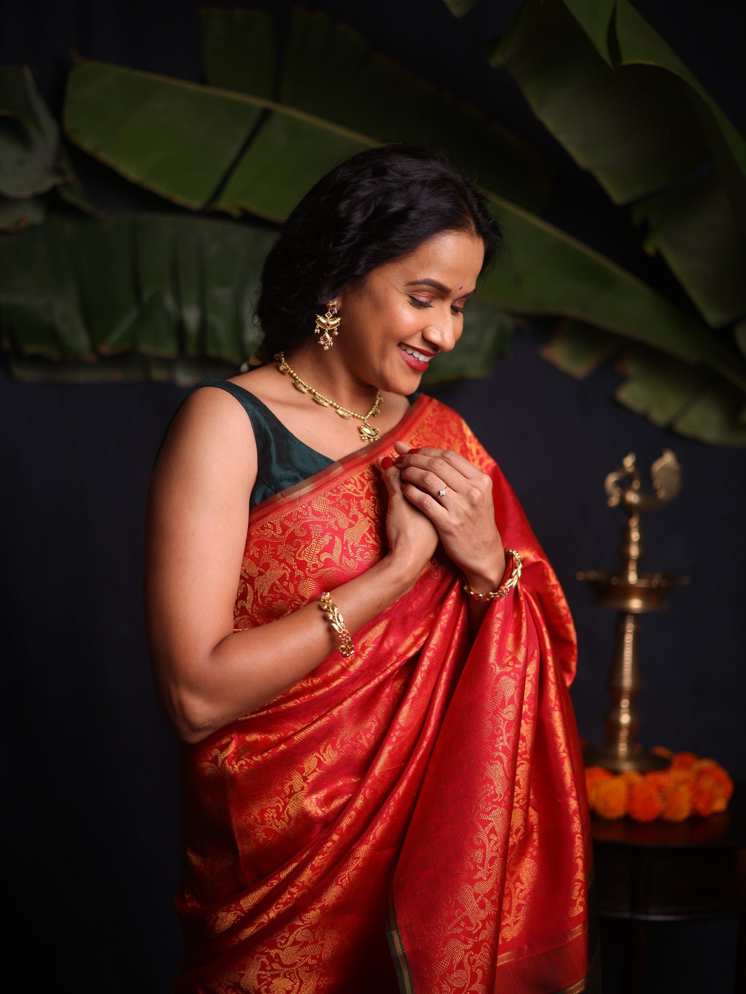 Saree Color - Vermillion Red with Zari Woven Buttis