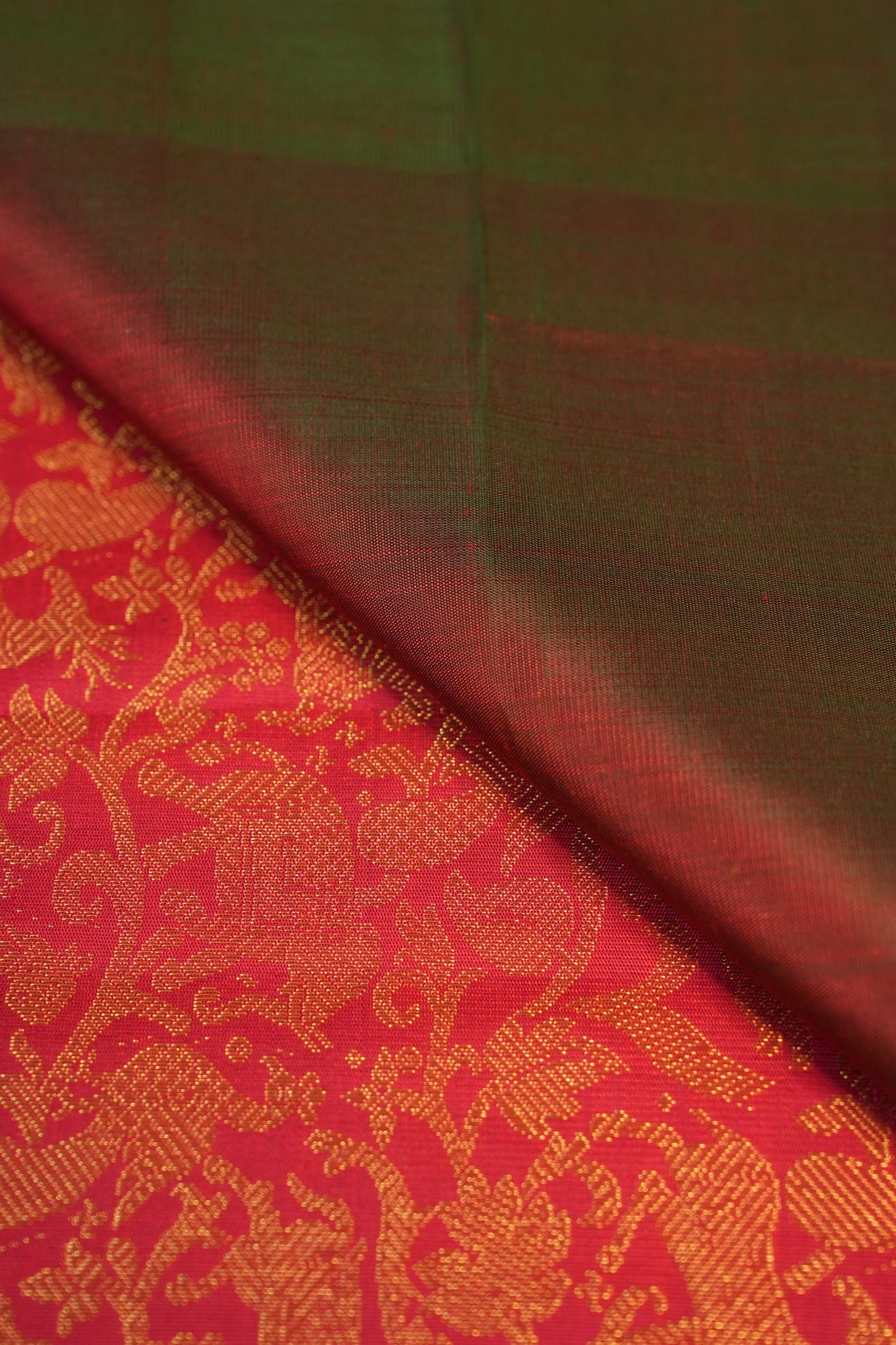 Pallu - Rich green zari pallu adorned with Iruthalai Pakshi (two-headed peacock) motifs in floral medallions
