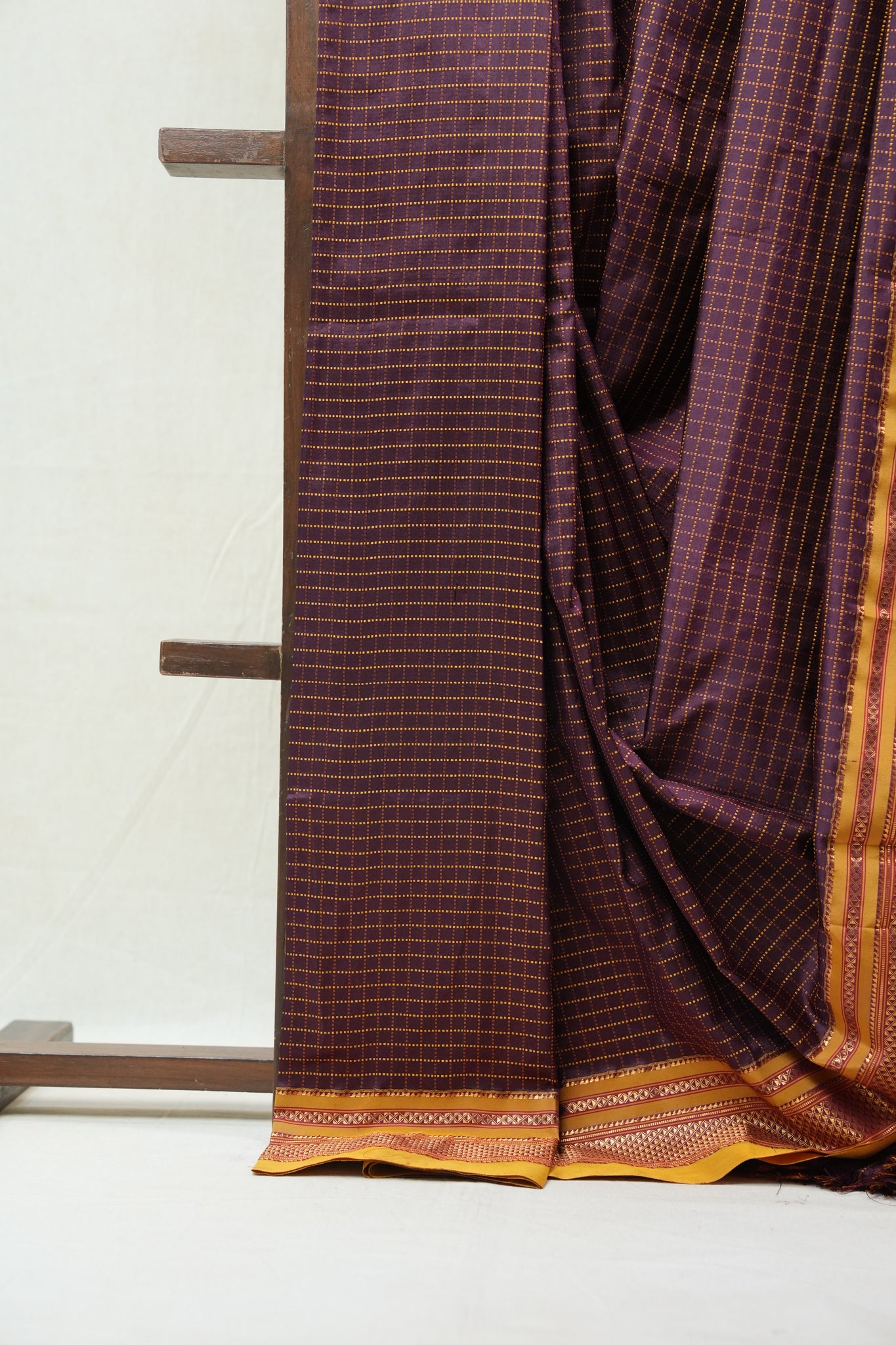 Work - Wine Ilkal silk saree with fine checks body and a contrasting pallu with rich zari border.