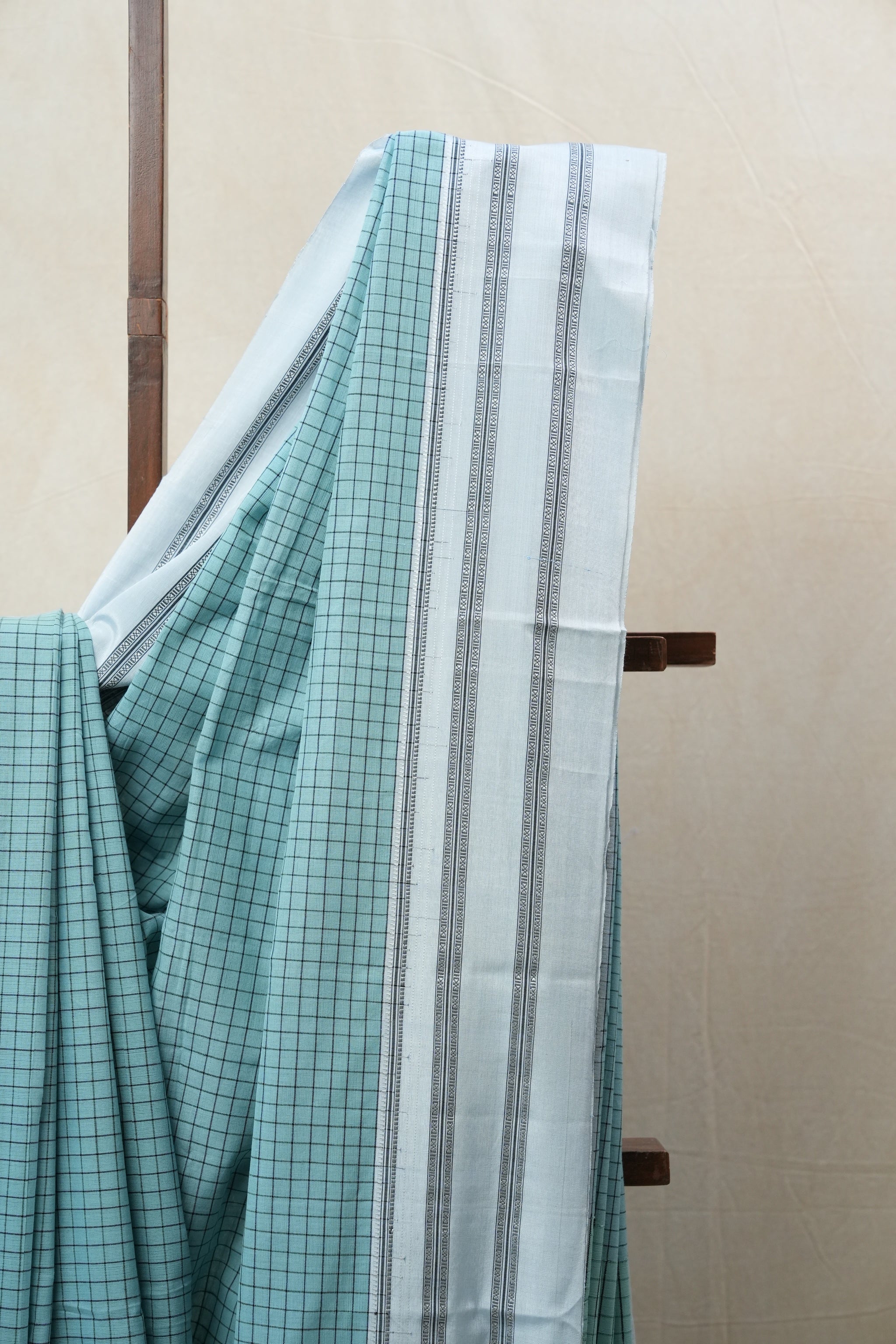 Aqua Blue Cotton Ilkal Saree with Gayatri Border - SRABCIS620