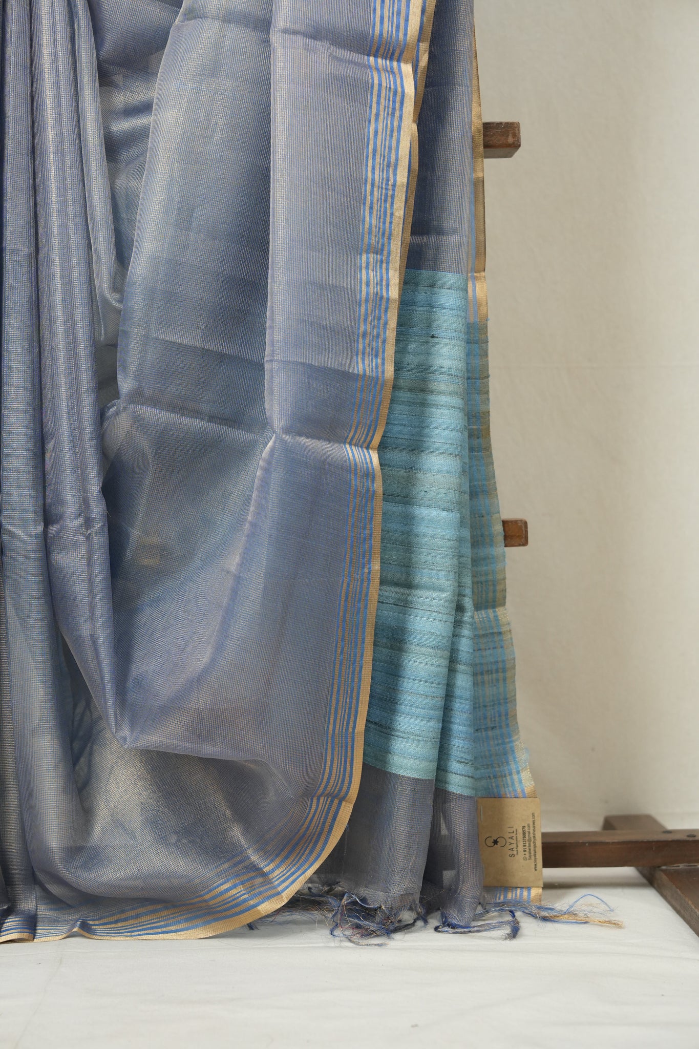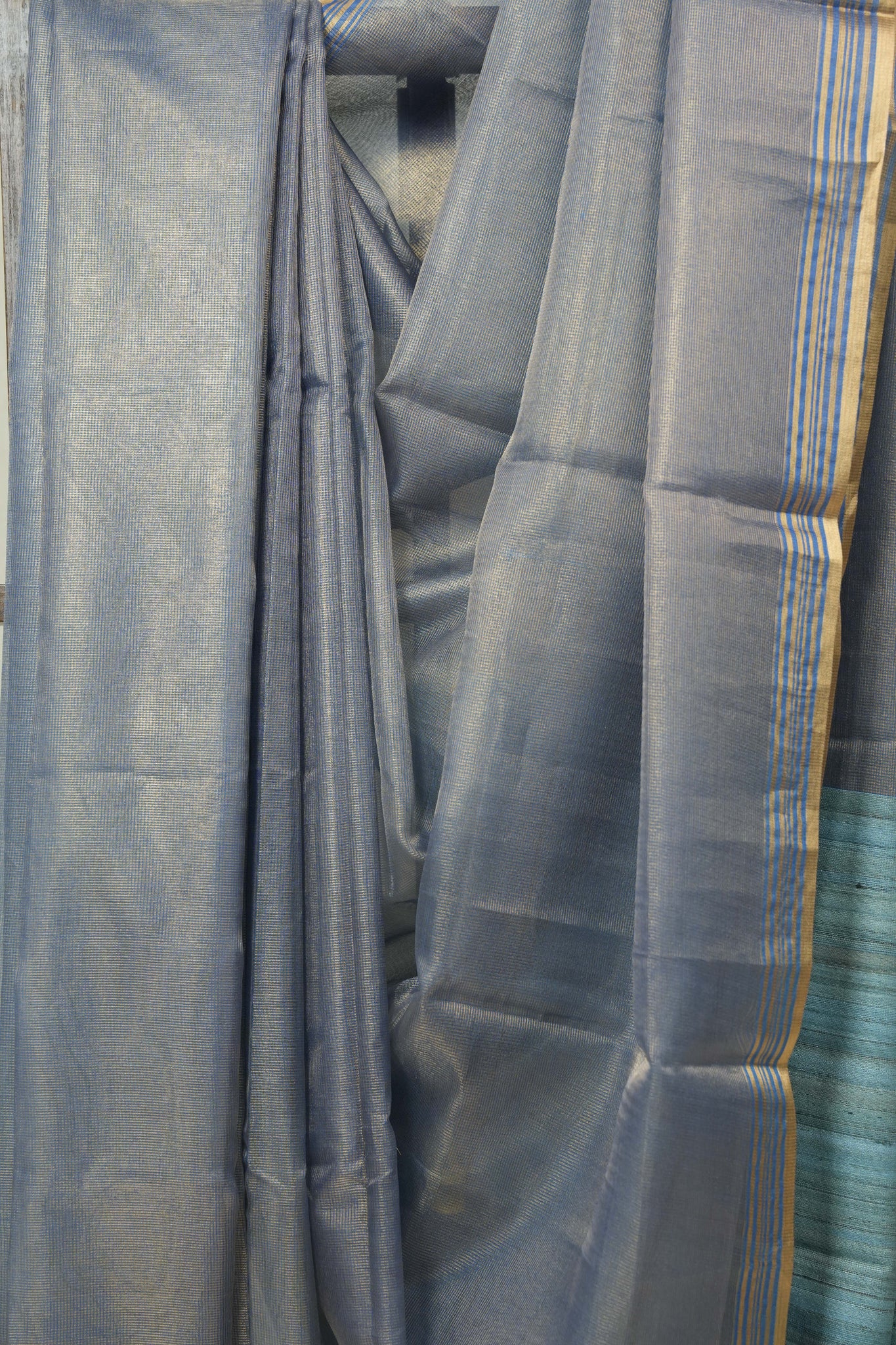 Aqua Blue Tissue Tussar Silk Saree - SRABTTSS477