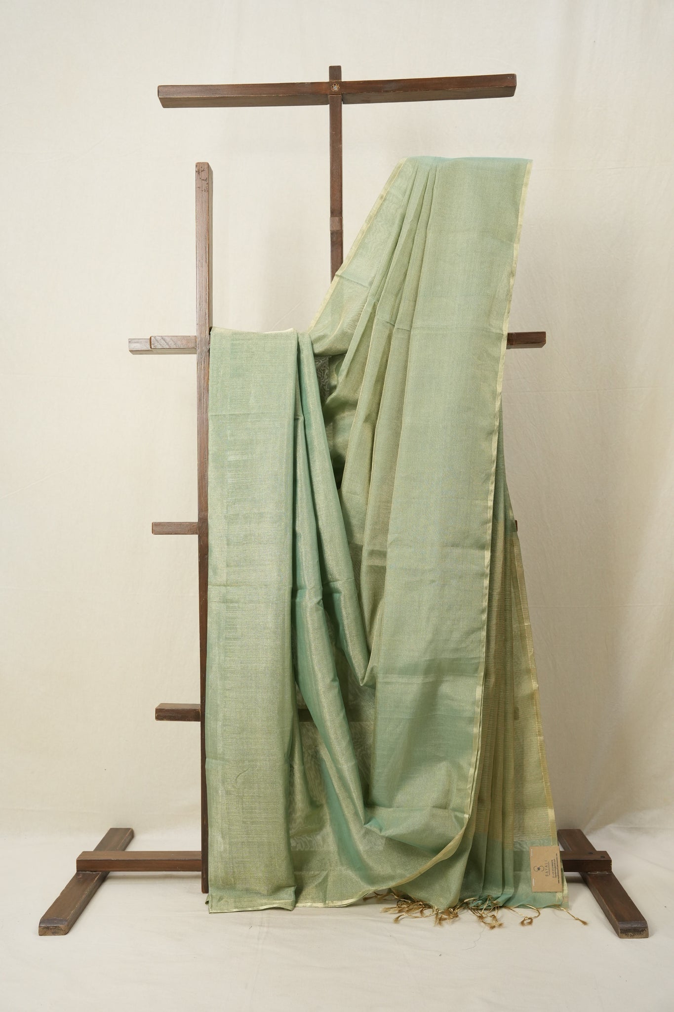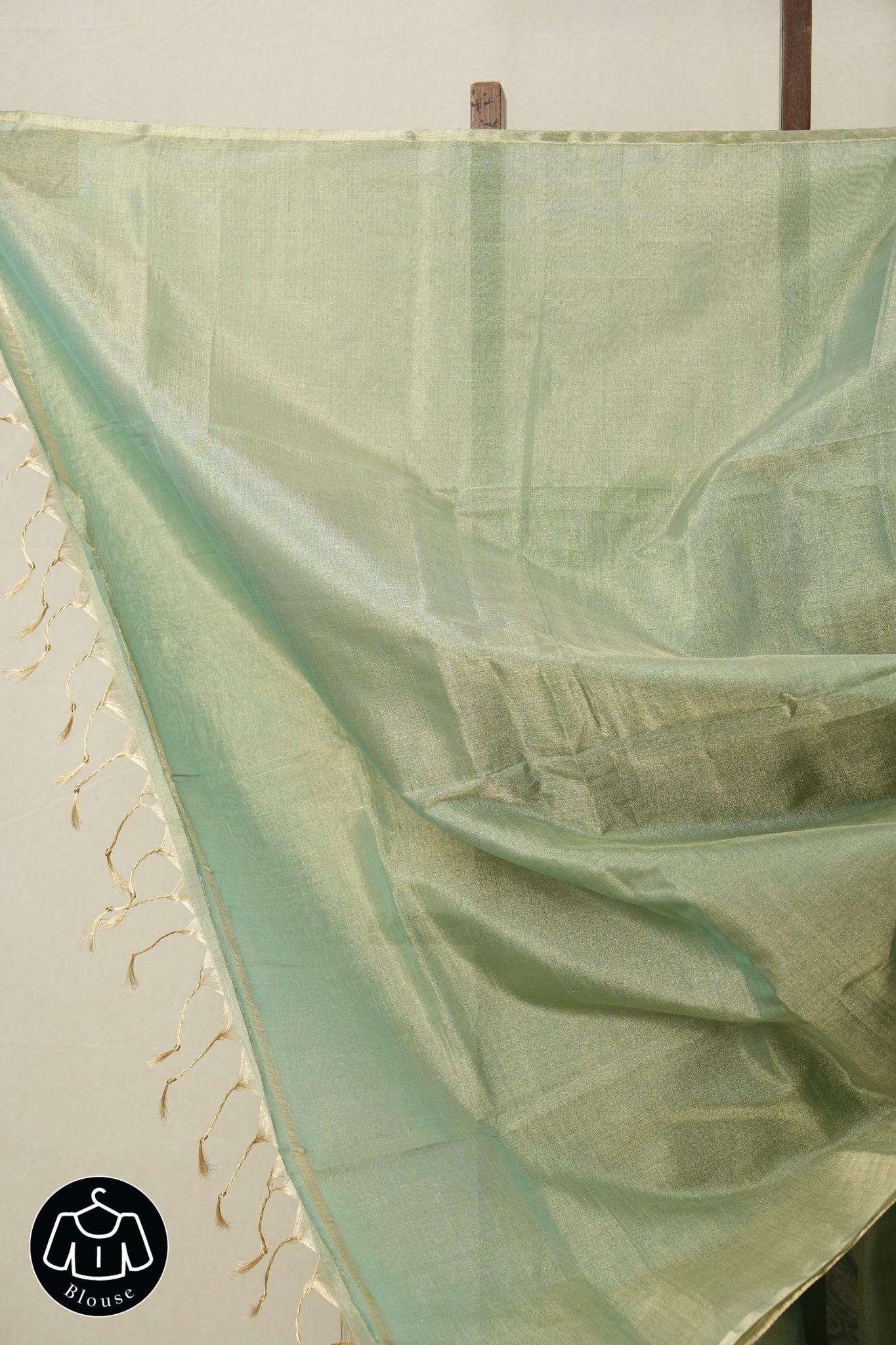 Work - Maheshwari tissue saree with a plain body, highlighted by a aqua sheen and an elegant zari border.
