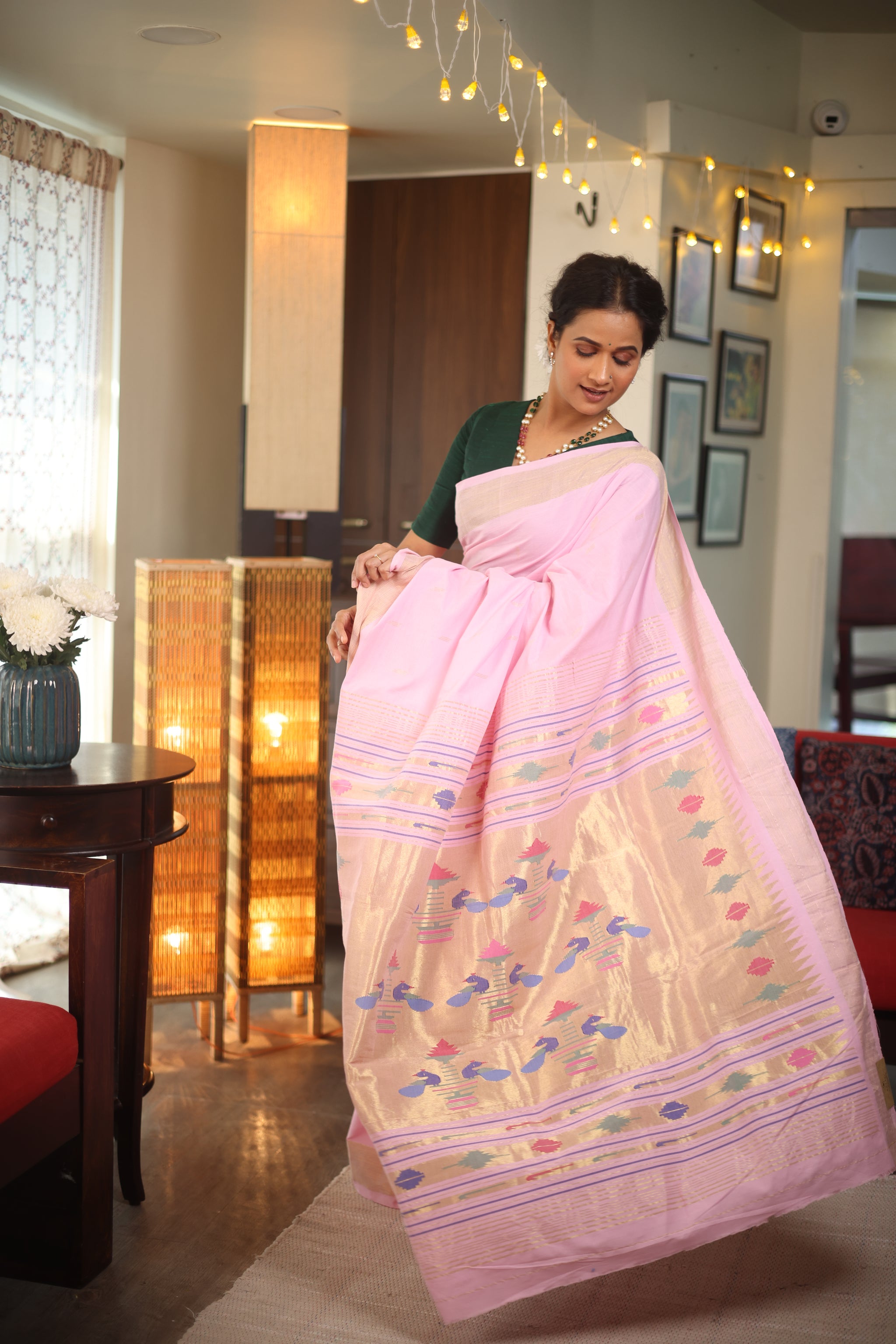Baby Pink Cotton Paithani Saree - SRBPCPS594
