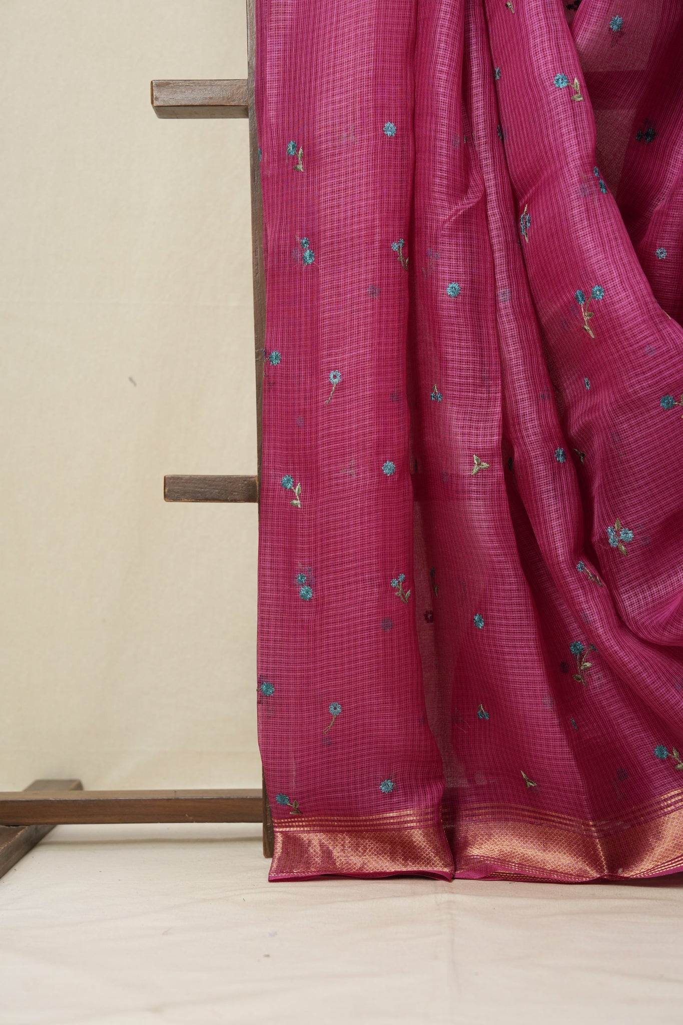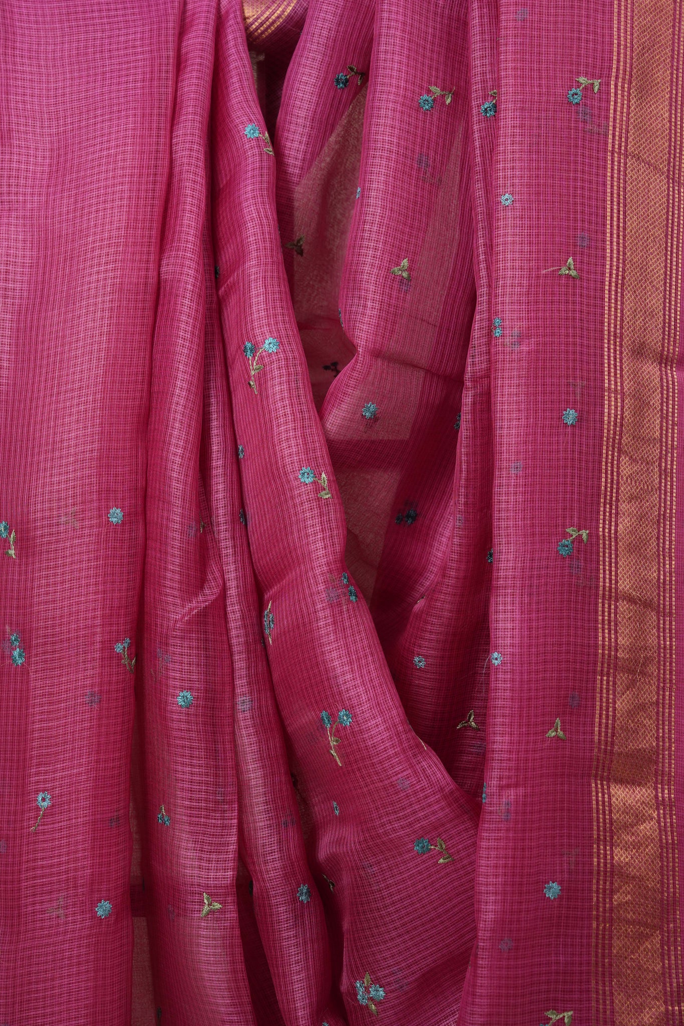 Barbie Pink Machine Embroidered Tussar Silk Saree - SRBPMETSS1472