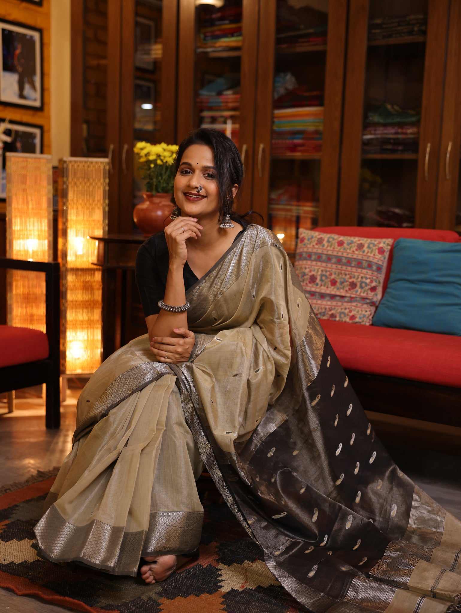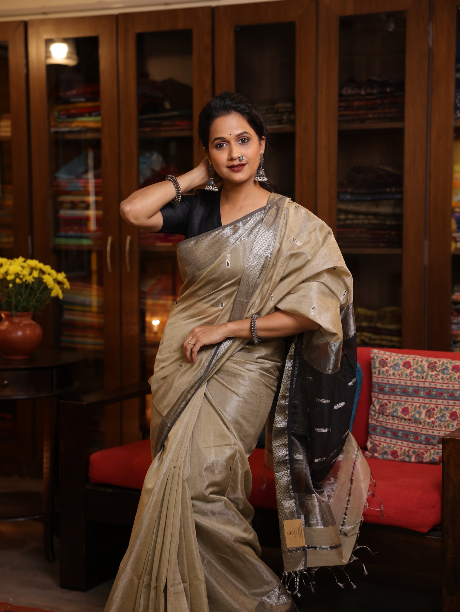 Beige Maheshwari Tissue Saree - SRBMTS389
