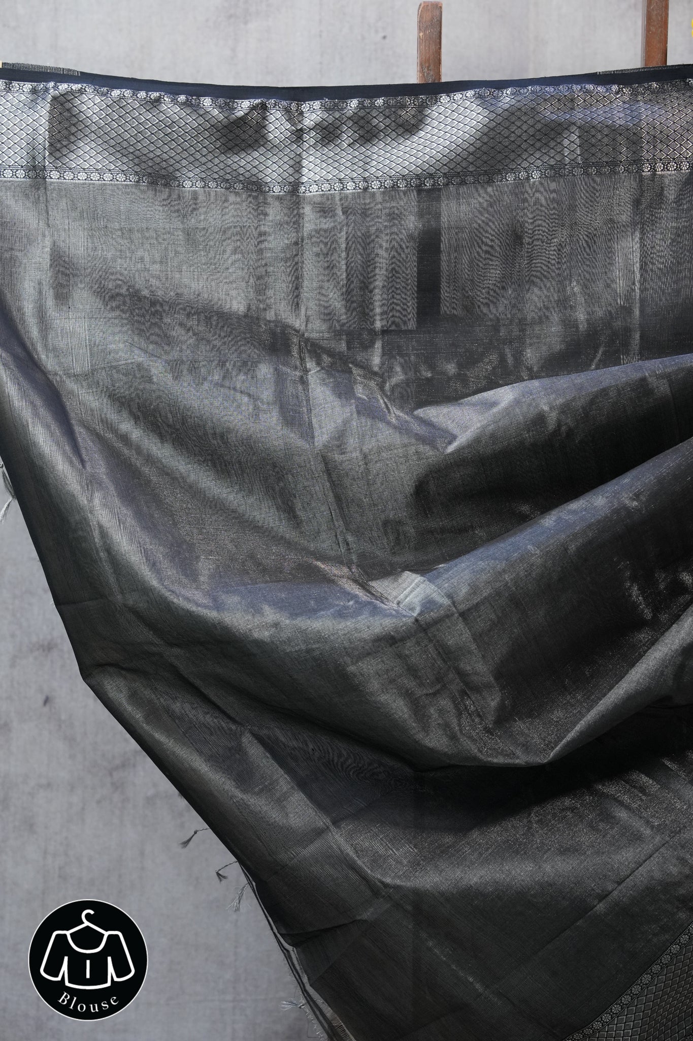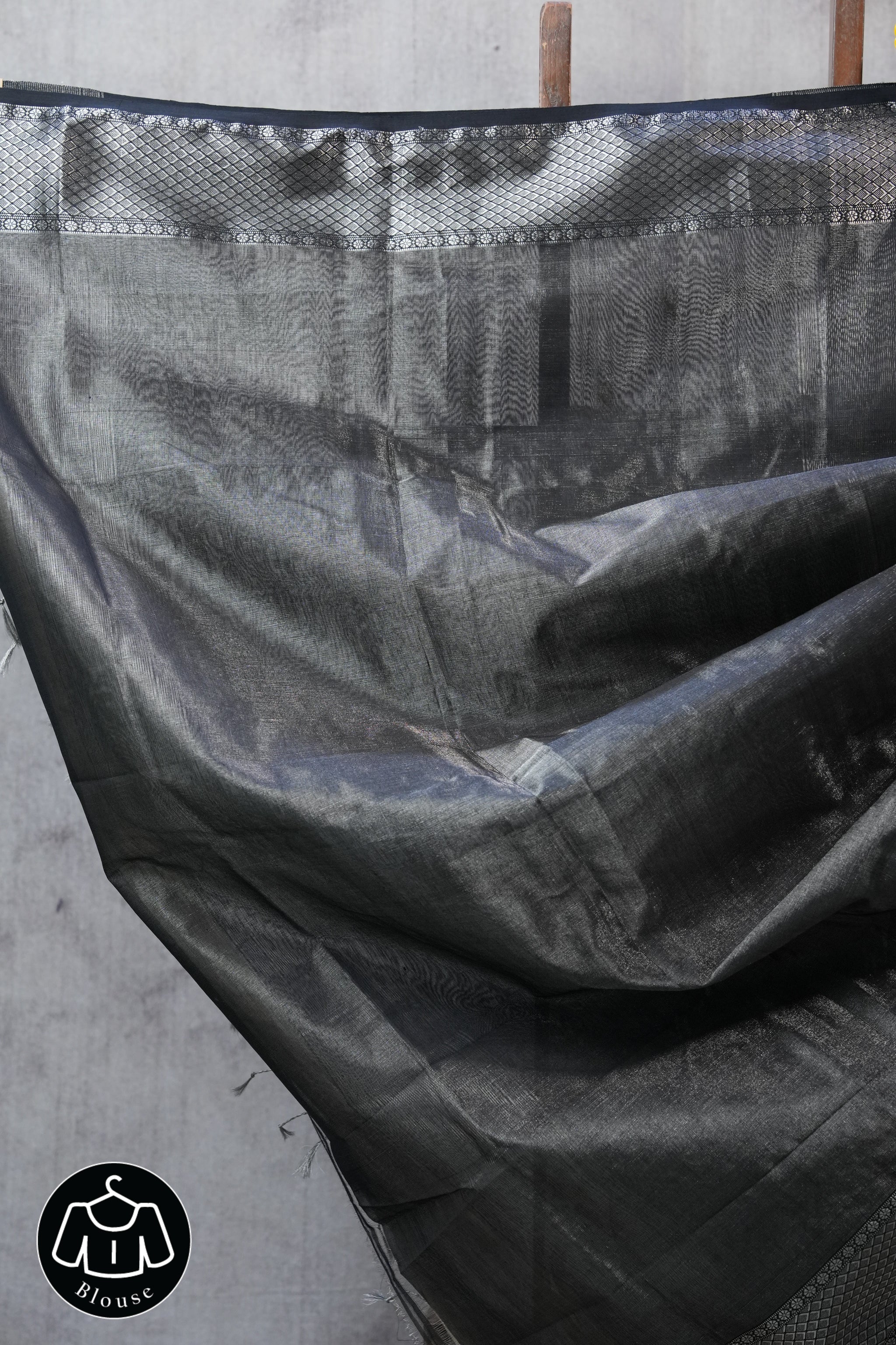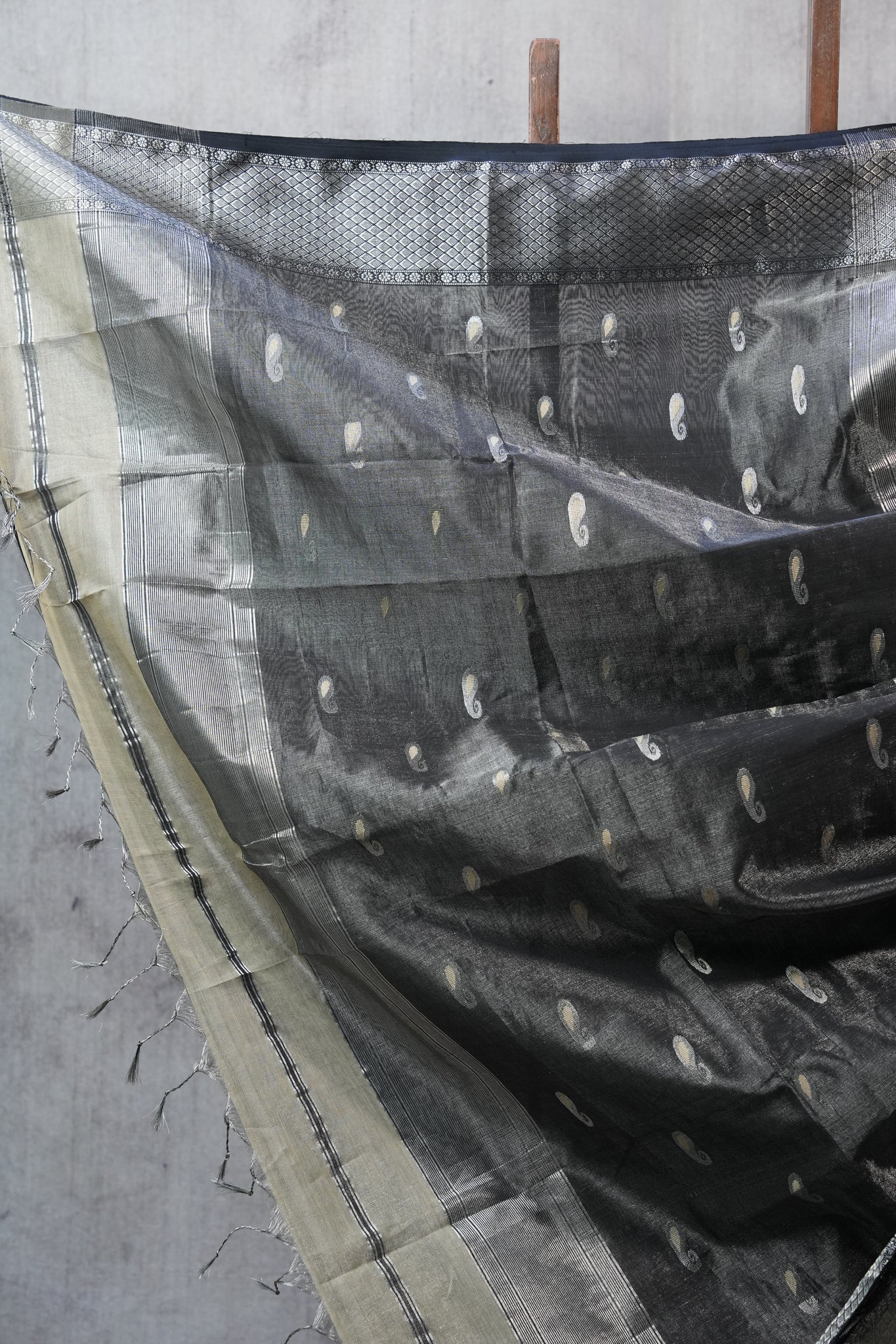Work - Subtle zari weave with small motifs and rich silver geometric border and pallu.
