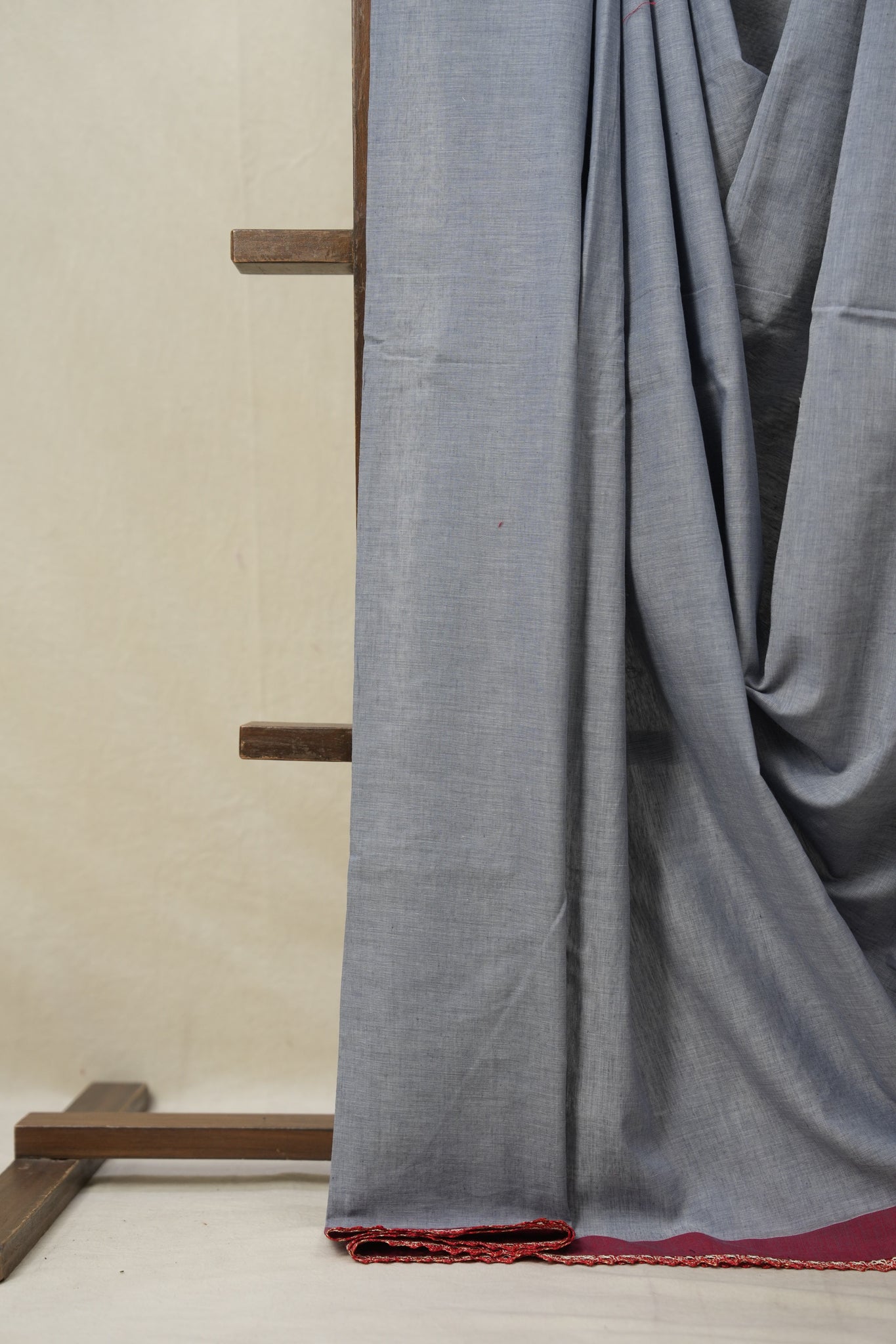 Bluish Grey Bengal Cotton Saree With Lace (DEFECT) - SRBGBCSWL88-PI