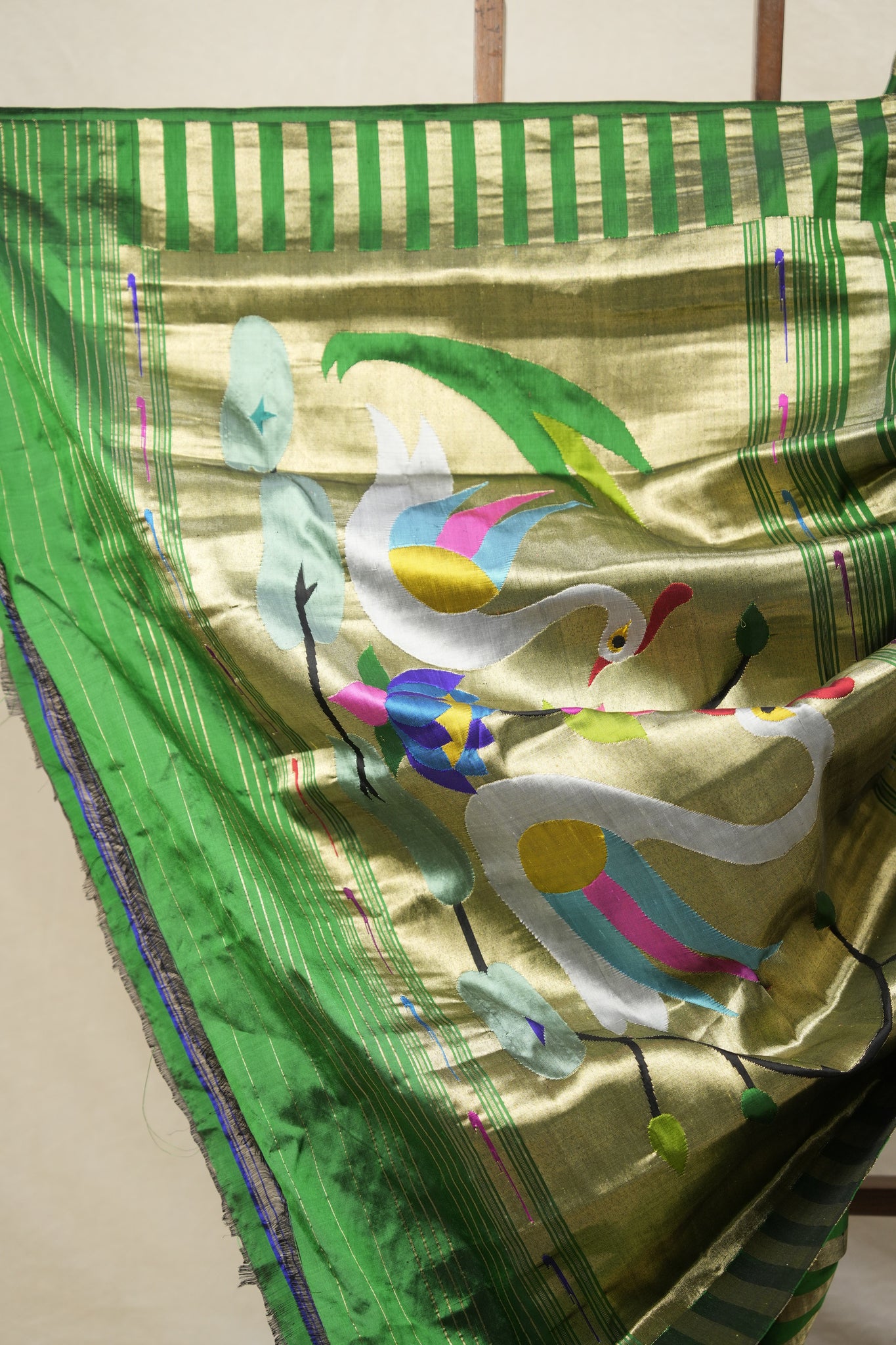 Green Gold Silk Paithani Saree - Saavari - SSGGSPS22