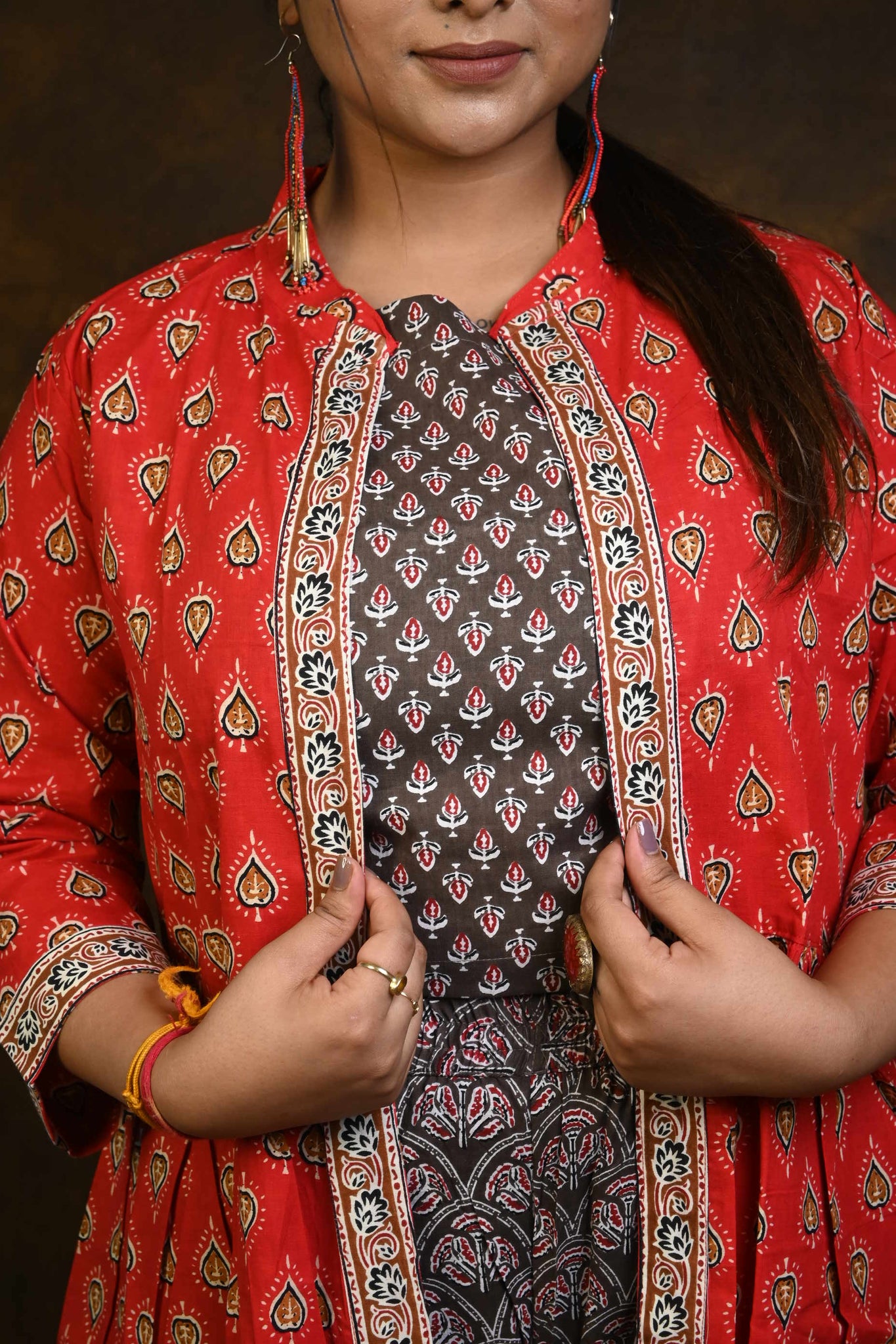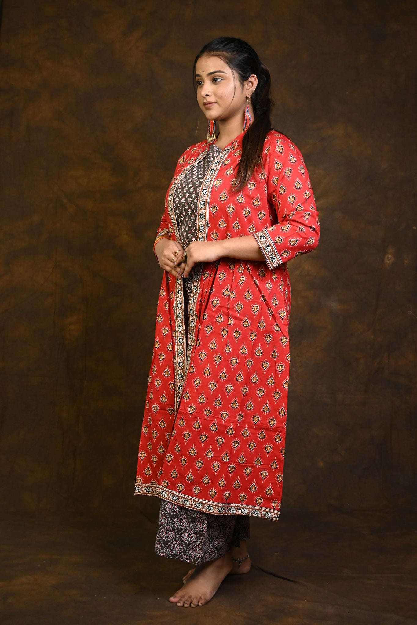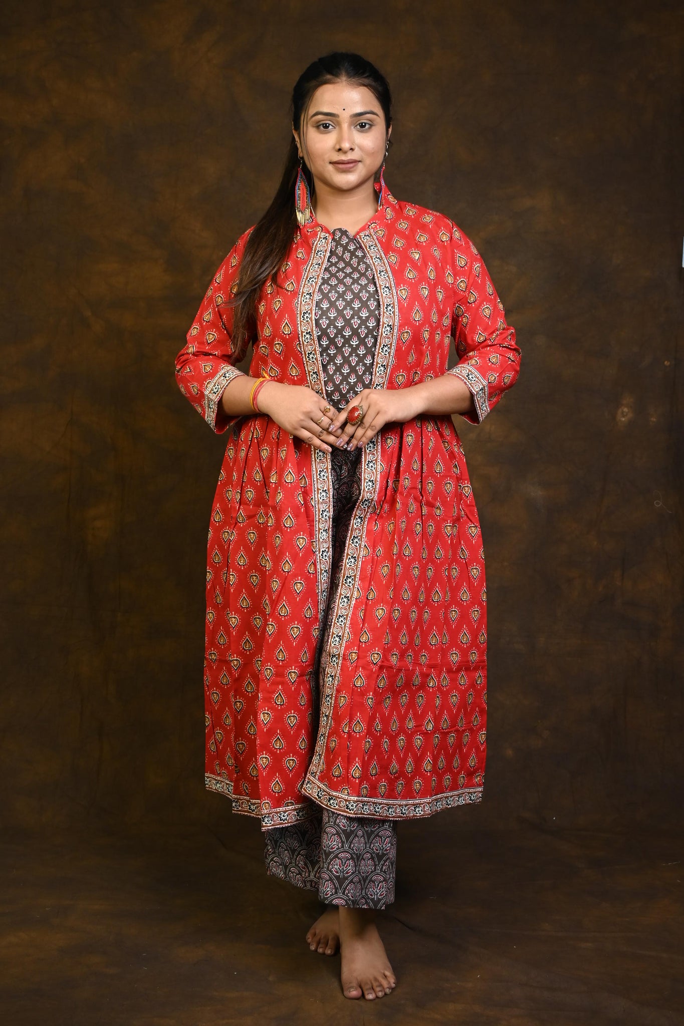 Kashish-Red HBP Cotton 3 Piece Dress Suits (Co-ord Set)