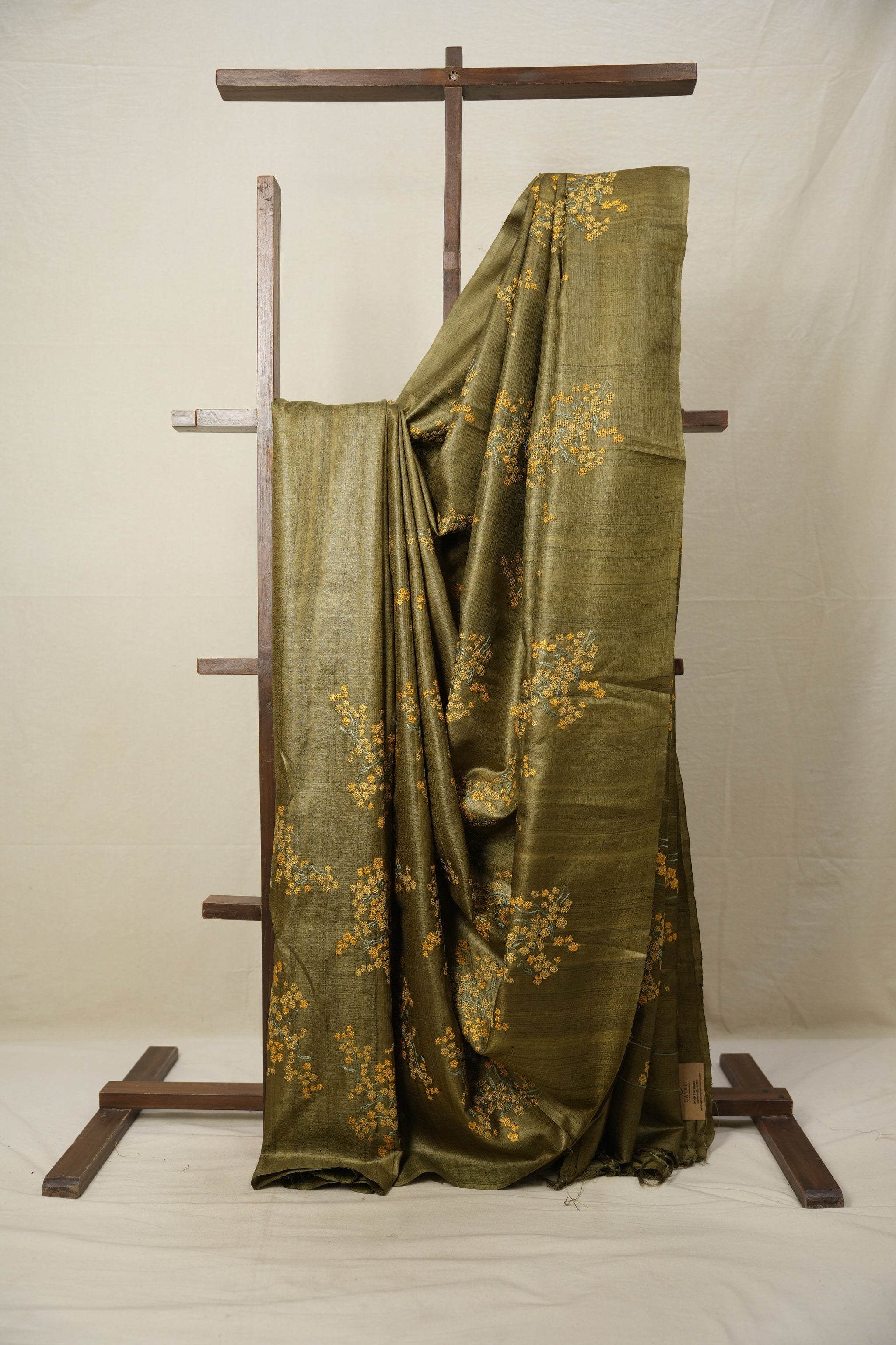 Work - This is a tussar silk saree with elegant multi-color floral embroidery work