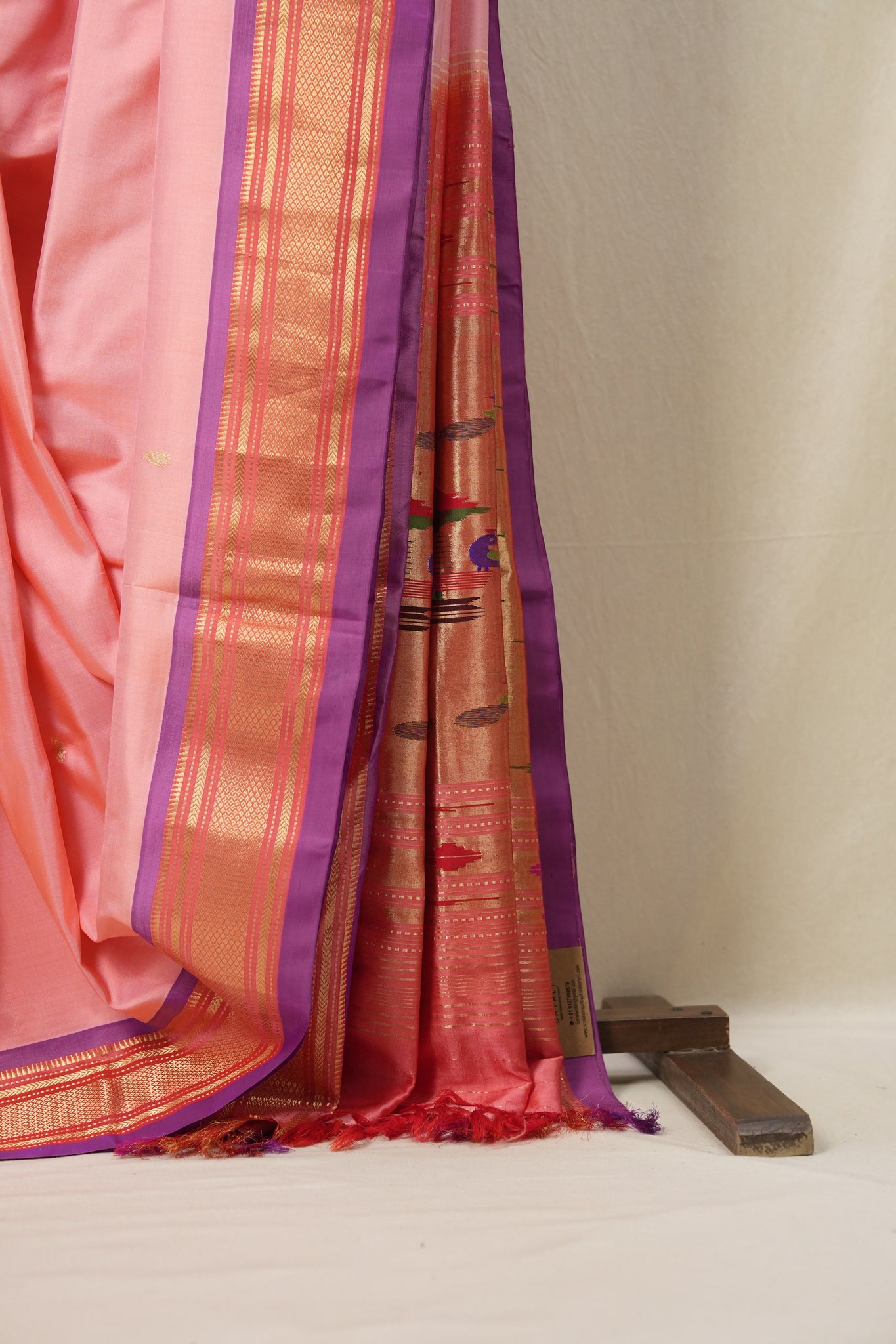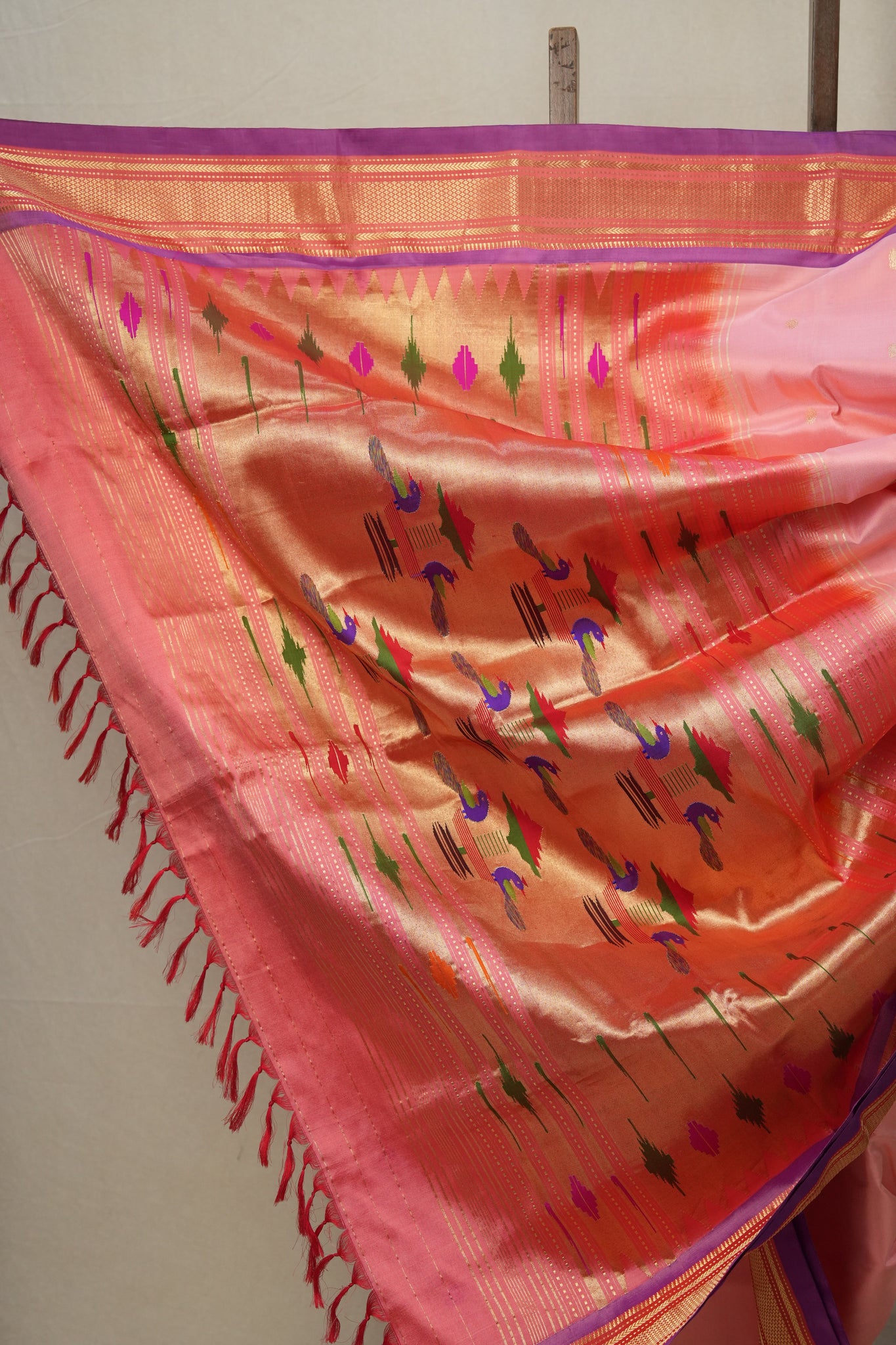 Work - Traditional Paithani silk saree with rich zari work, featuring peacock and floral motifs on the pallu.