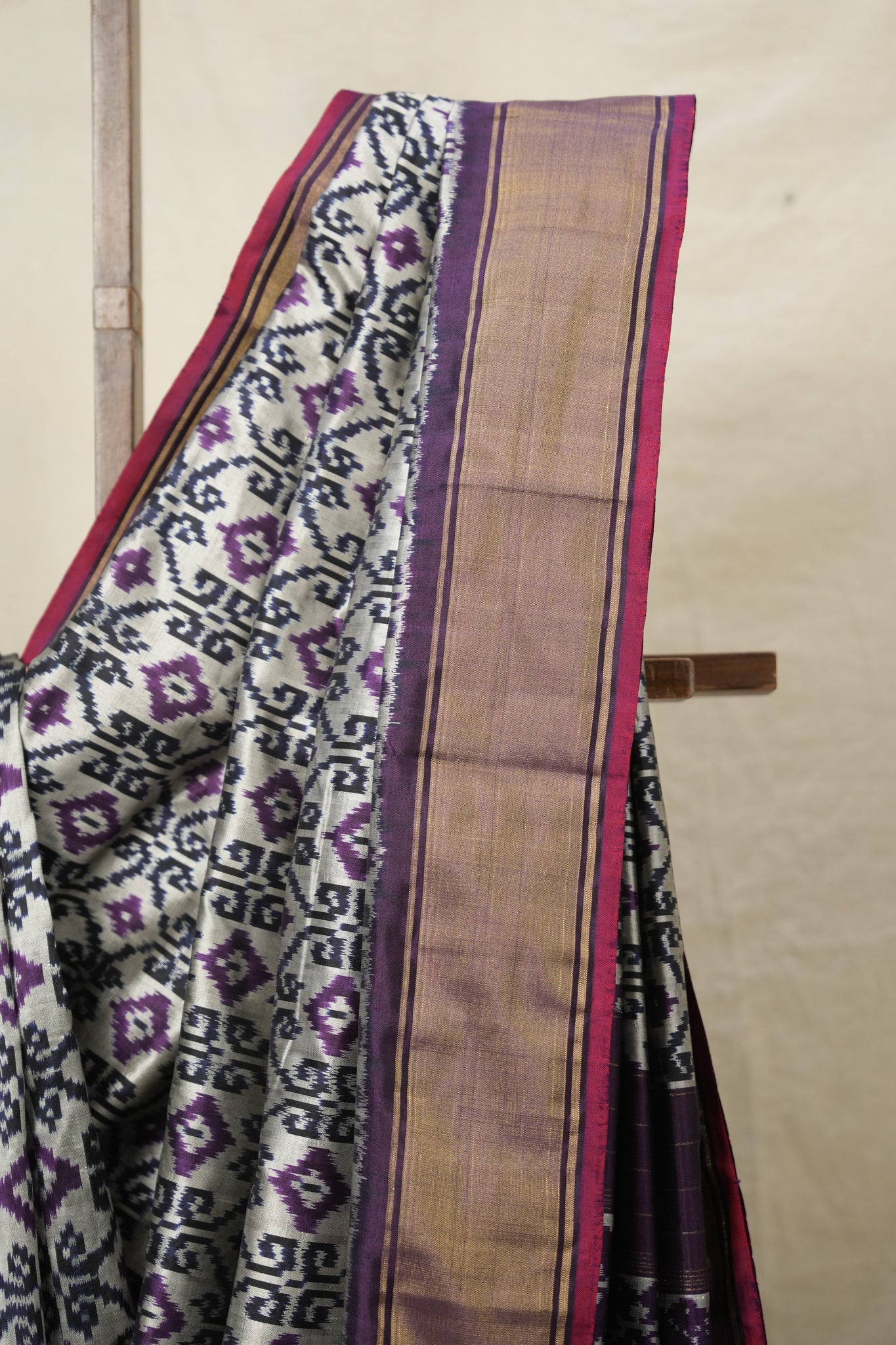 Purple Silver Pochampalli Silk Ikat Saree - SRPSPSIS277